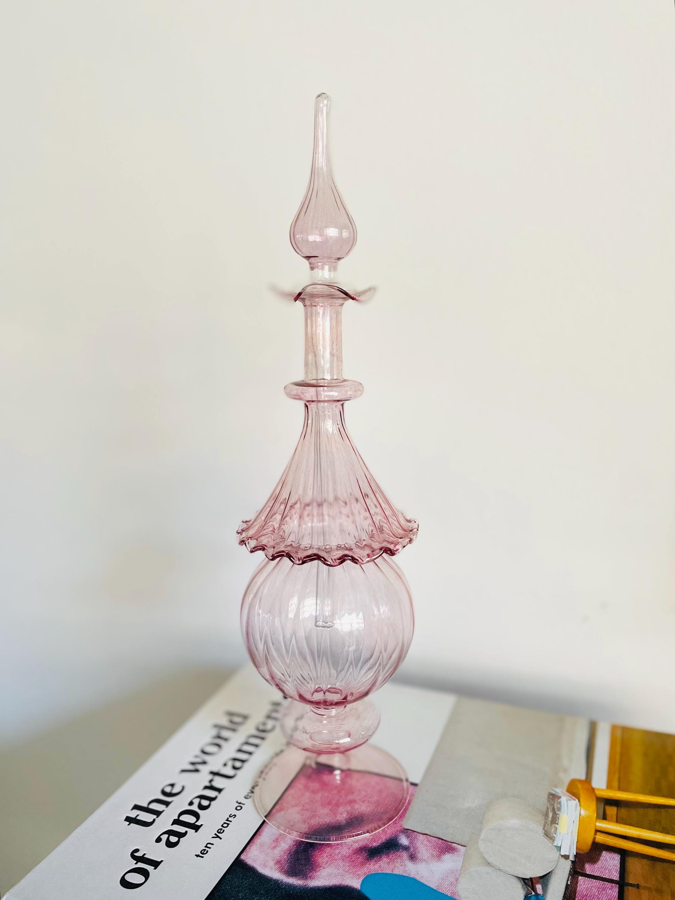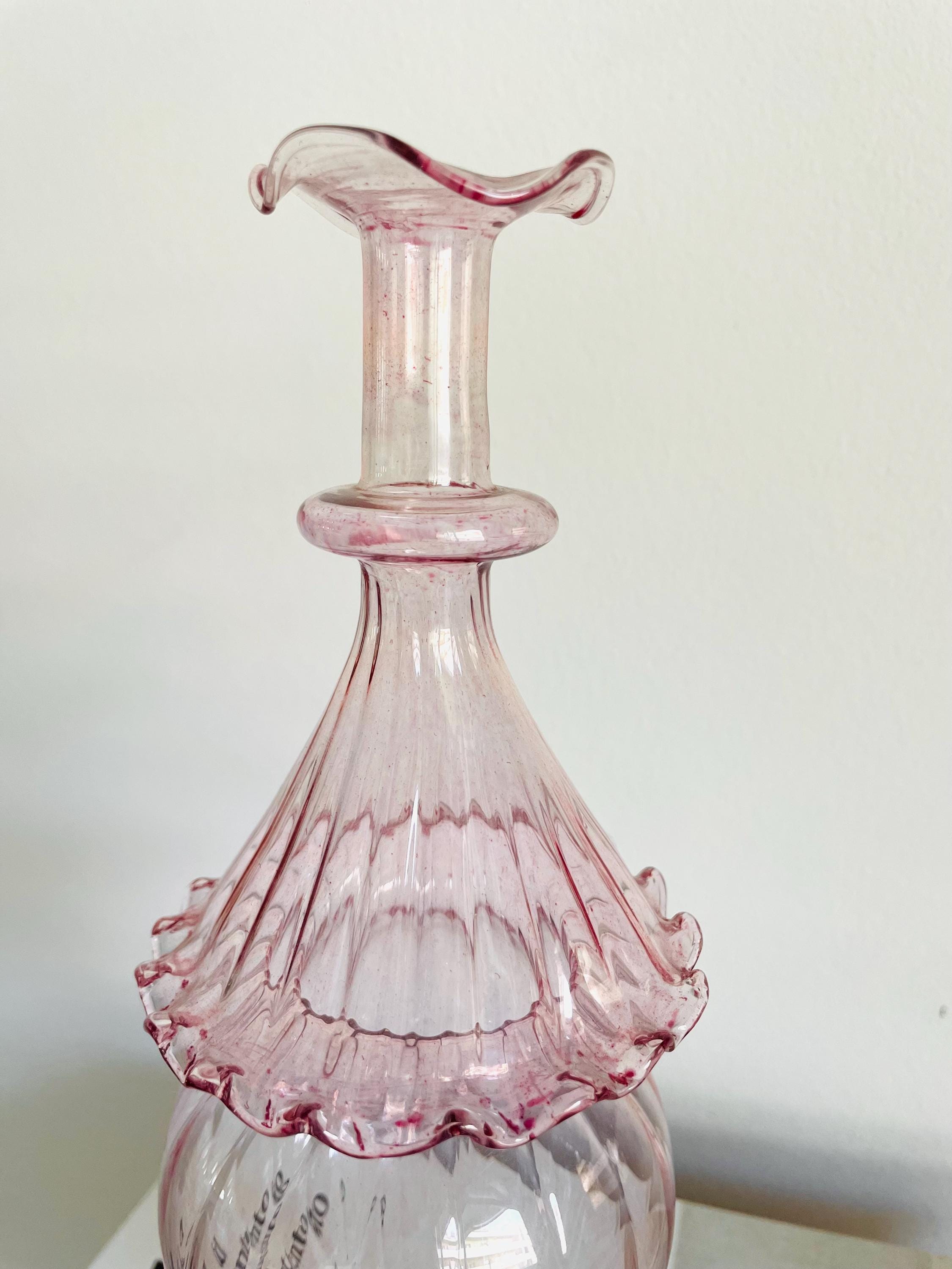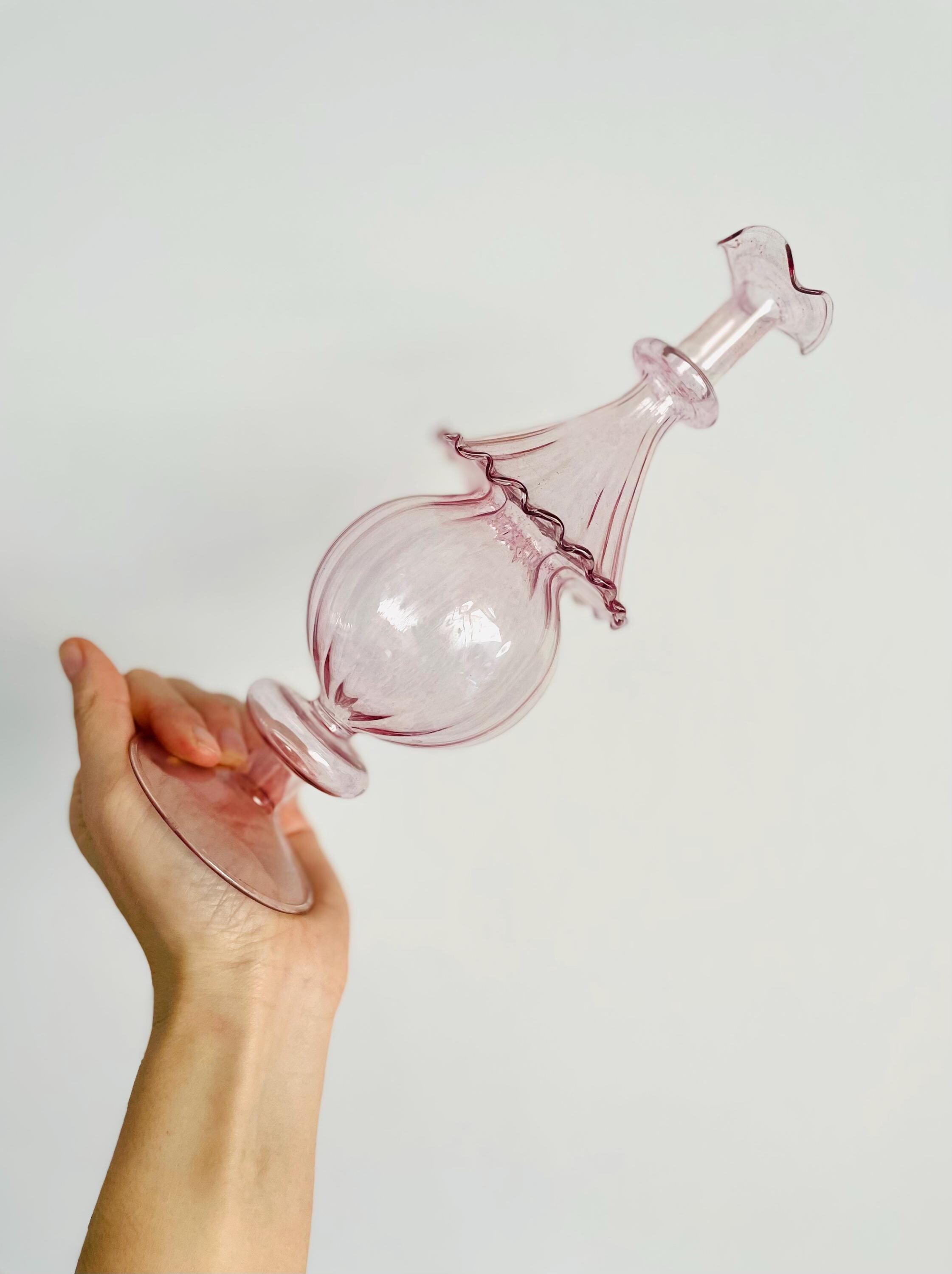 Handmade vintage Murano glass decanter, perfect for use as a decanter or a bud vase for a single flower, bringing sophistication and timeless beauty to any space.