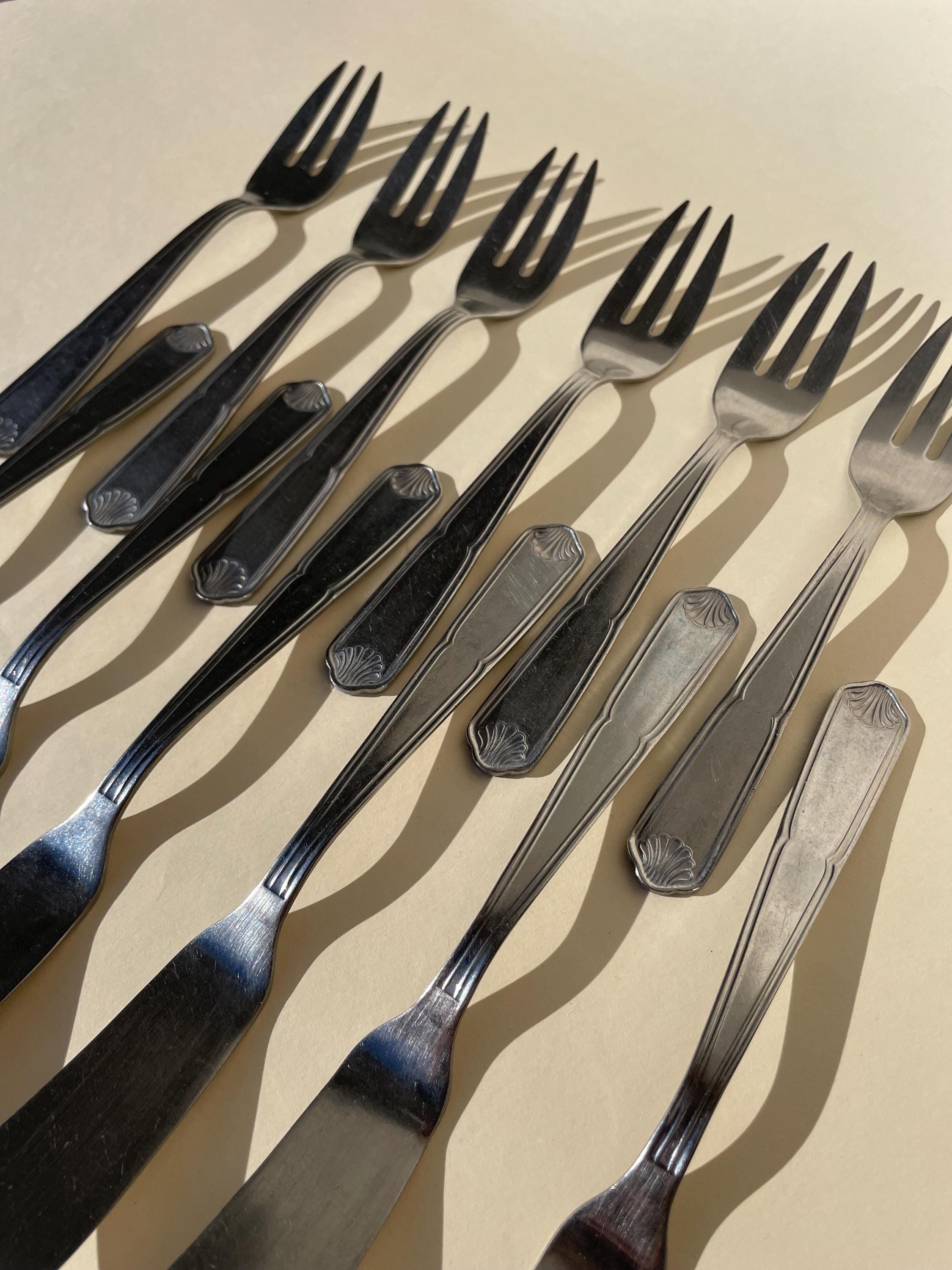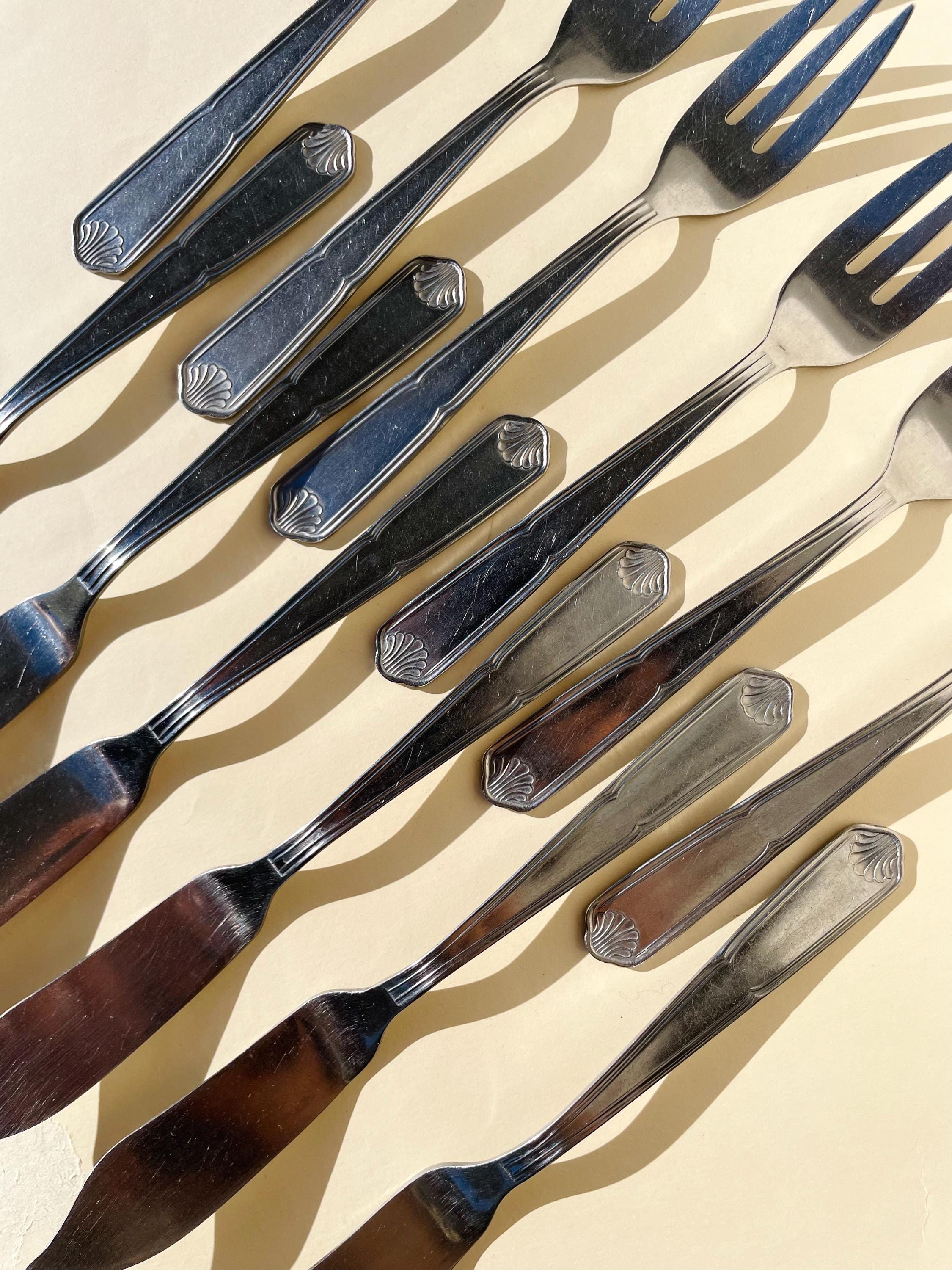 This exquisite vintage cutlery set is perfect for serving fish and seafood in timeless style. Each piece features elegant shell-shaped details on the handle, adding a touch of charm to your table. The set includes 6 forks and 6 knives, meticulously crafted for both function and beauty.