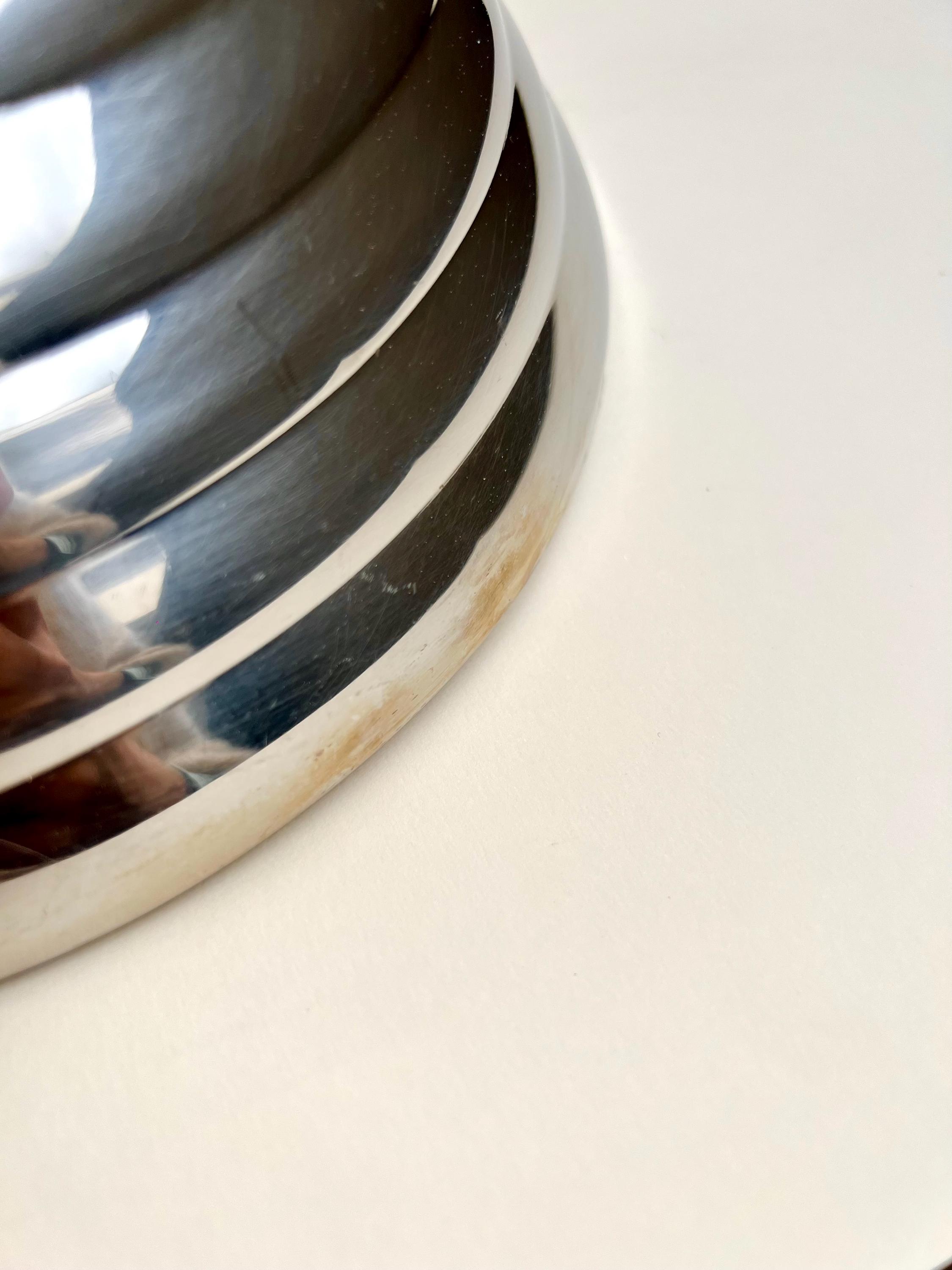 Very good vintage condition with only minimal signs of wear. Please note: the star detail in the whistle cap is loose and don’t stay in place when moved. This does not affect the function of the kettle but may be relevant for display or use. Well-preserved polished stainless steel surface.