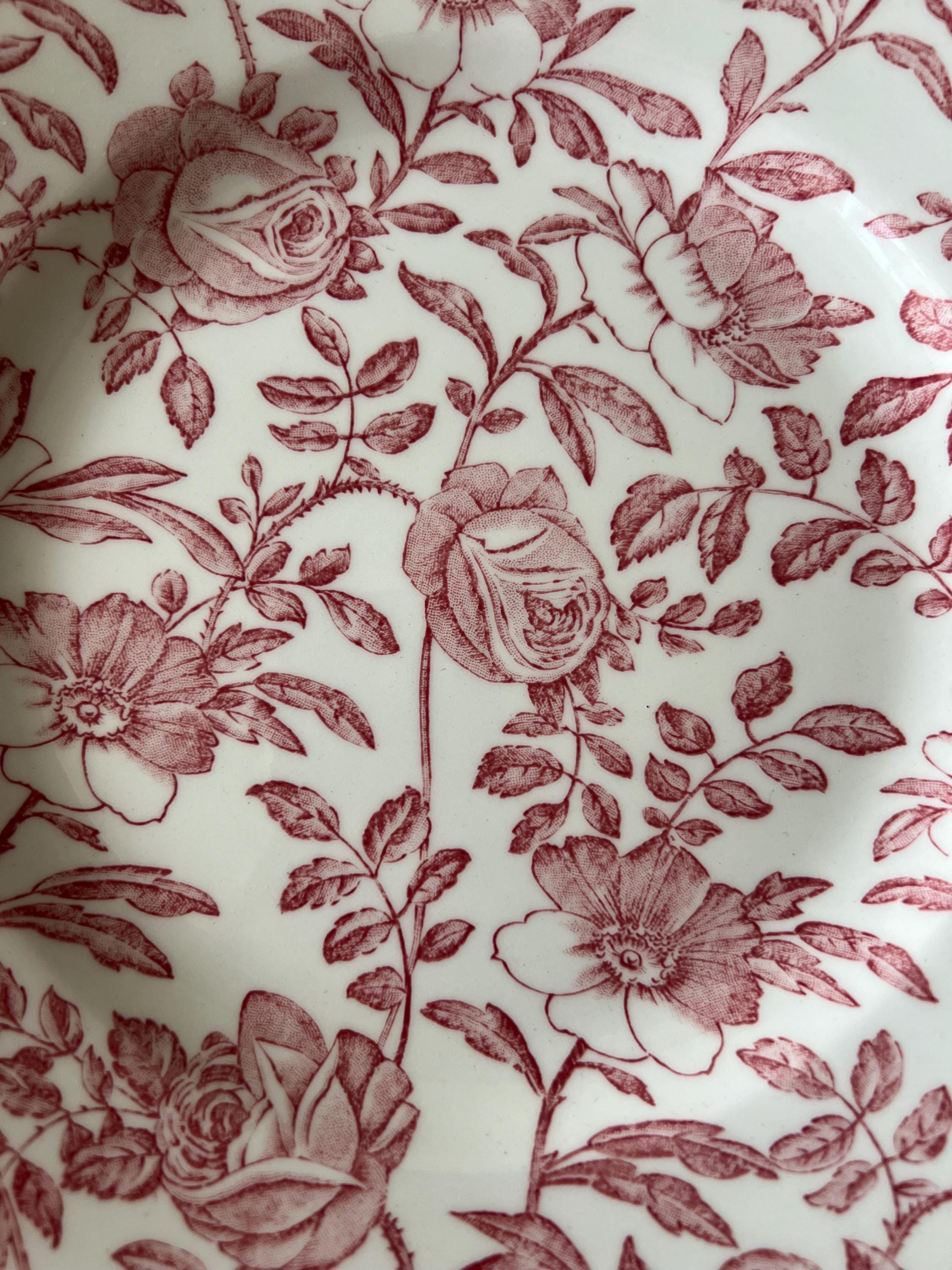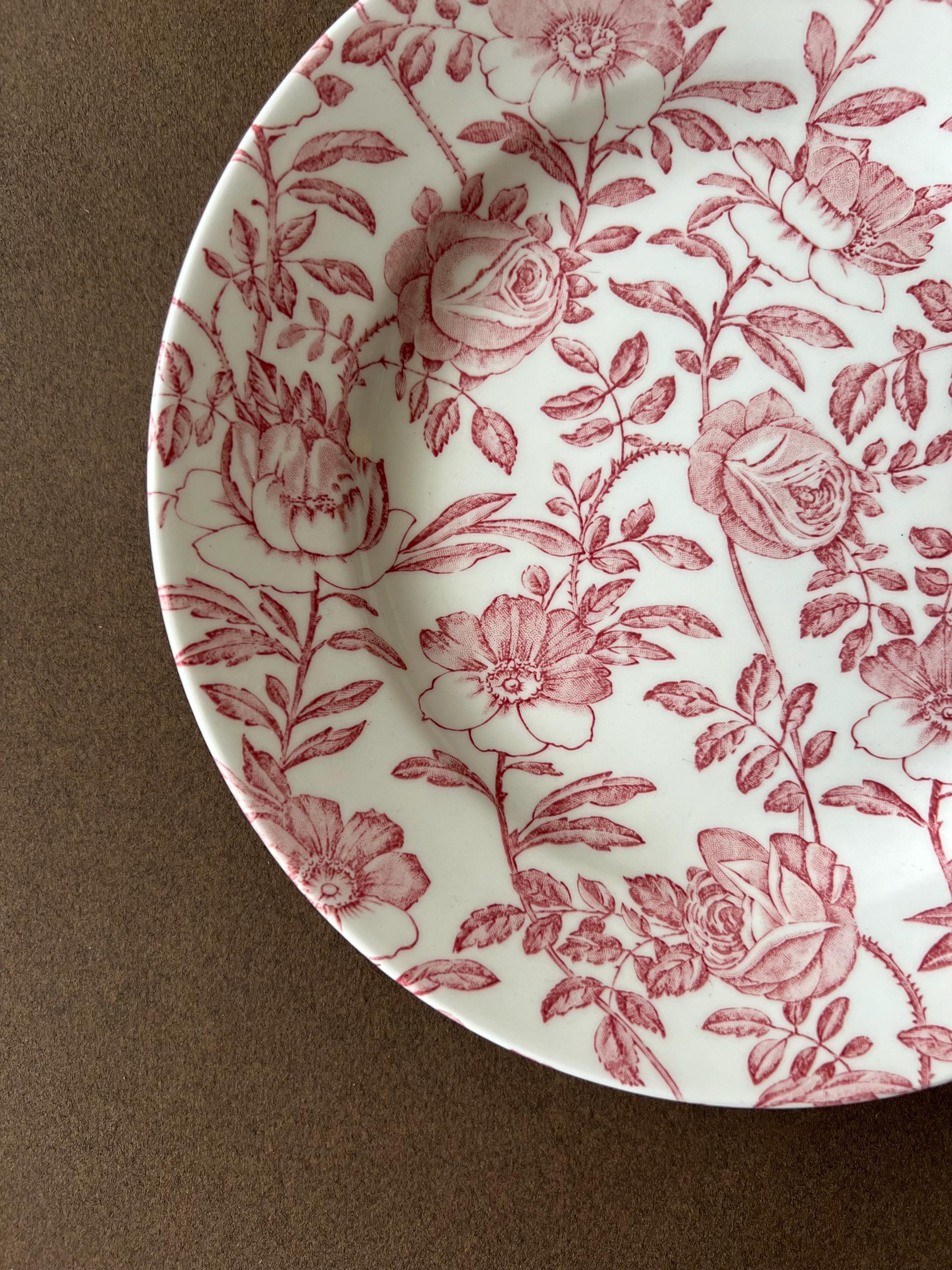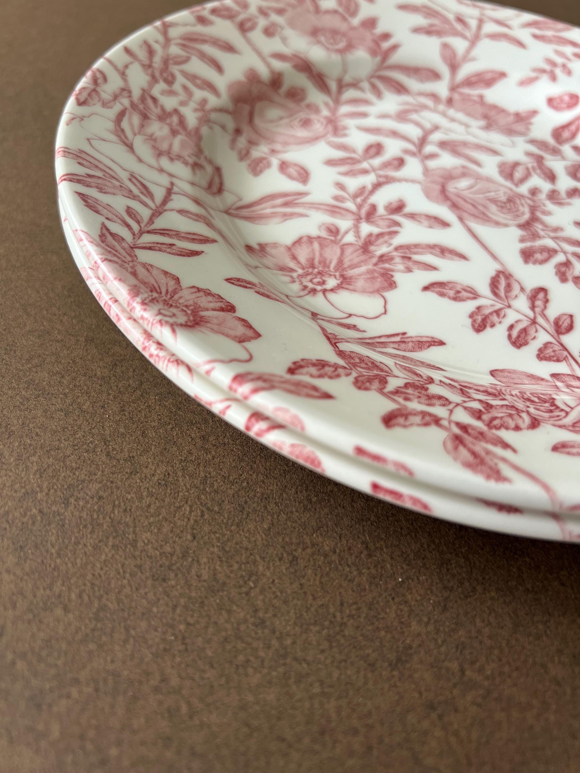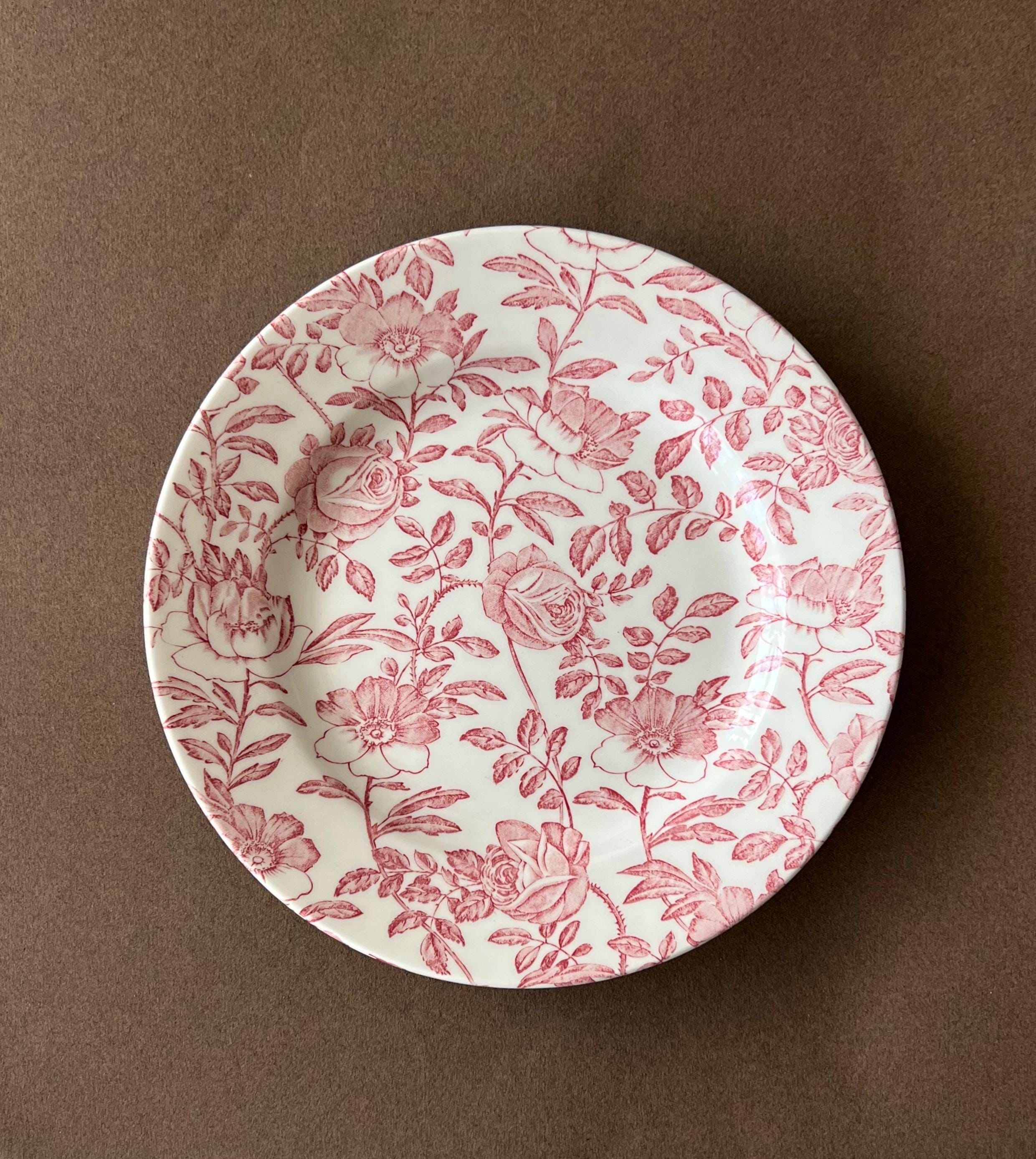 Set of pink peony Churchill plates, featuring an elegant floral pattern in a soft pink against a white background, perfect for breakfast, desserts, or afternoon tea.