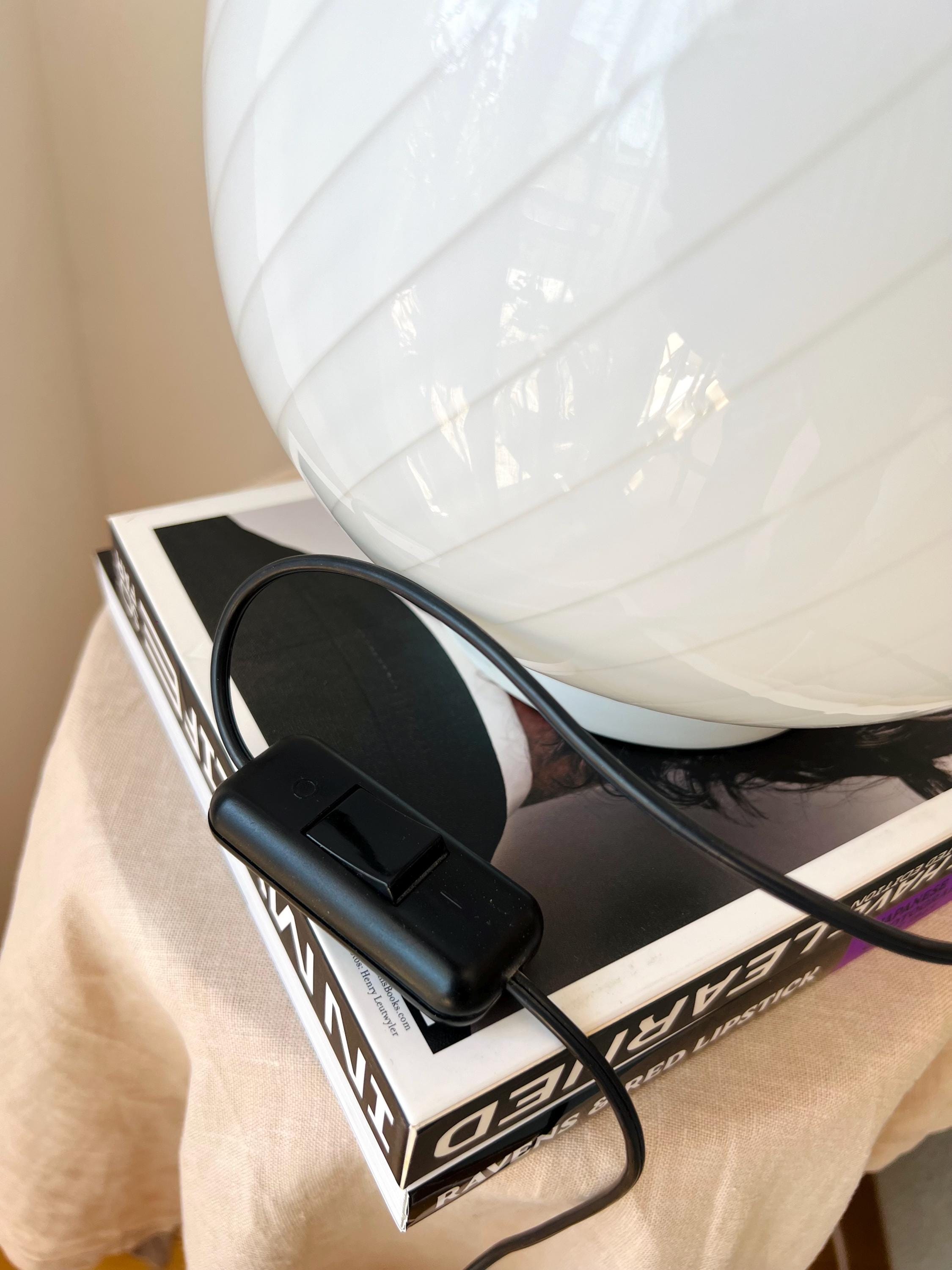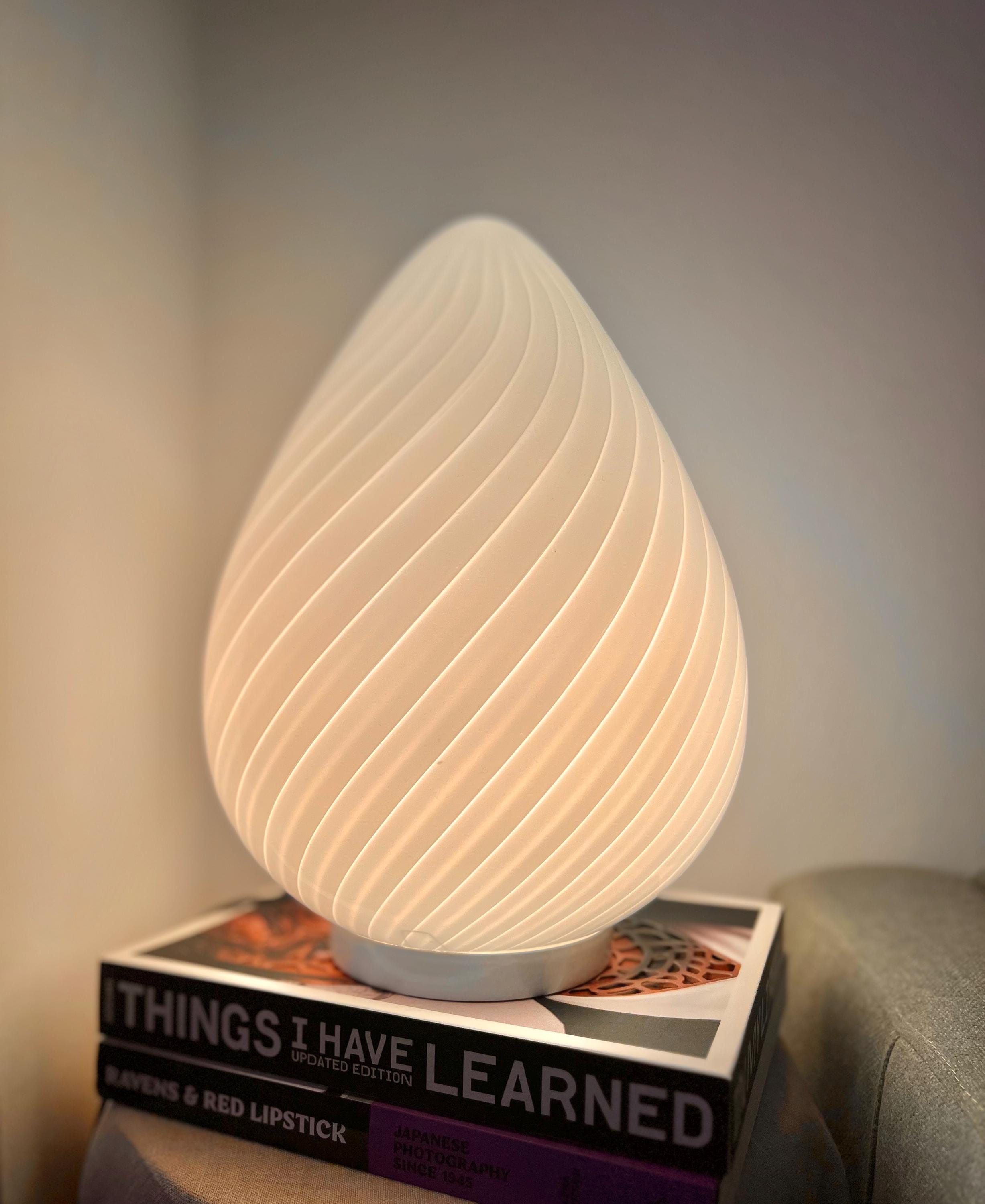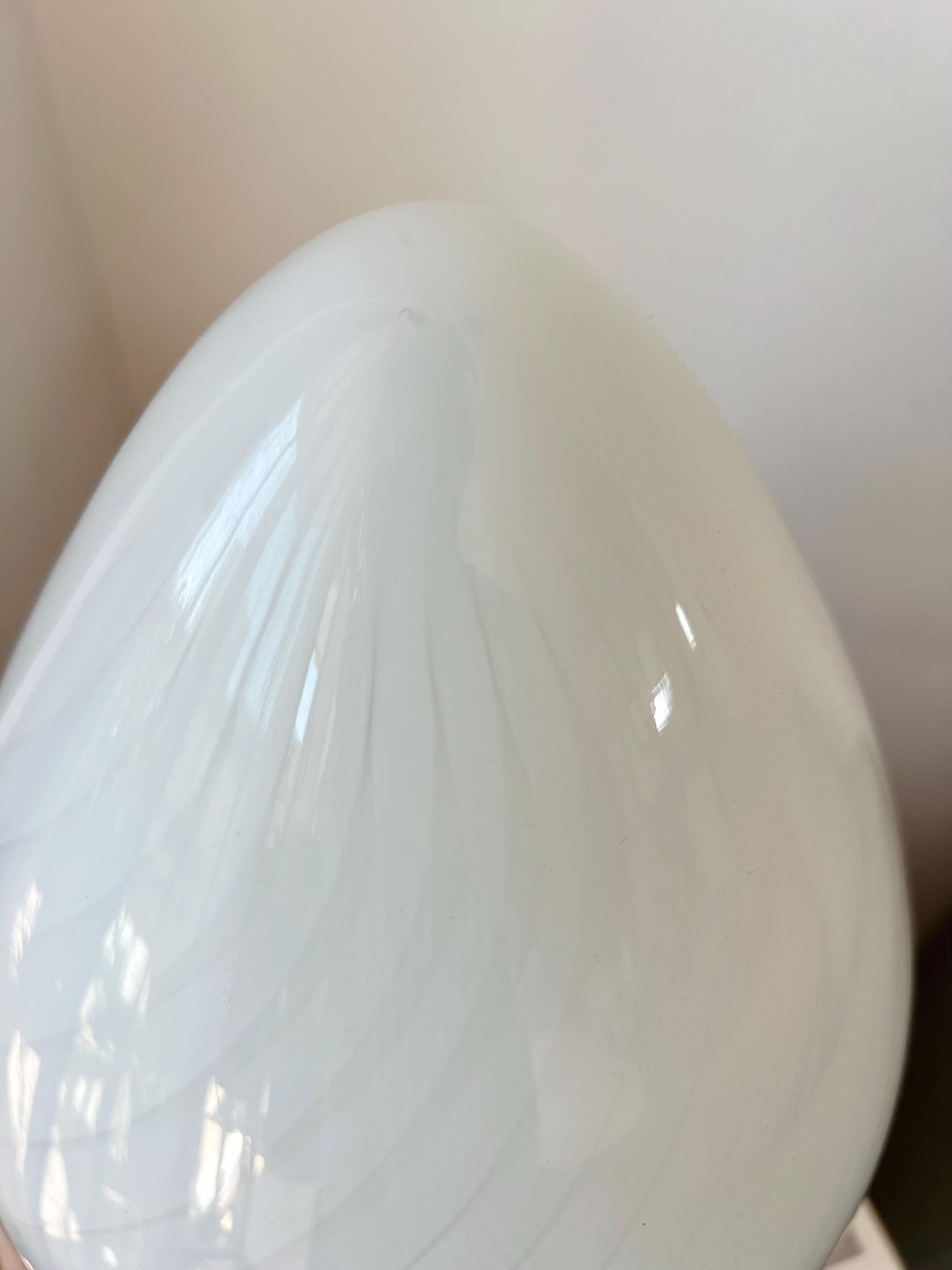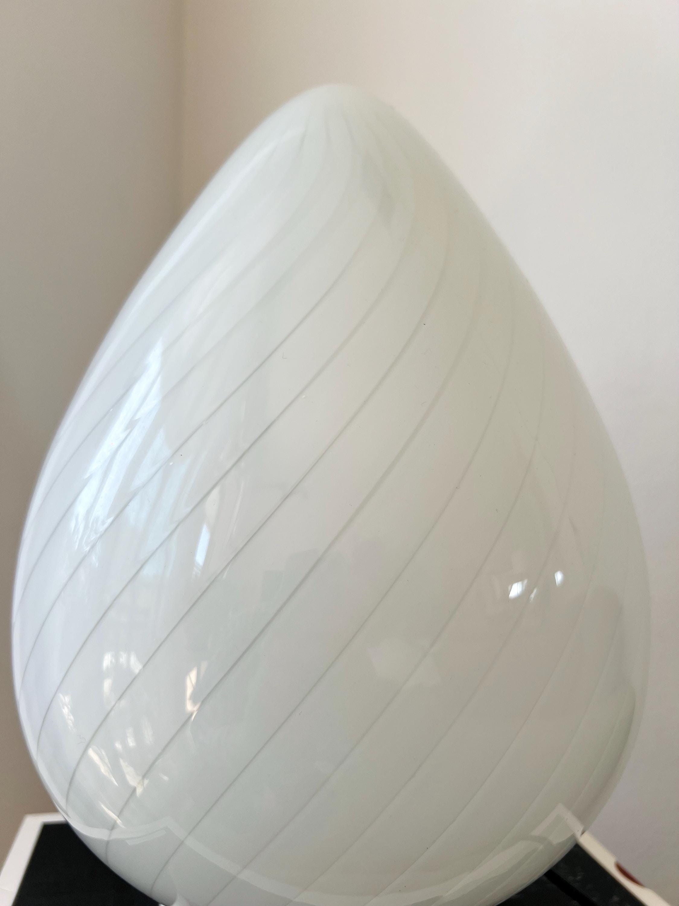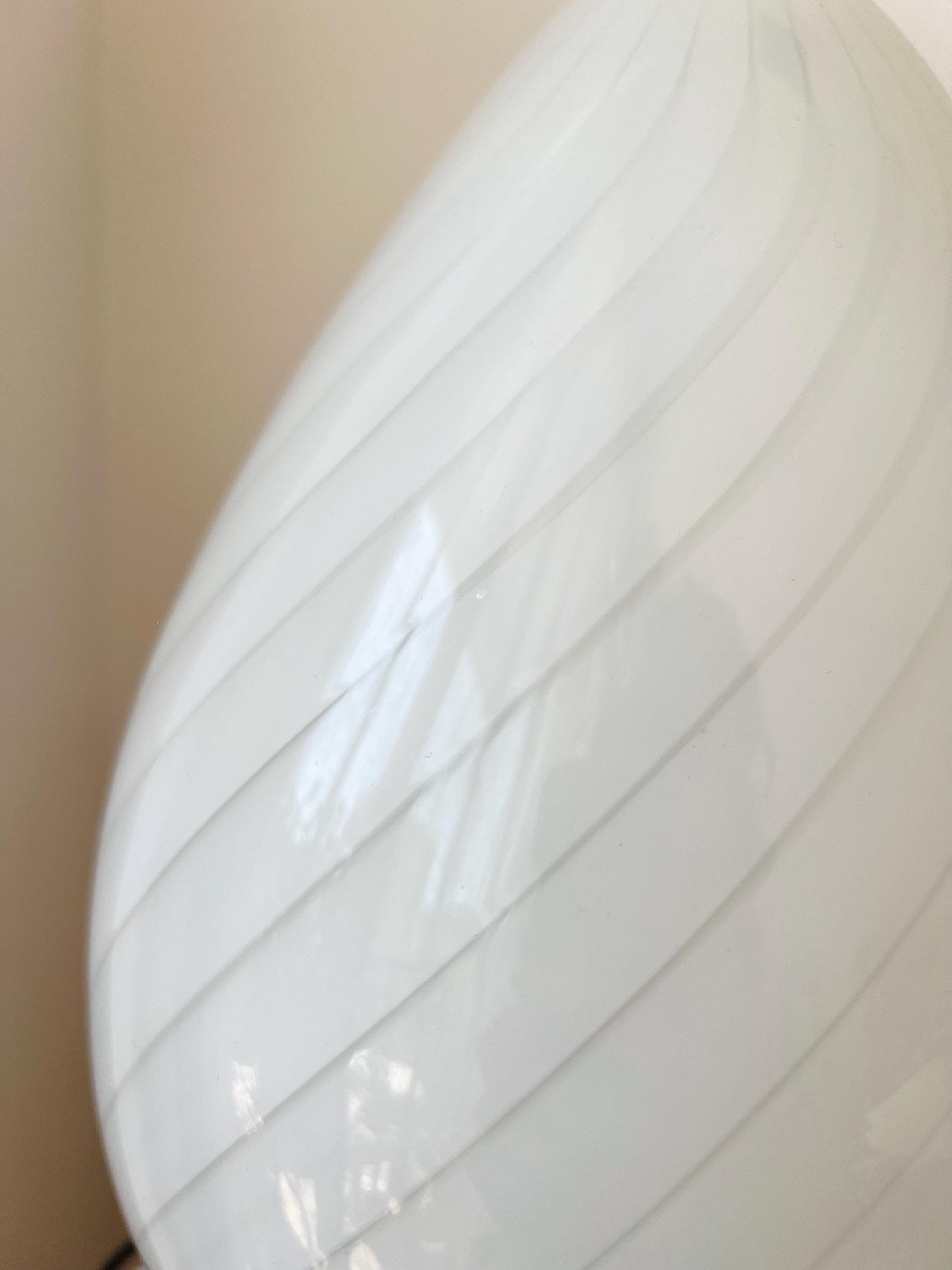 Made in Italy in the 1980s, this vintage Murano glass lamp features a teardrop silhouette and white swirl pattern. Perfect for cozy corners, nightstands, or adding character to your favorite shelf.