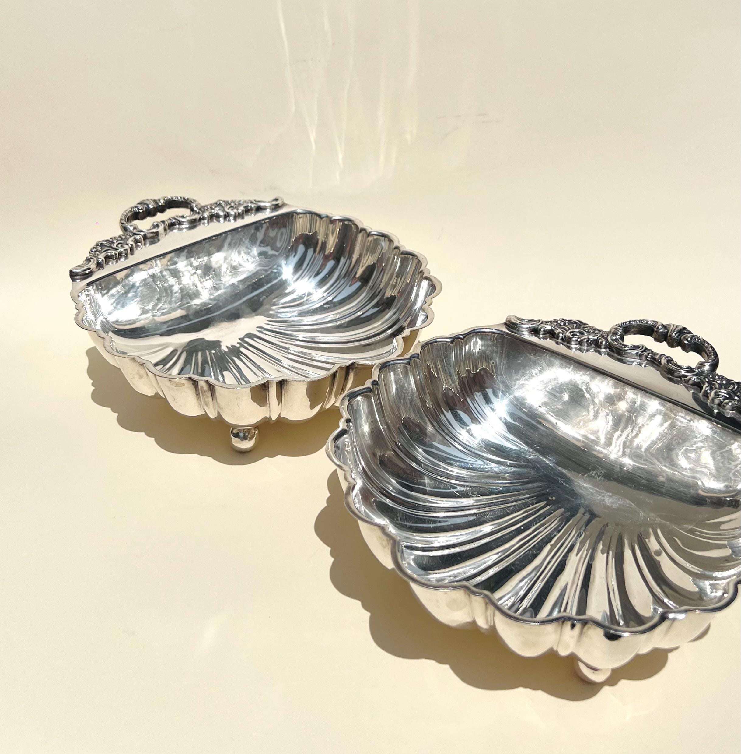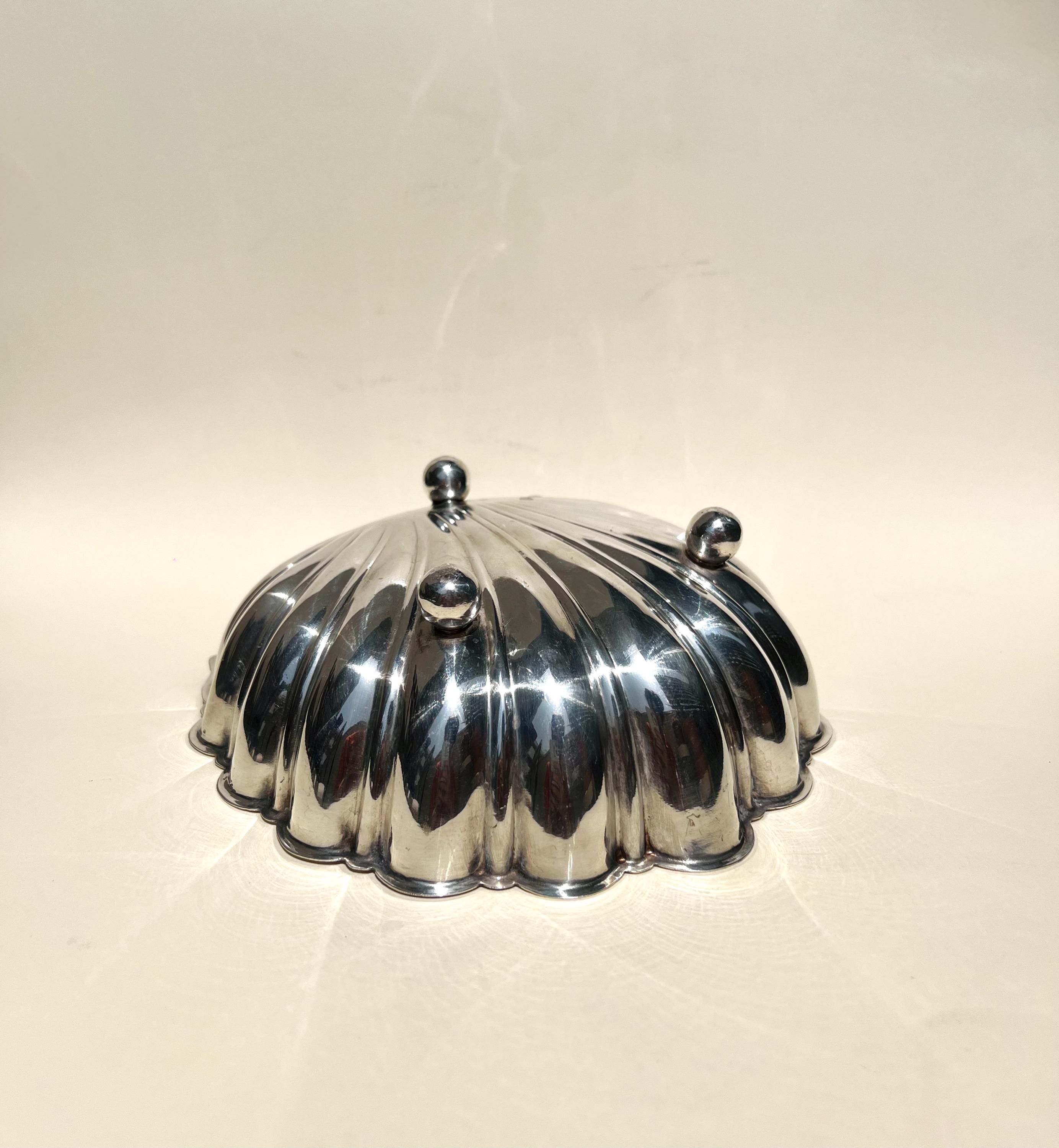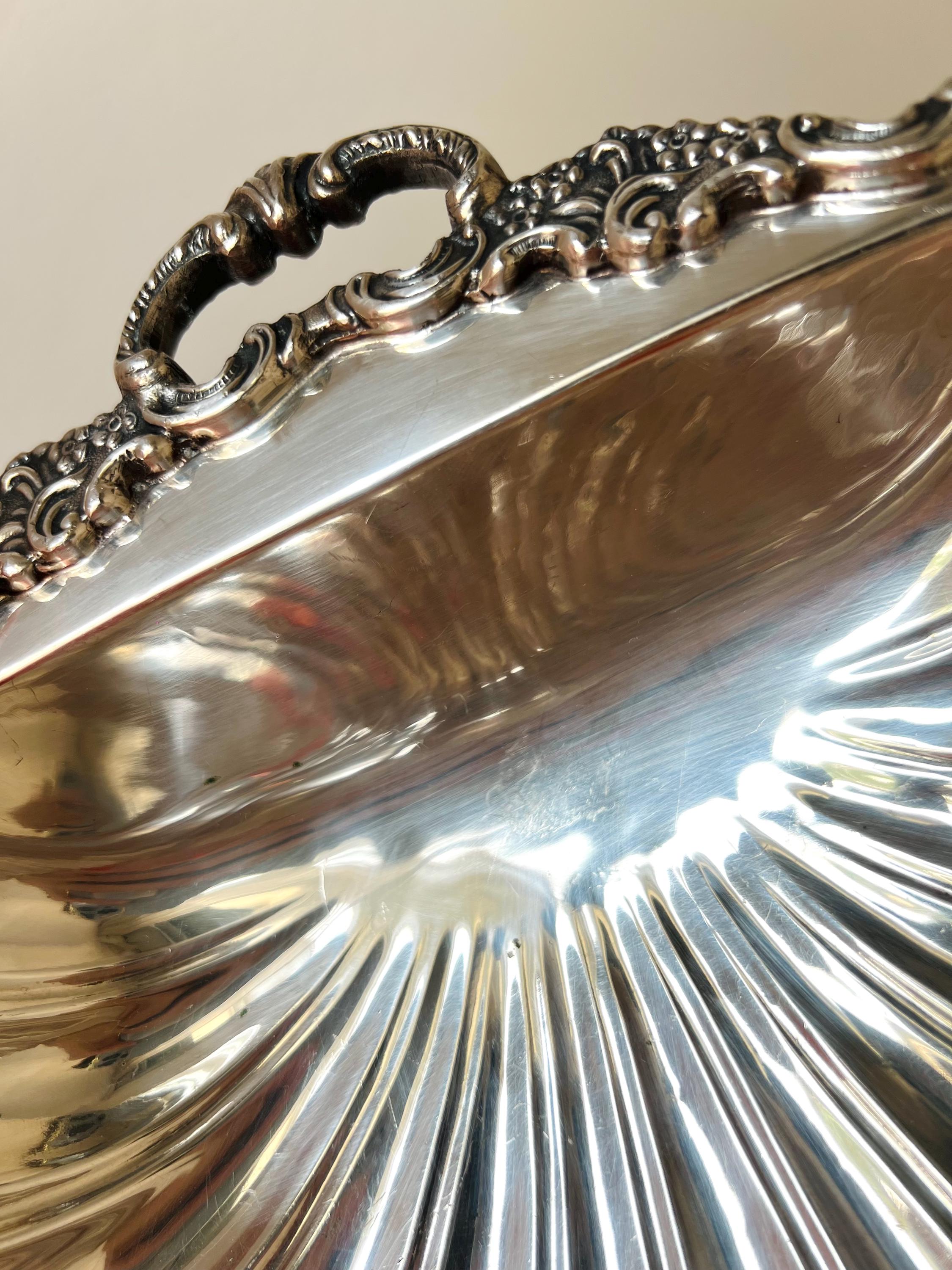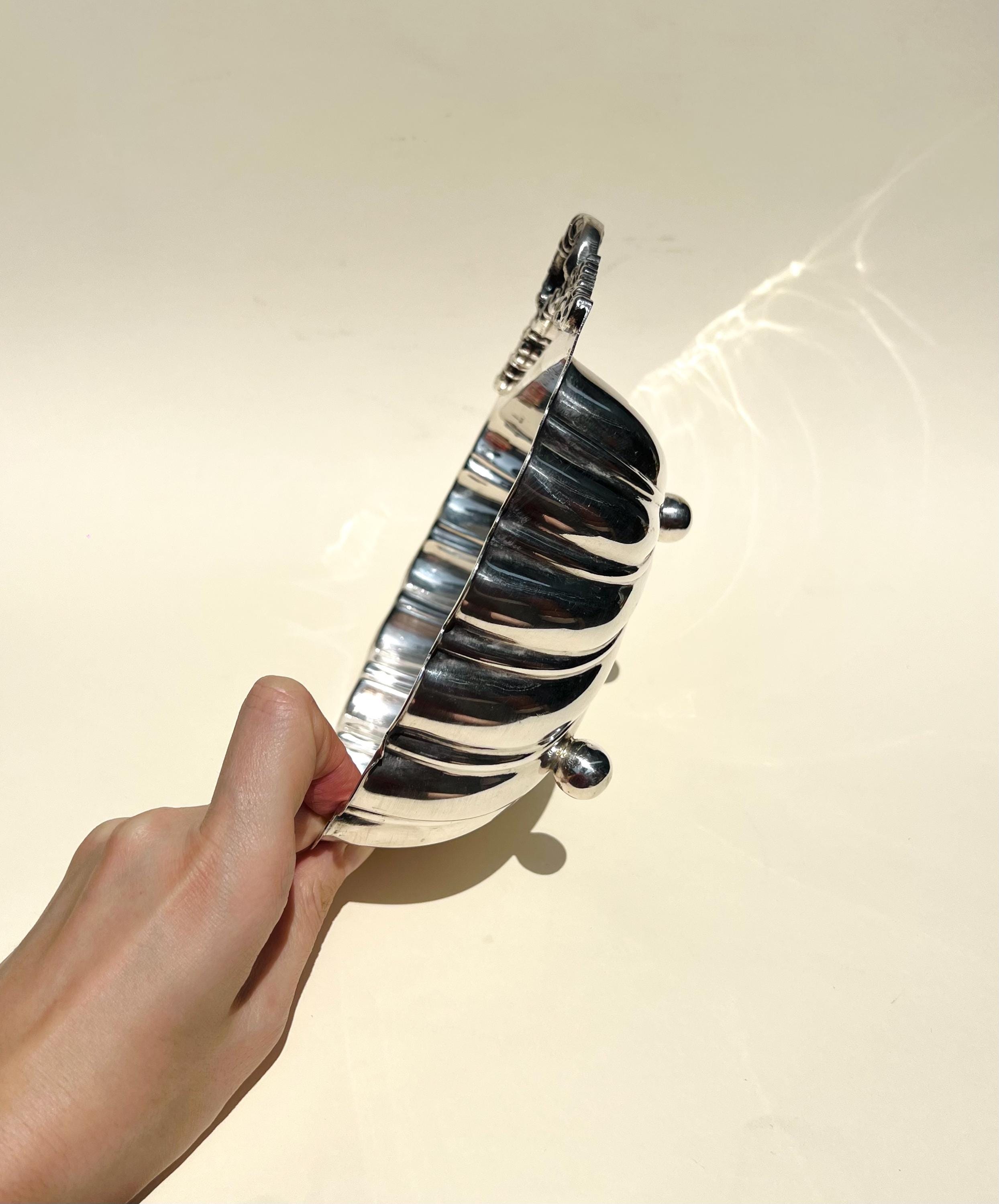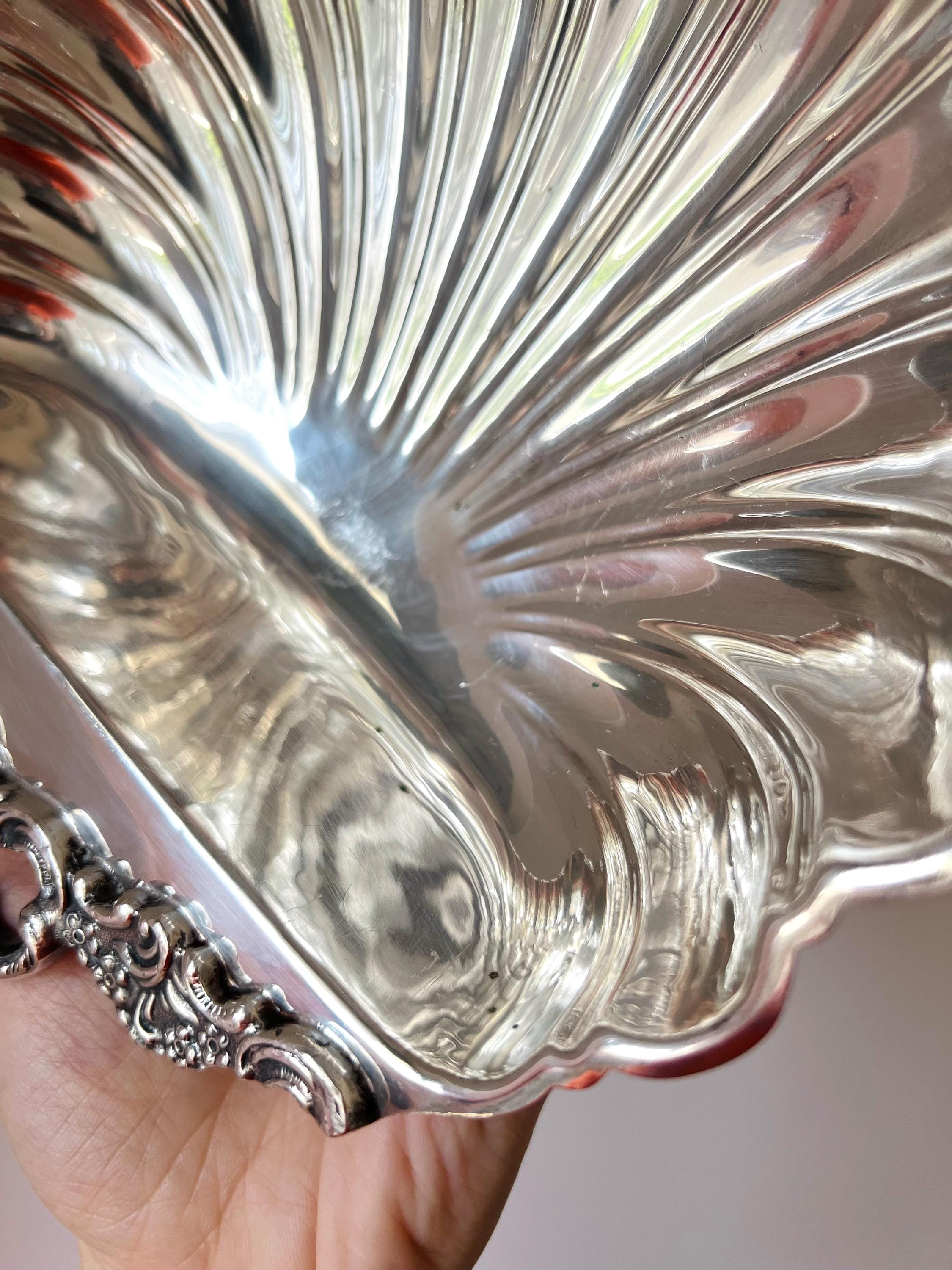 Vintage shell-shaped serving bowl with ornate handle and small decorative feet, sourced in Spain.
