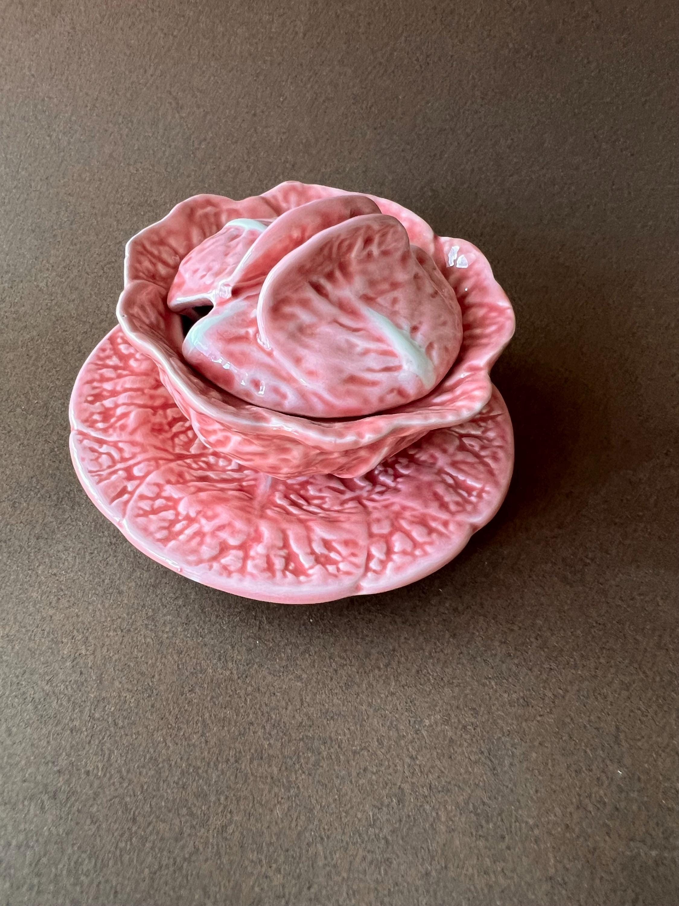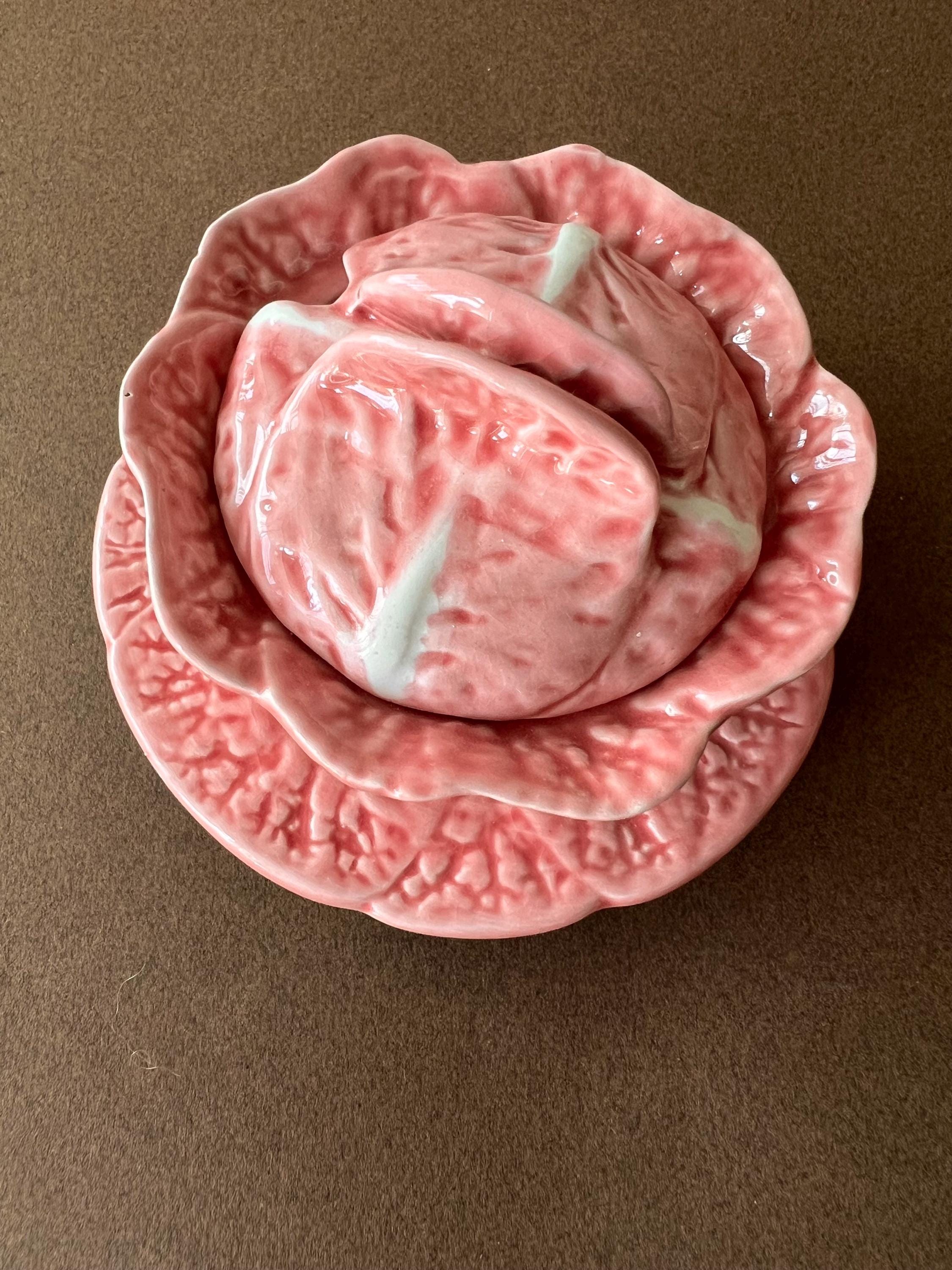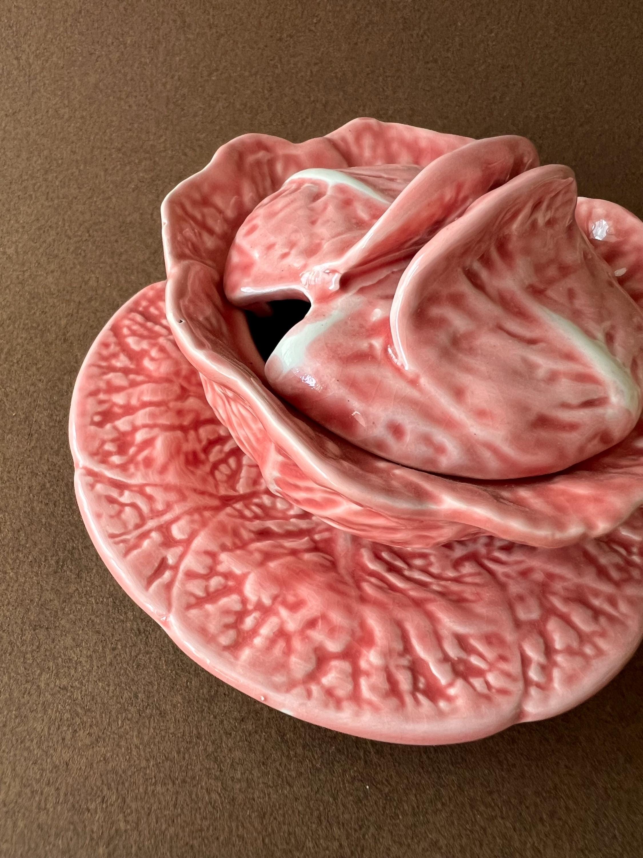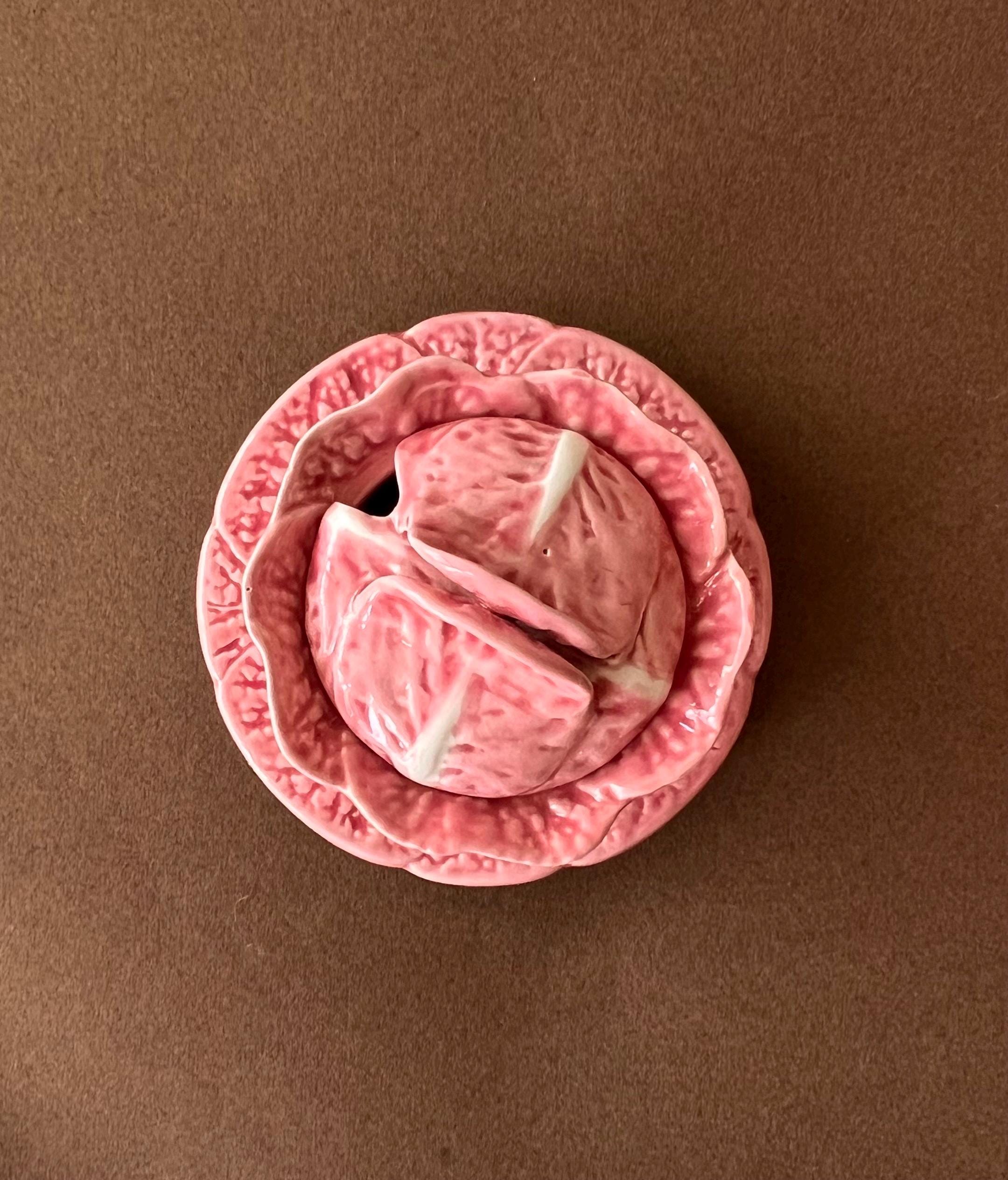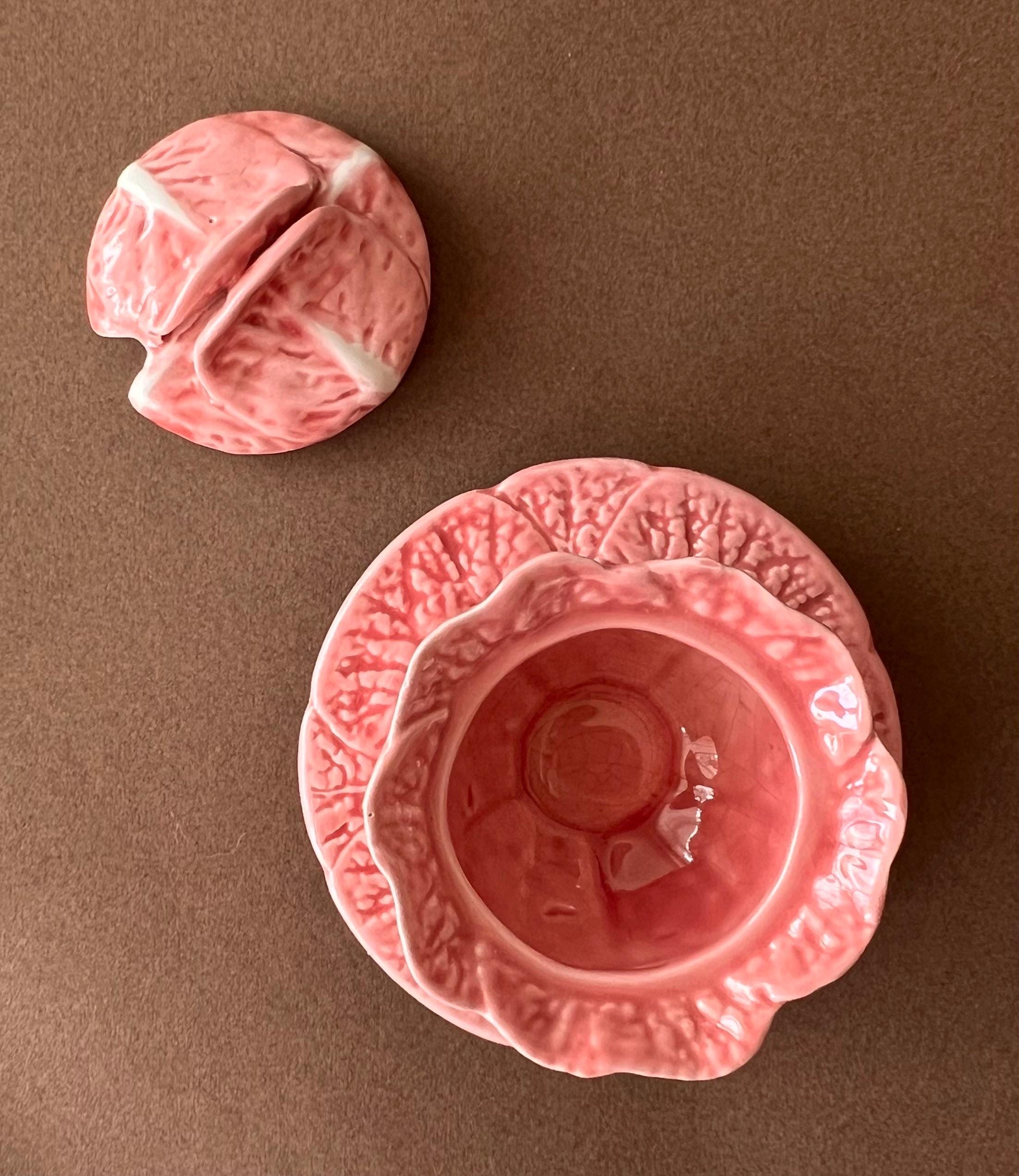 This limited edition pink cabbage-shaped bowl was crafted by Bordallo Pinheiro, the iconic Portuguese ceramics house founded in Lisbon in 1884. Known for their vibrant “Majolica” style, they brought nature to the table through sculptural, painted designs. This piece likely dates from the 1960s, reflecting the brand’s mid-century color palette and craftsmanship.