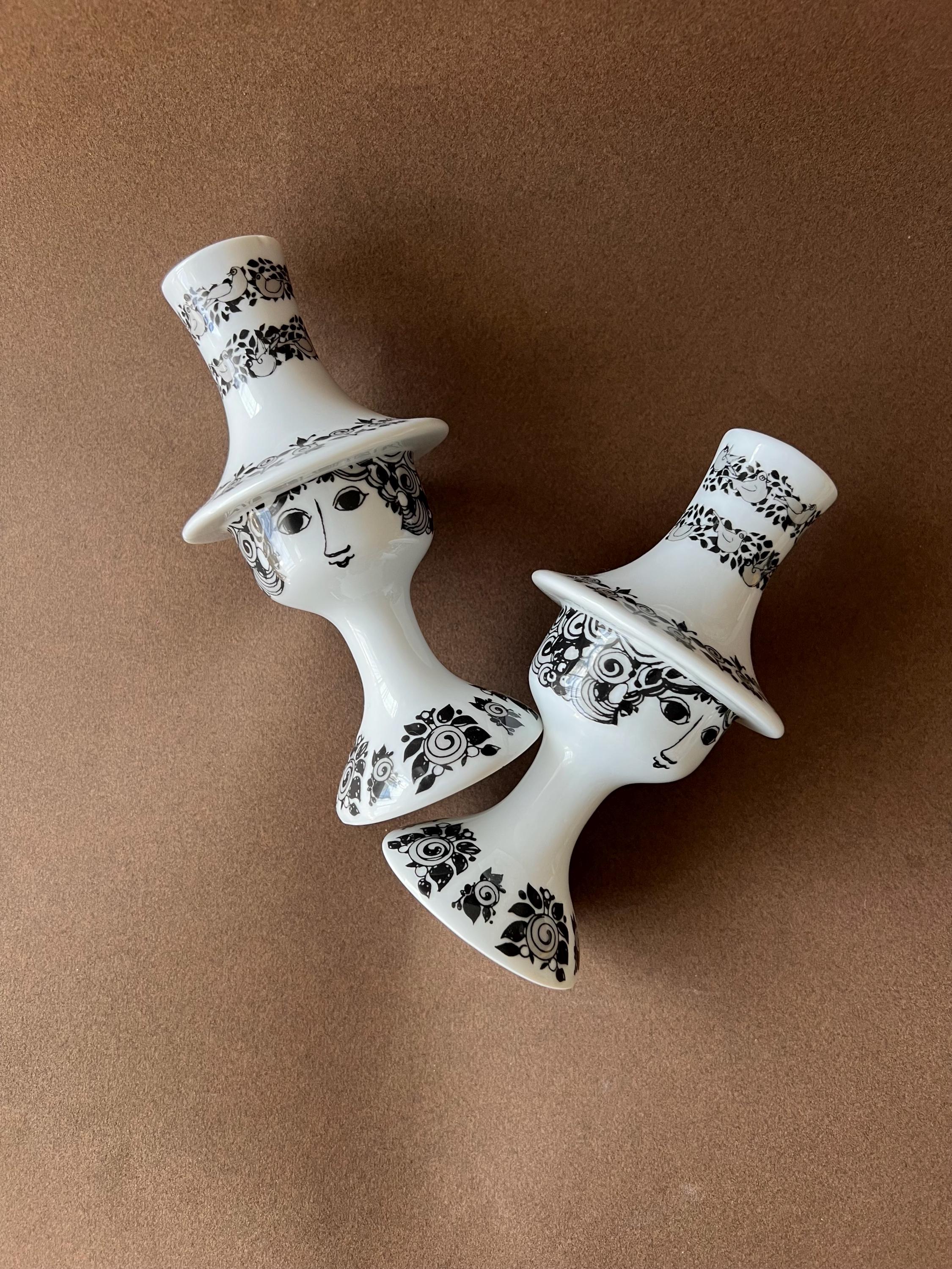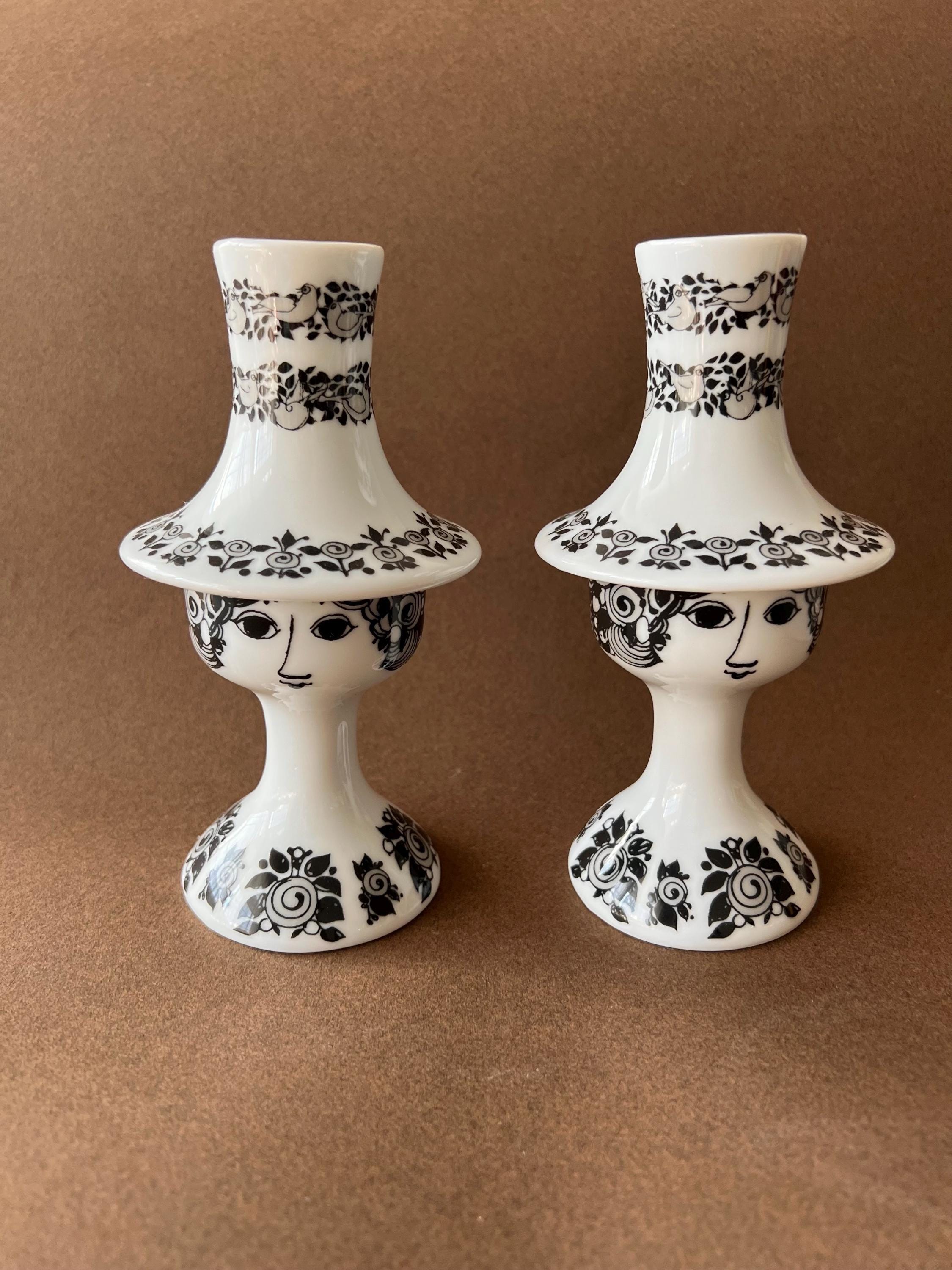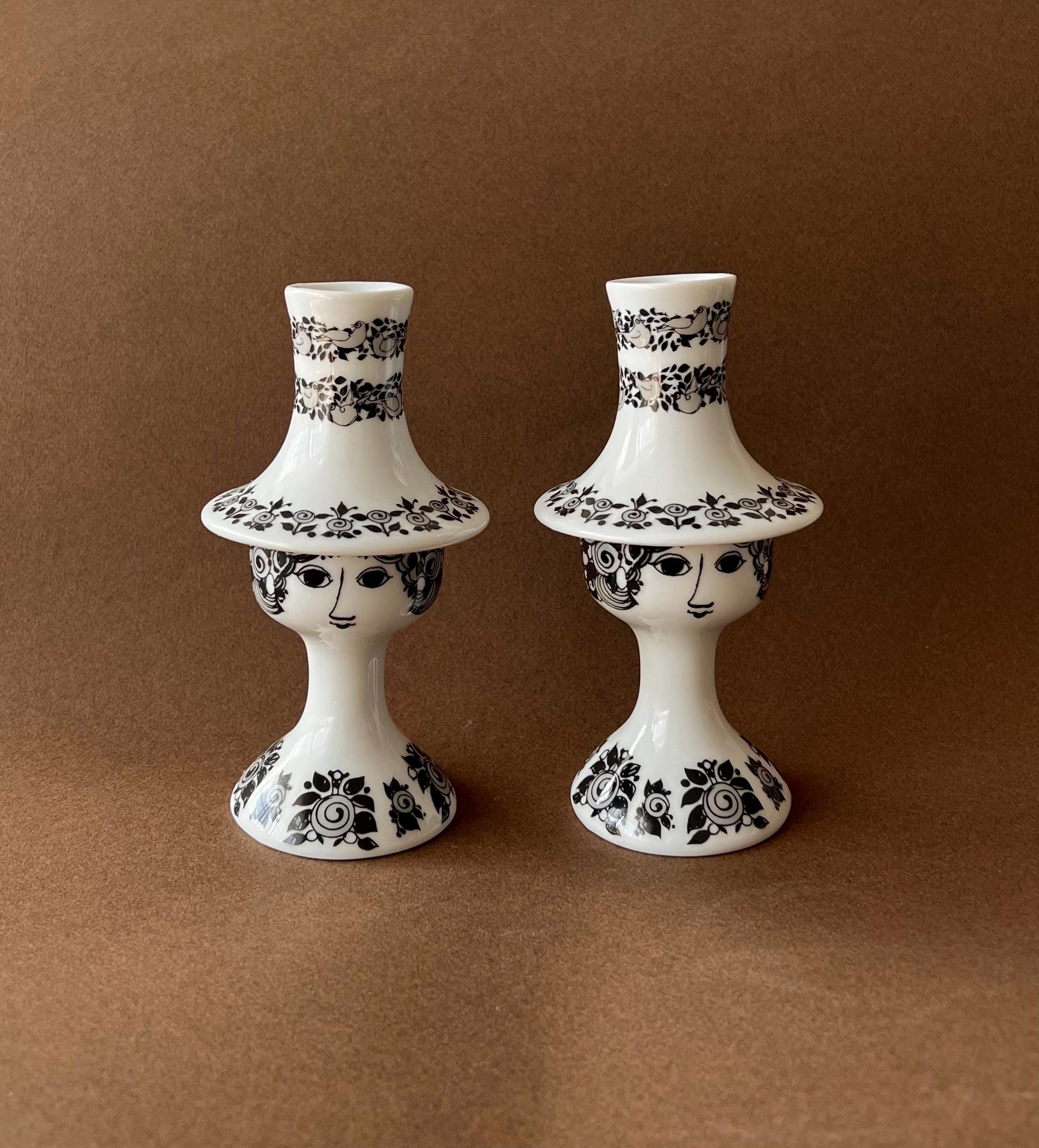 Set of two candle holders designed by Bjørn Wiinblad, a key figure in Danish mid-century design. A beautiful gift for design lovers or collectors of Scandinavian ceramics