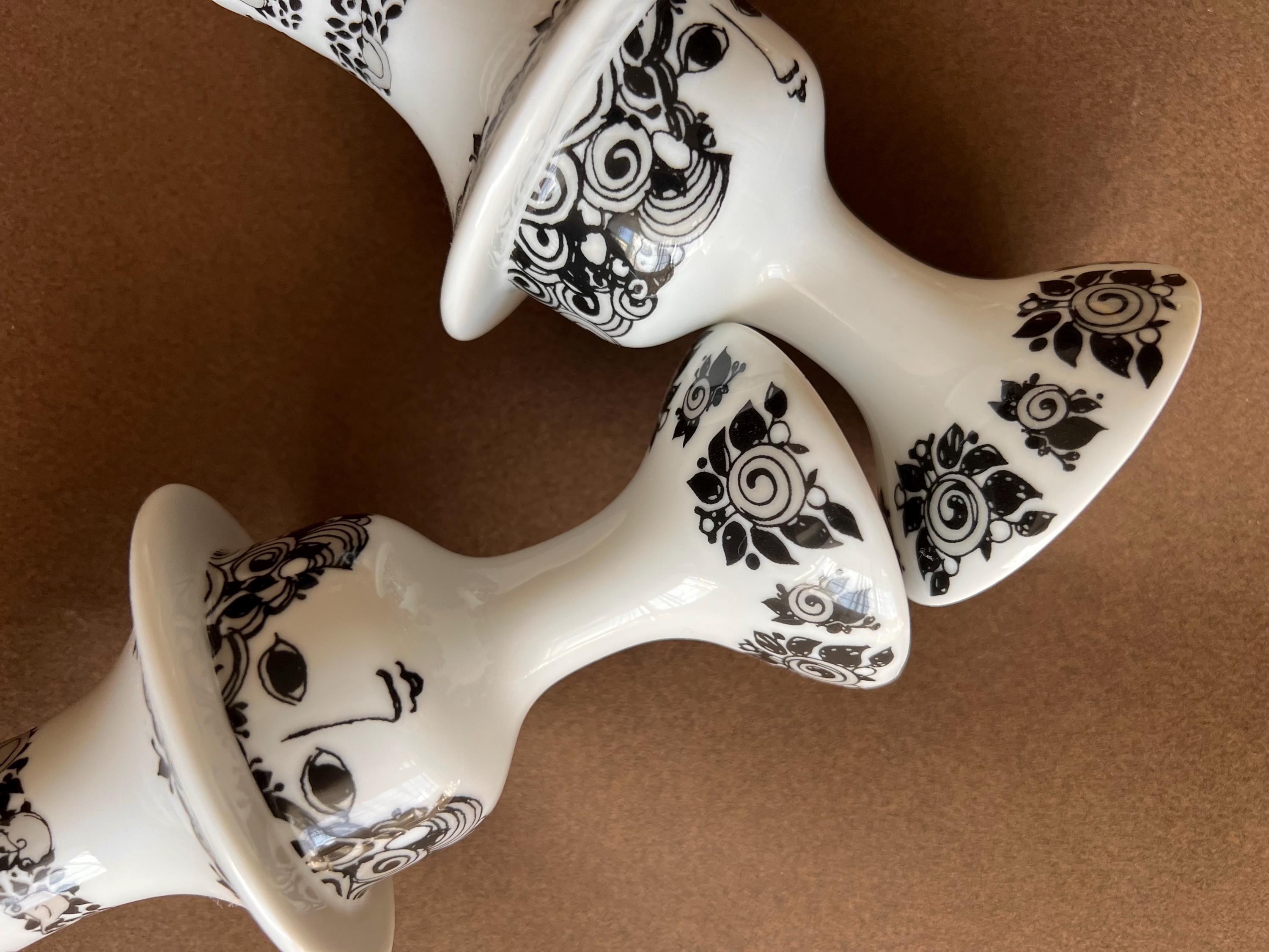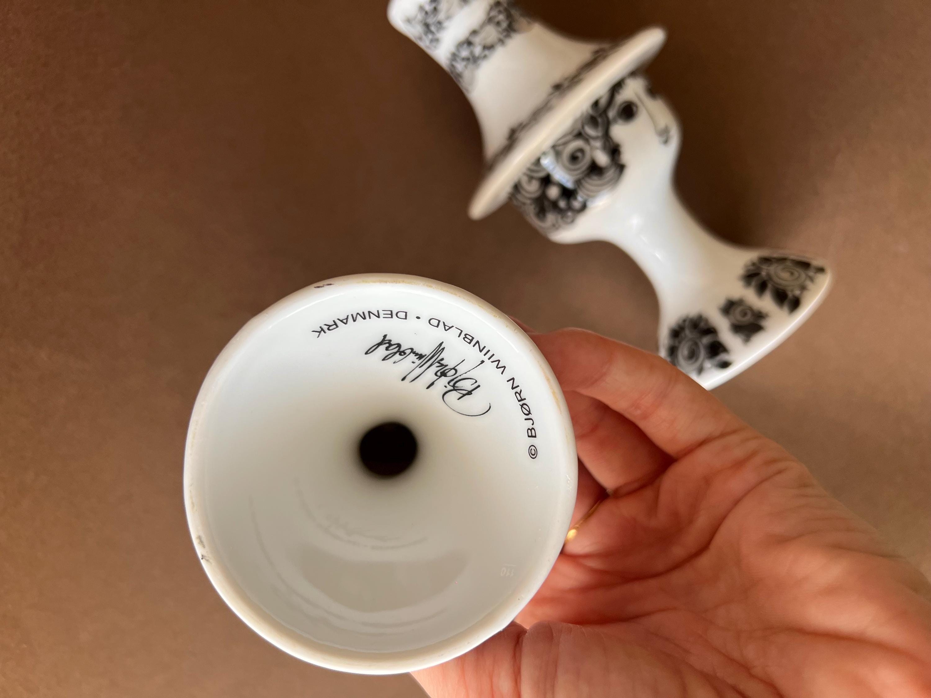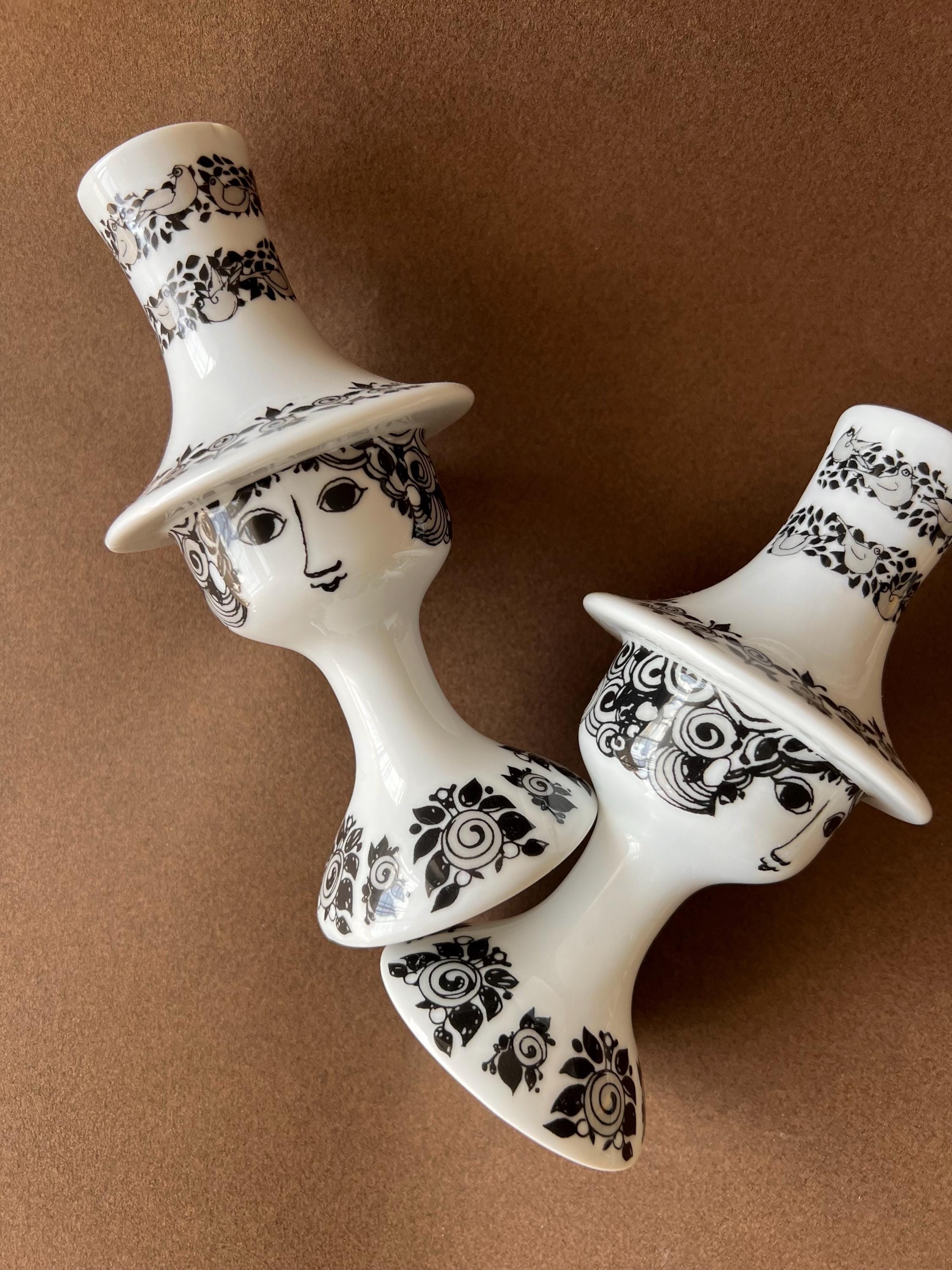Set of two candle holders designed by Bjørn Wiinblad, a key figure in Danish mid-century design. A beautiful gift for design lovers or collectors of Scandinavian ceramics