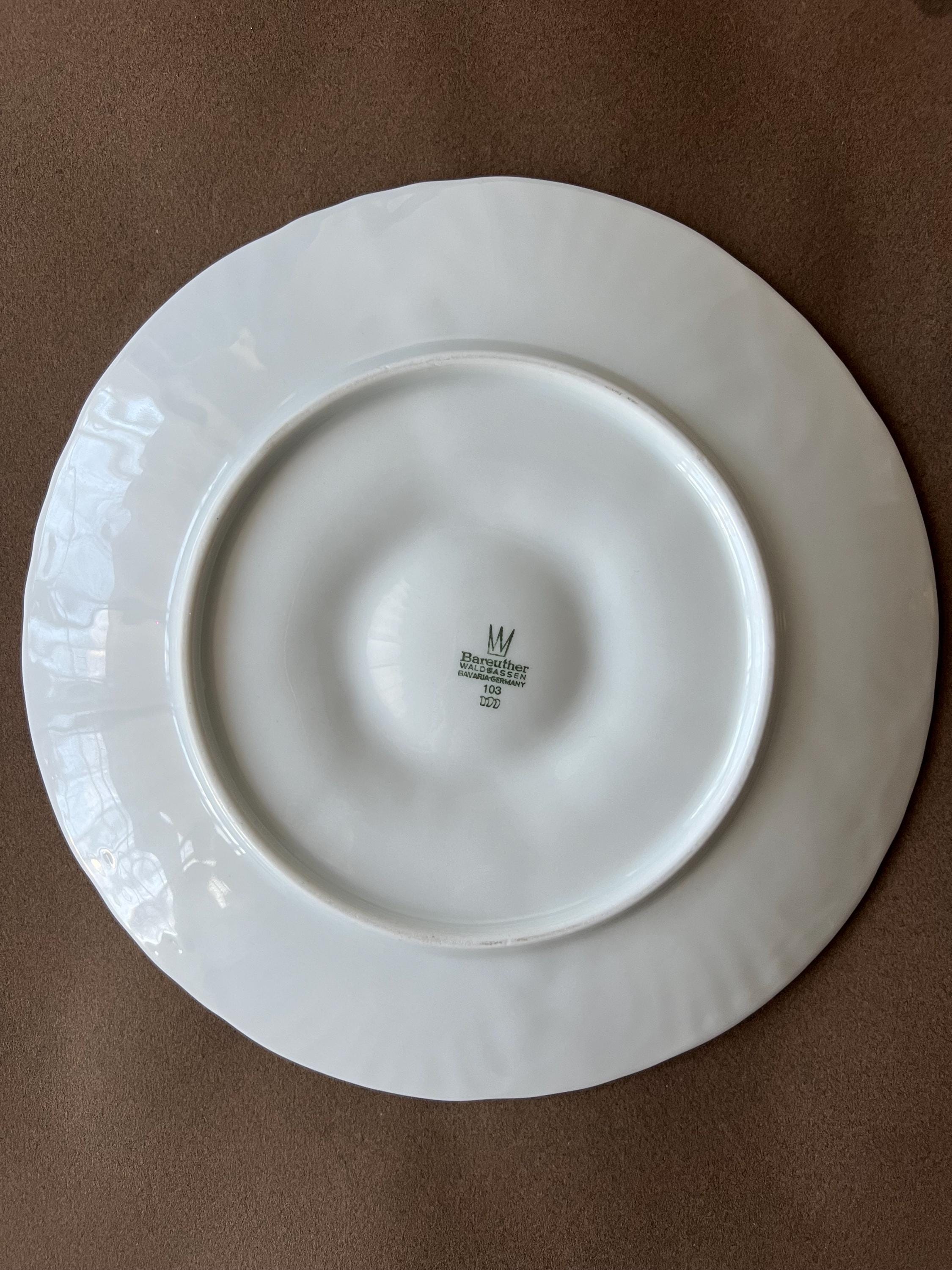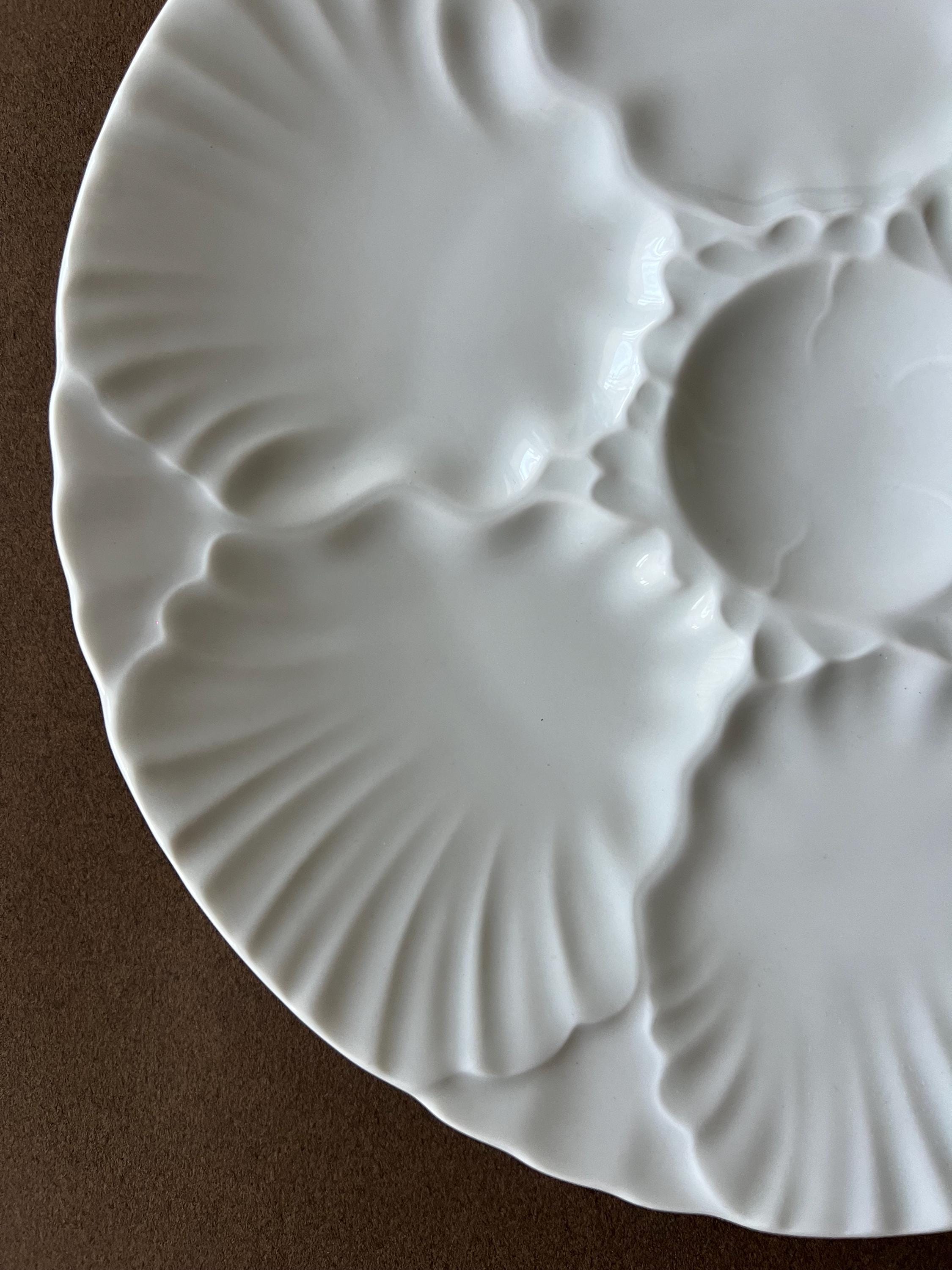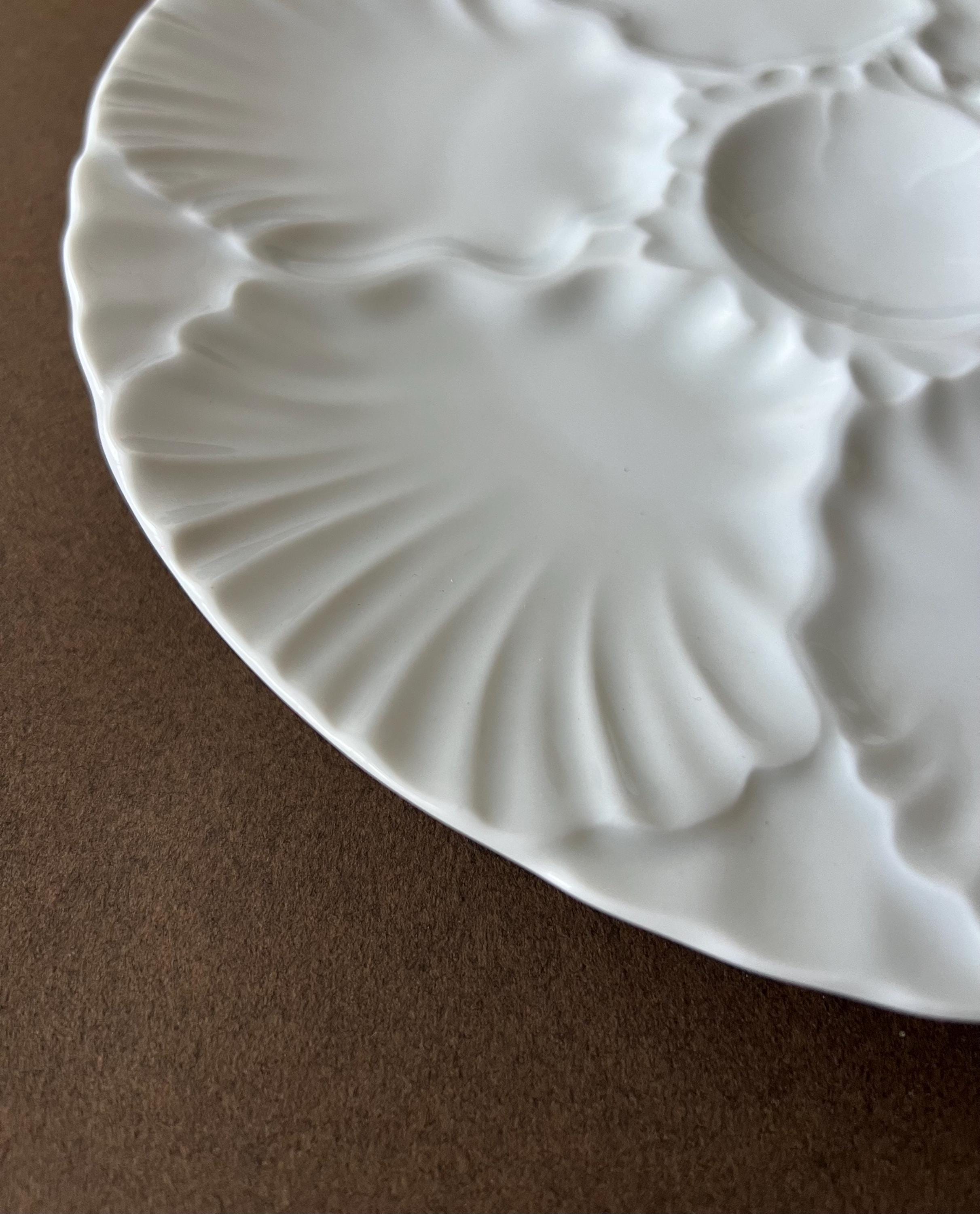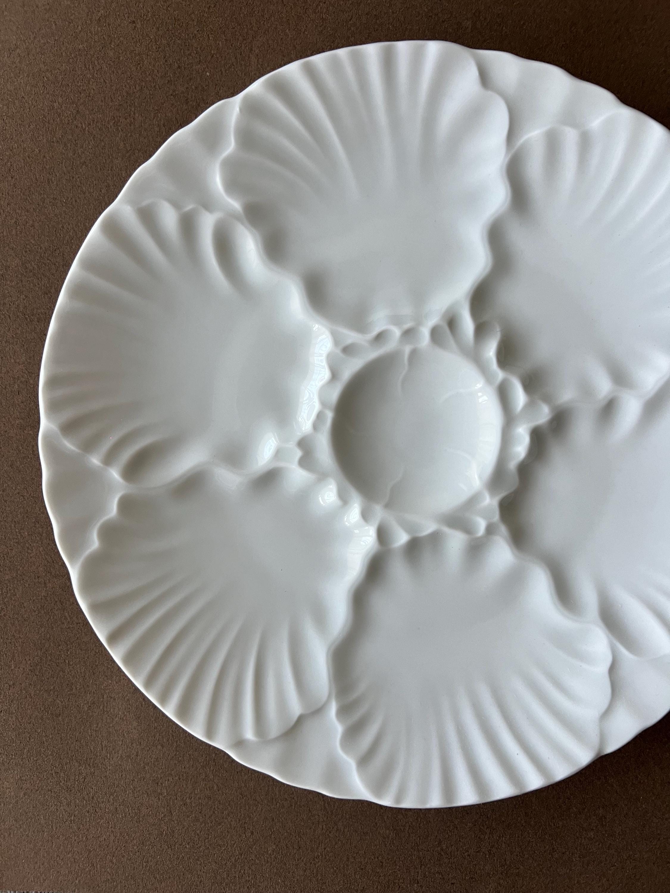 This vintage oyster plate was crafted in Germany by the renowned Bareuther porcelain house. With six wells for oysters and a central sauce compartment, this piece is perfect for lovers of classic French dining aesthetics.