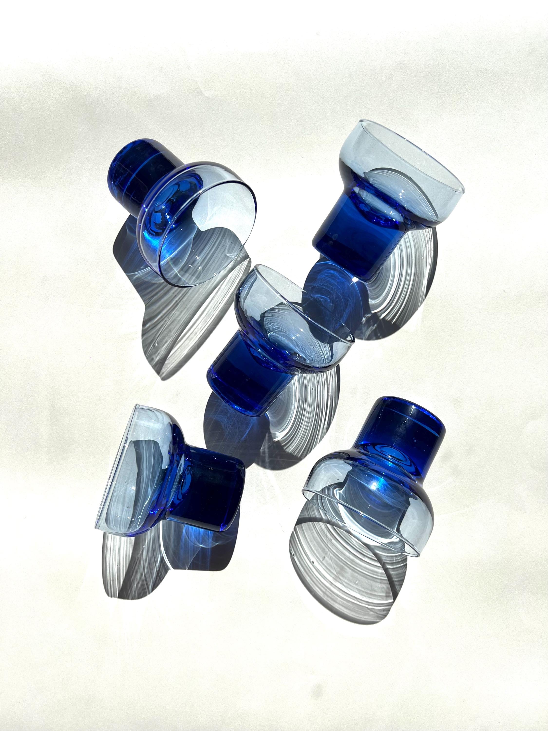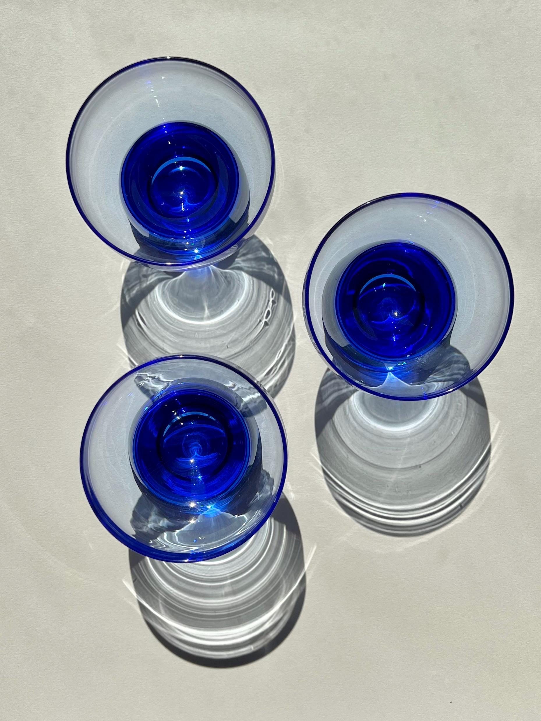 Vintage Italian Cobalt Blue Glasses - Set of 5 - Cocktail Wine Aperitif