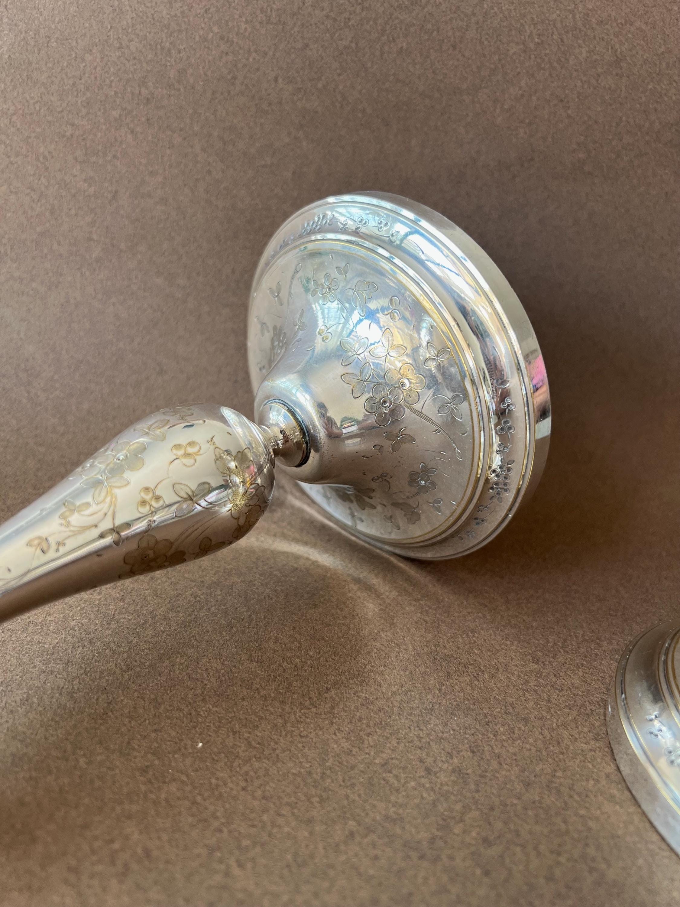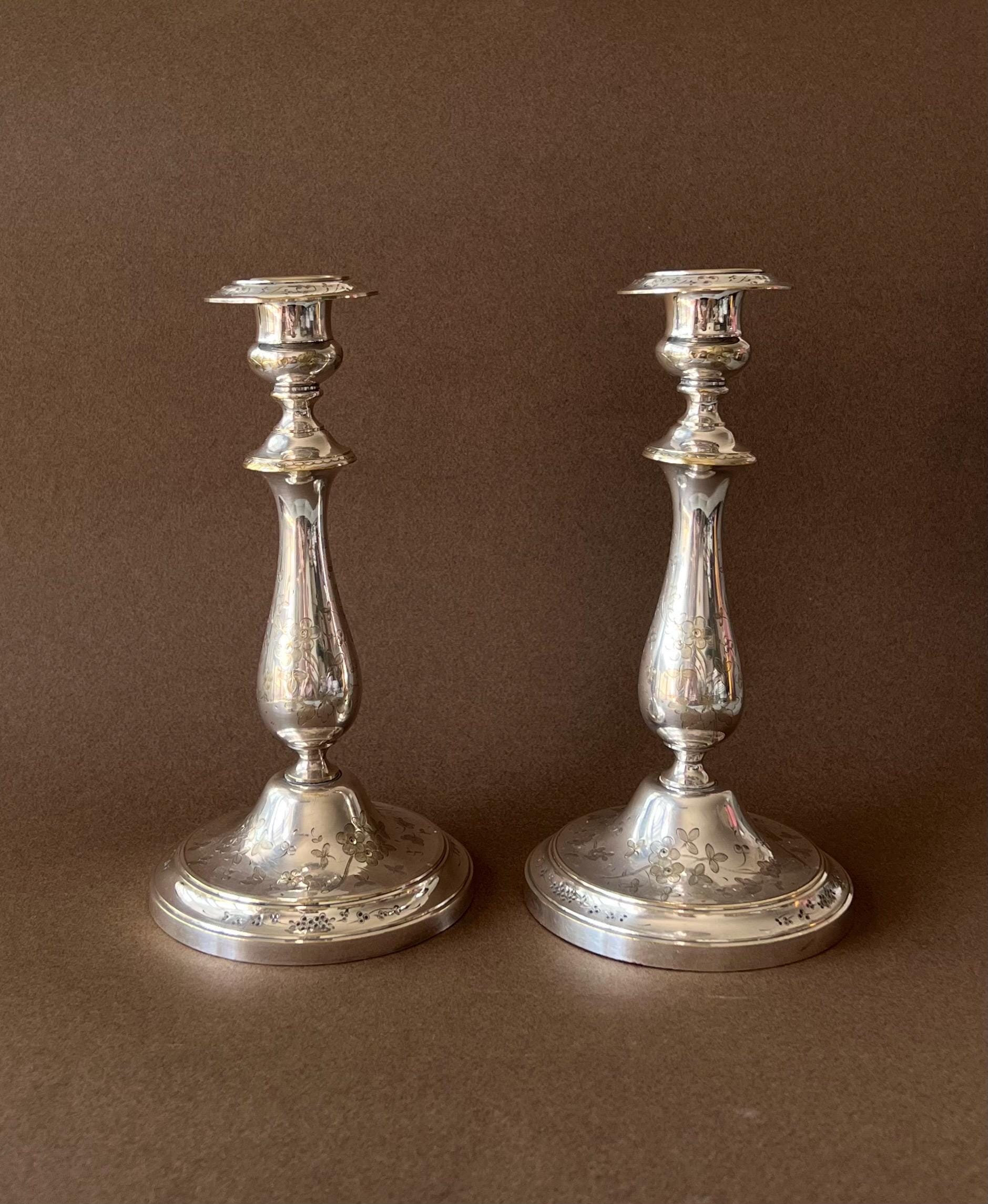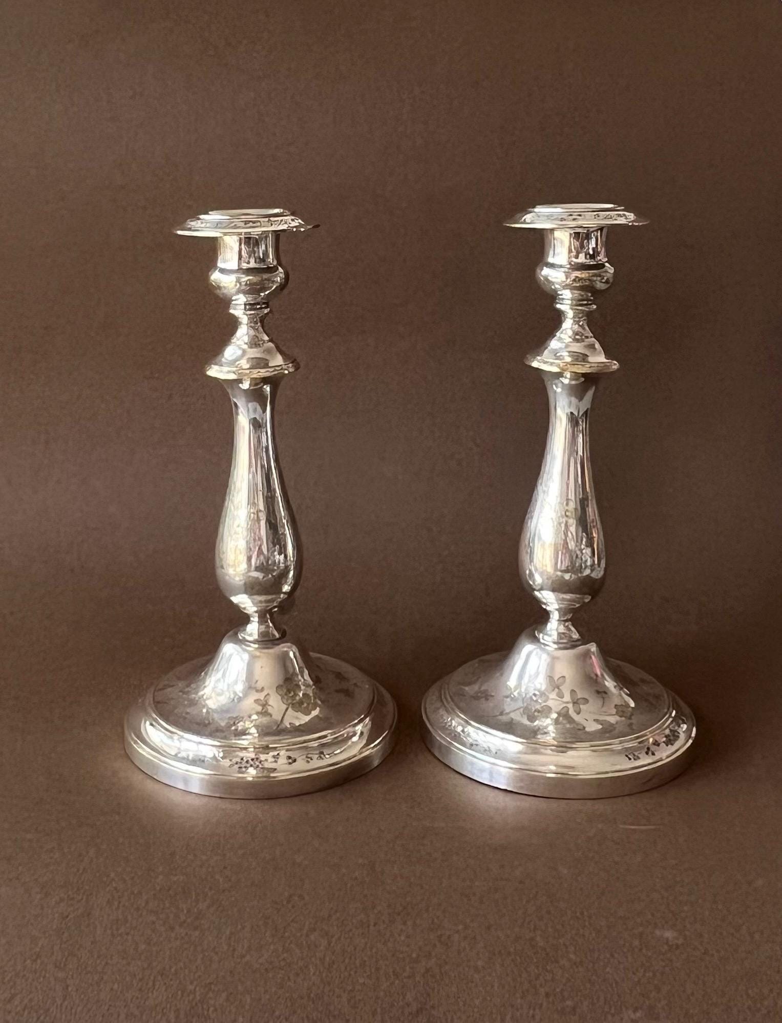 These rare vintage silver-plated candleholders were made by Christofle, which is one of France's most famous silversmith workshops.