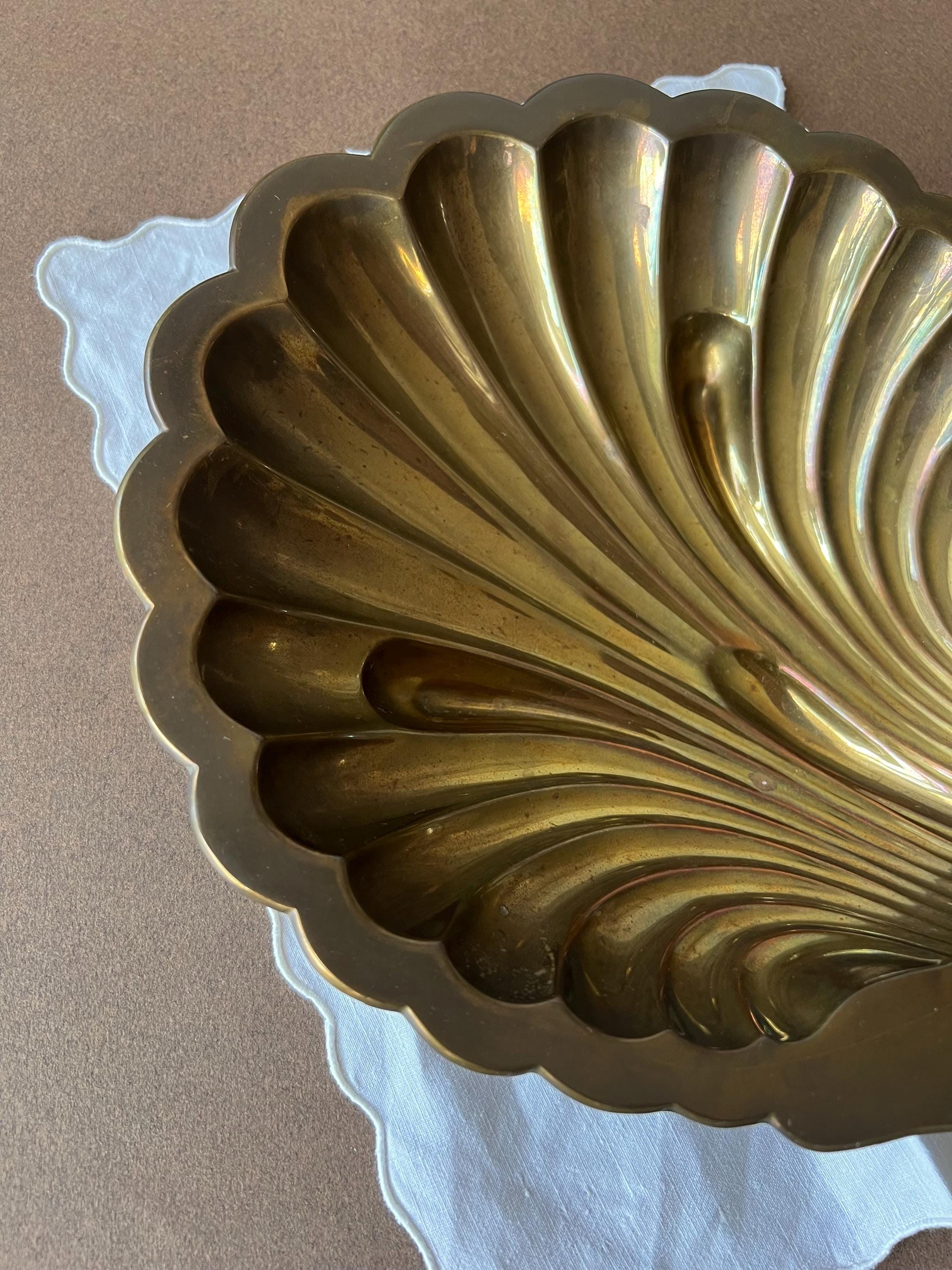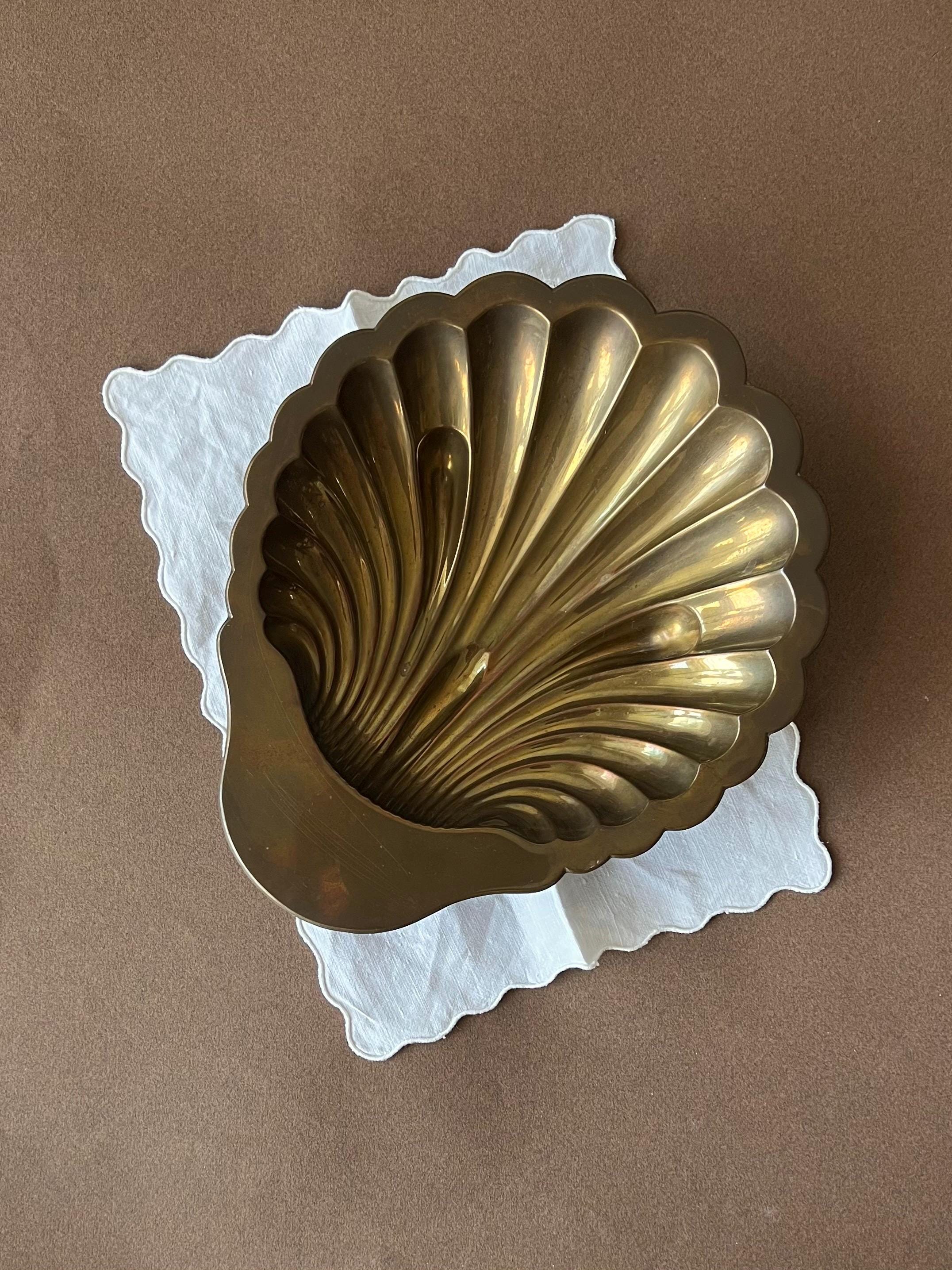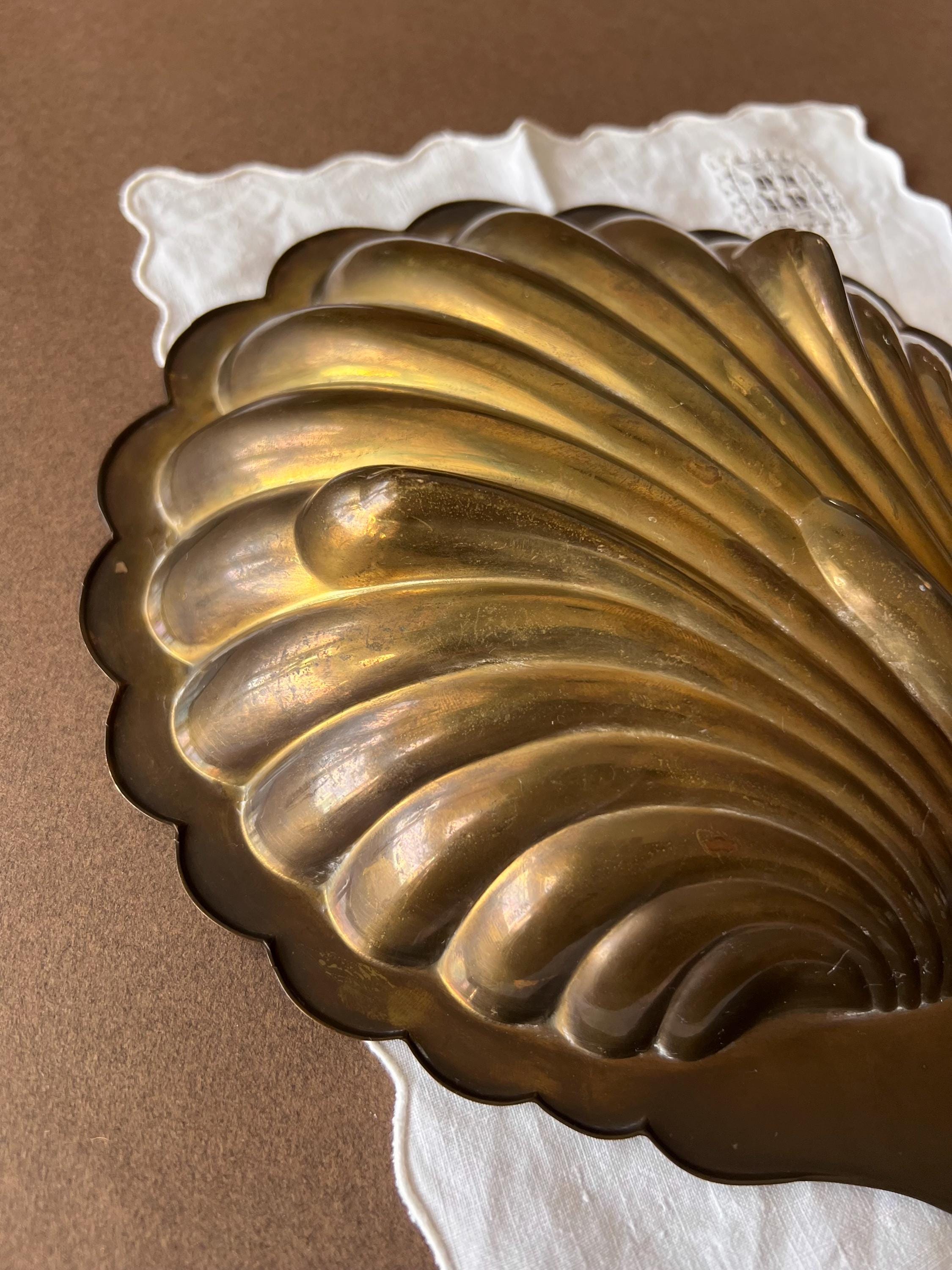 This vintage brass shell dish is a beautiful piece, perfect for adding a touch of mid century decor to any home. The dish features a classic scallop (or clam) shell shape and a polished golden finish that catches the light beautifully. Sourced in Spain.