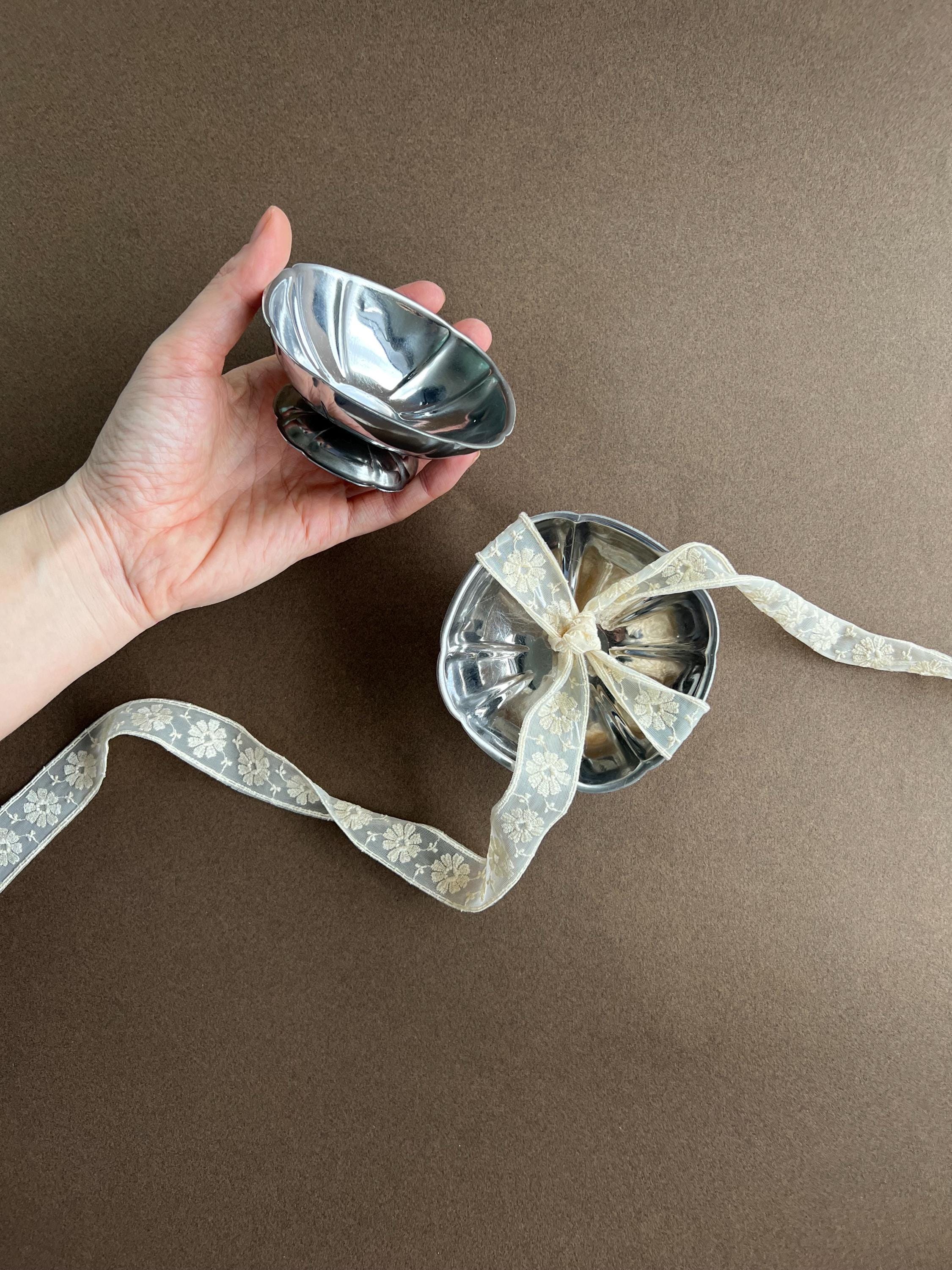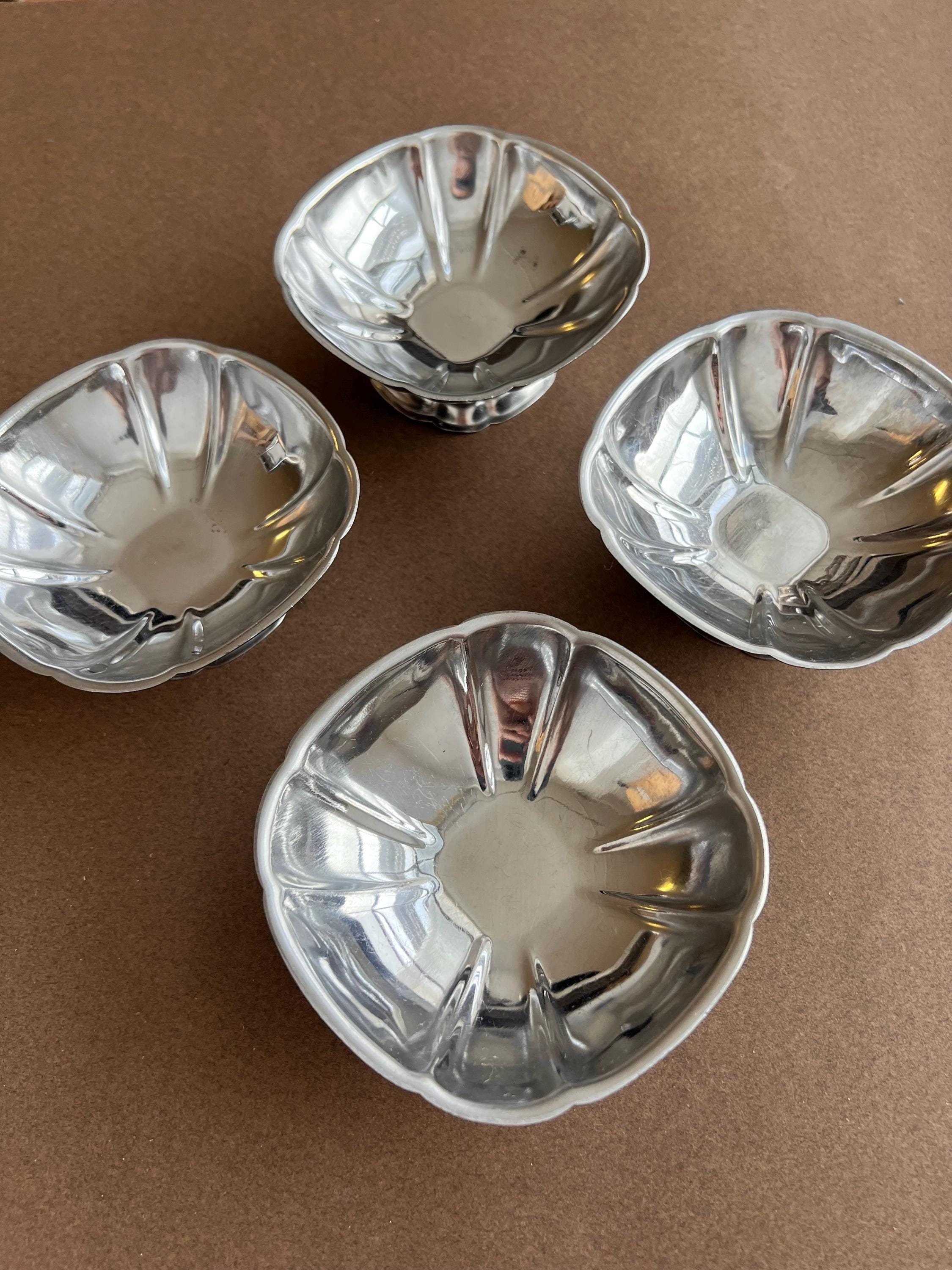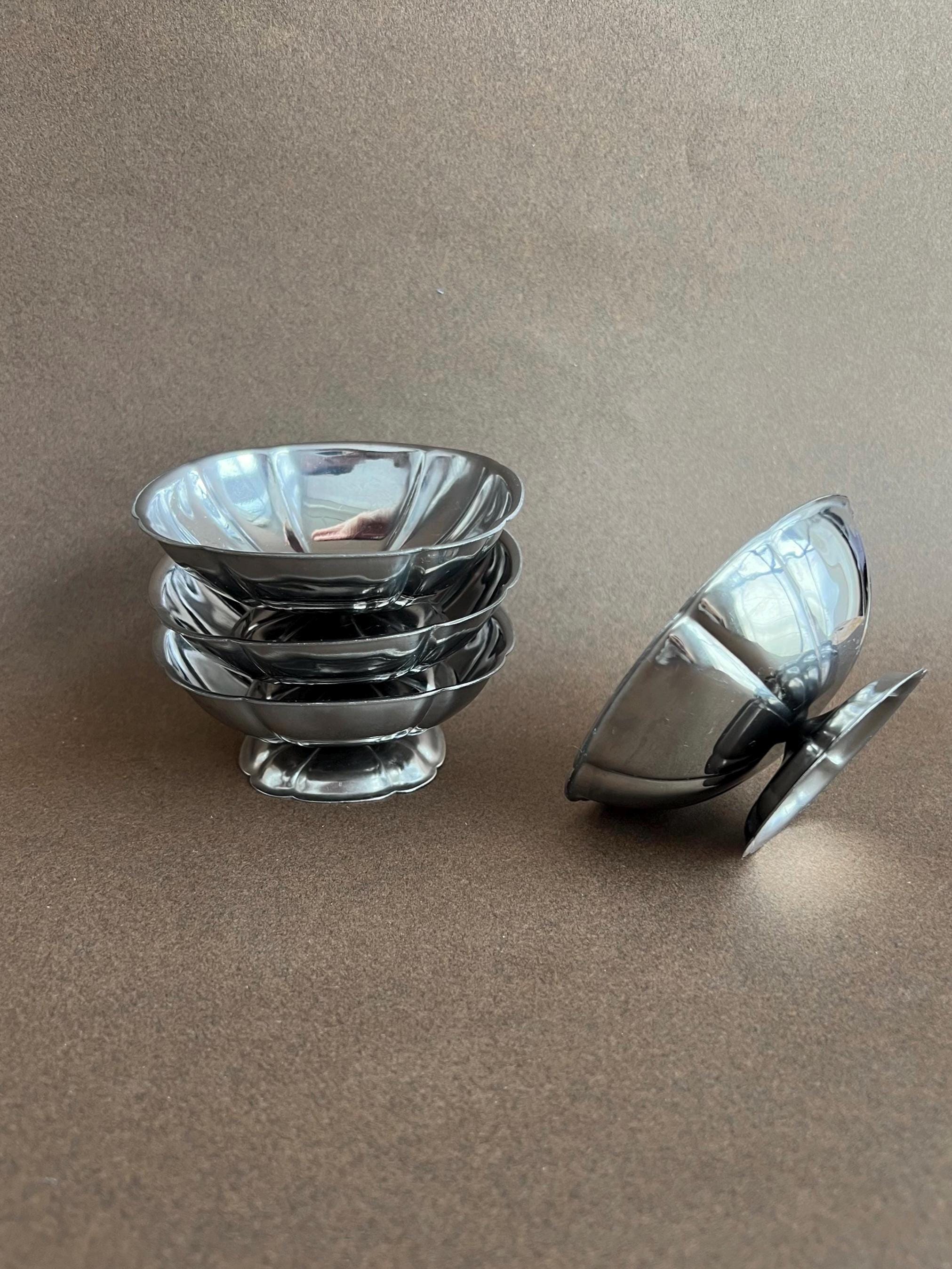 Set of scalloped vintage stainless steel ice cream coupes. Perfect for serving gelato, ice cream, tiramisu, sorbet, fruit, snacks/dips or anything else.