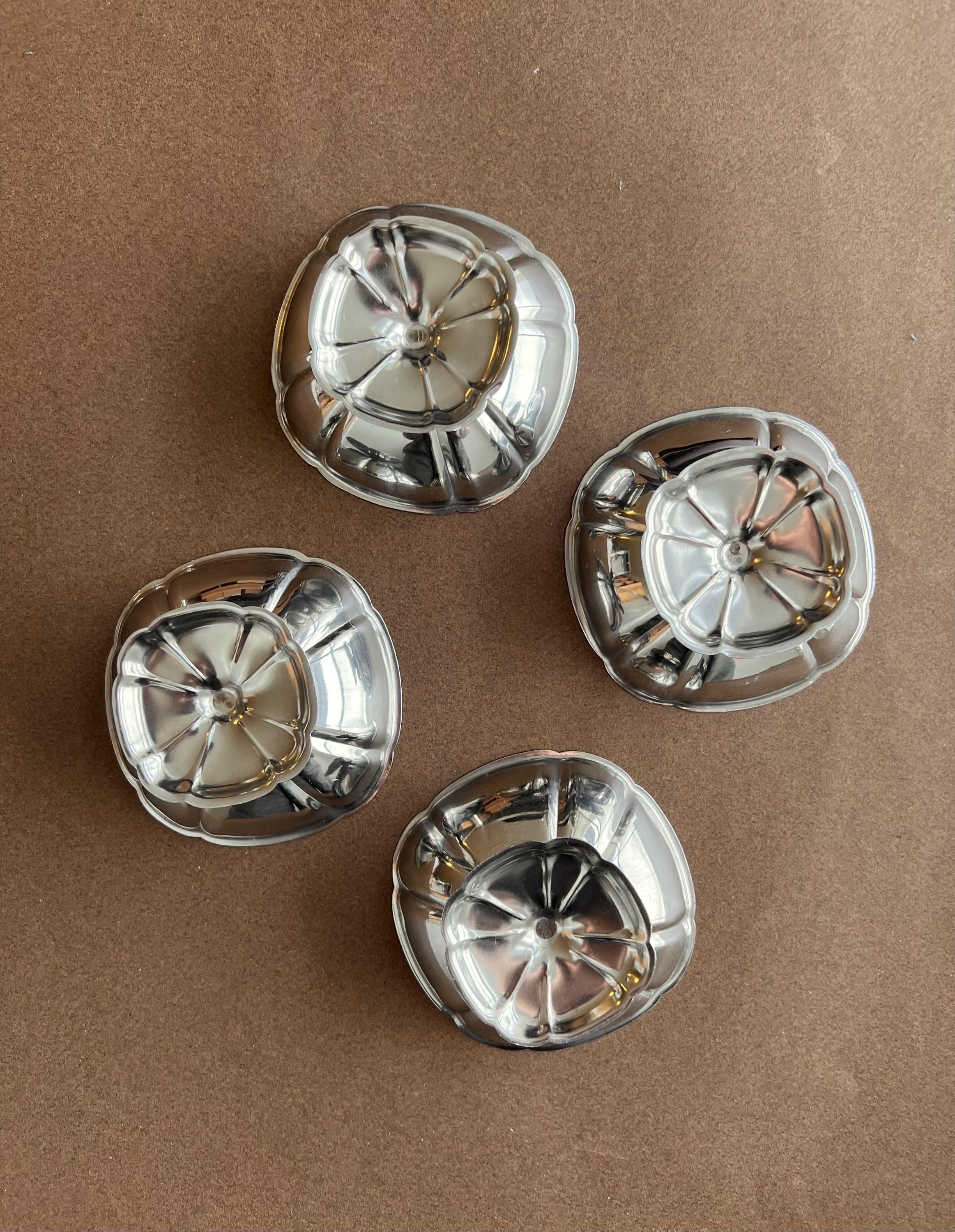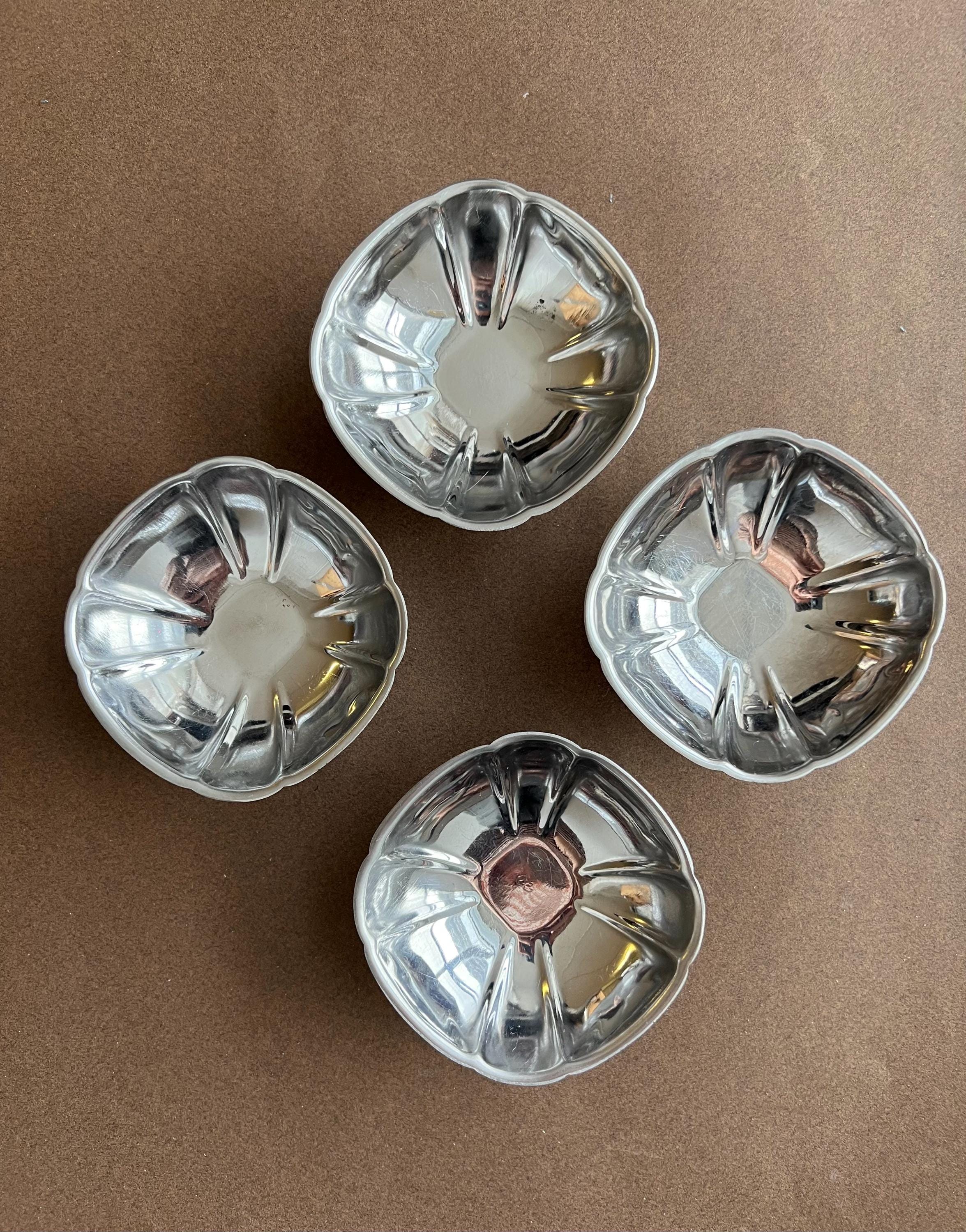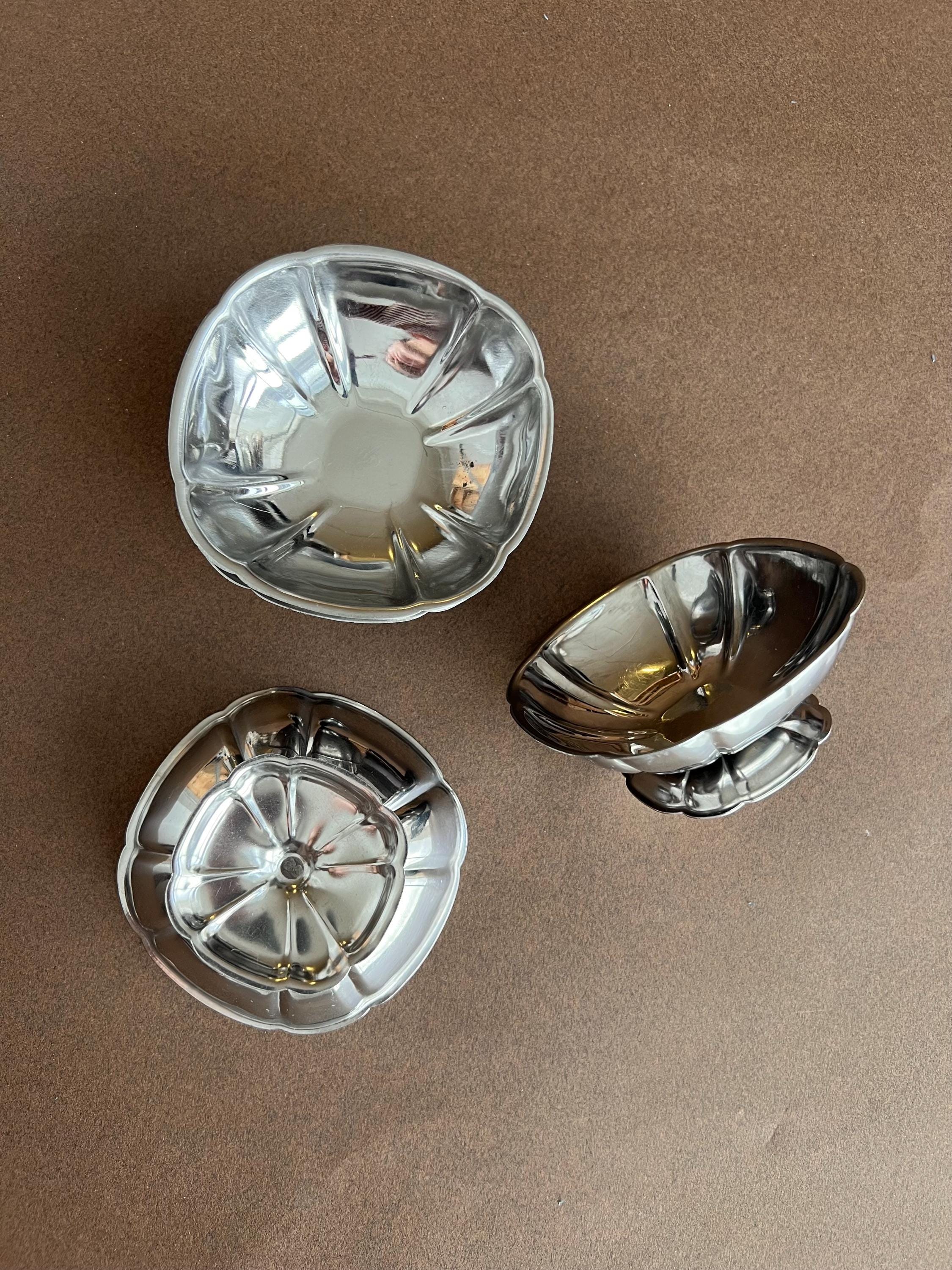 Set of scalloped vintage stainless steel ice cream coupes. Perfect for serving gelato, ice cream, tiramisu, sorbet, fruit, snacks/dips or anything else.