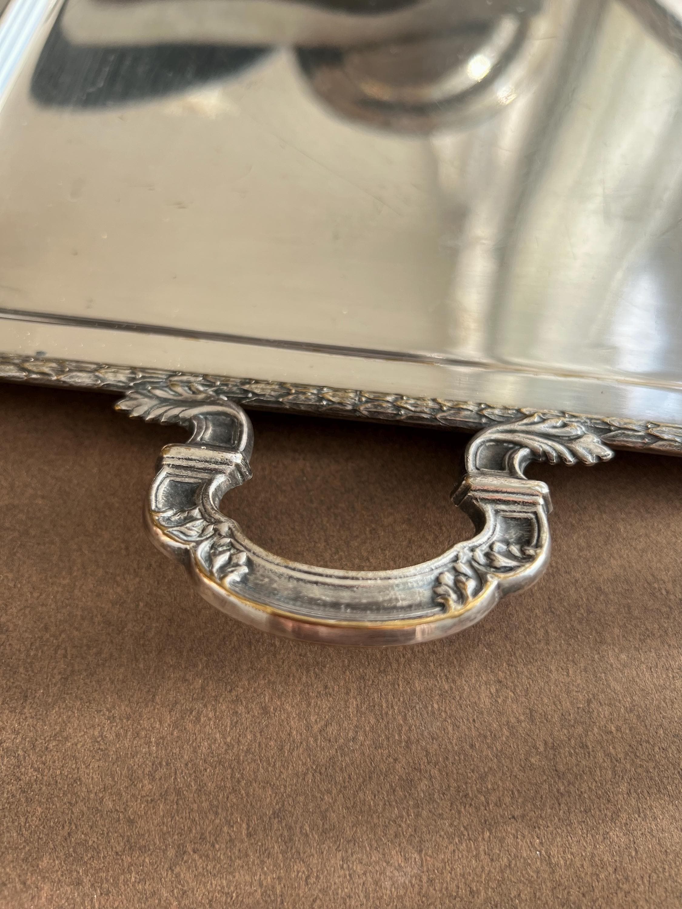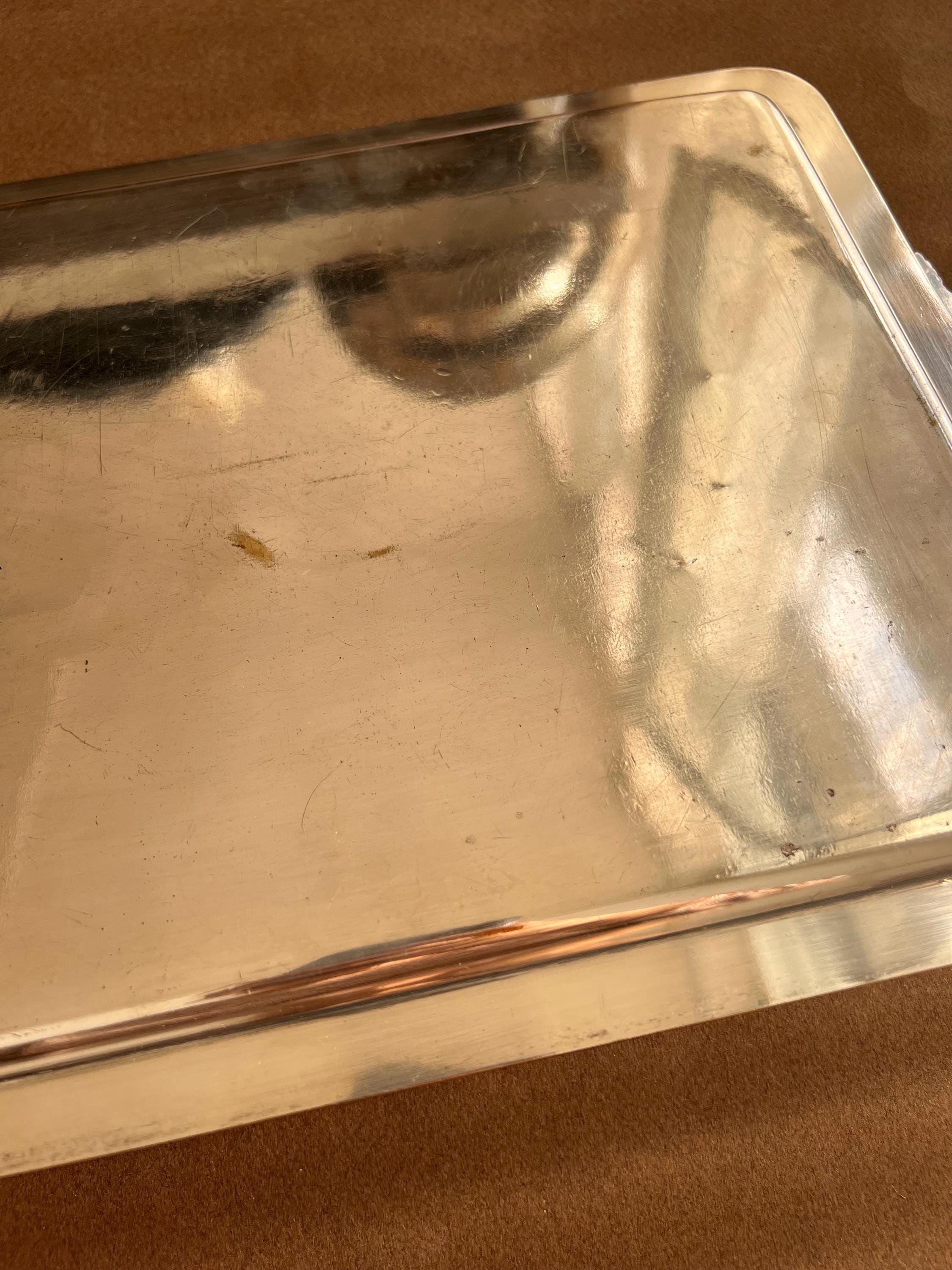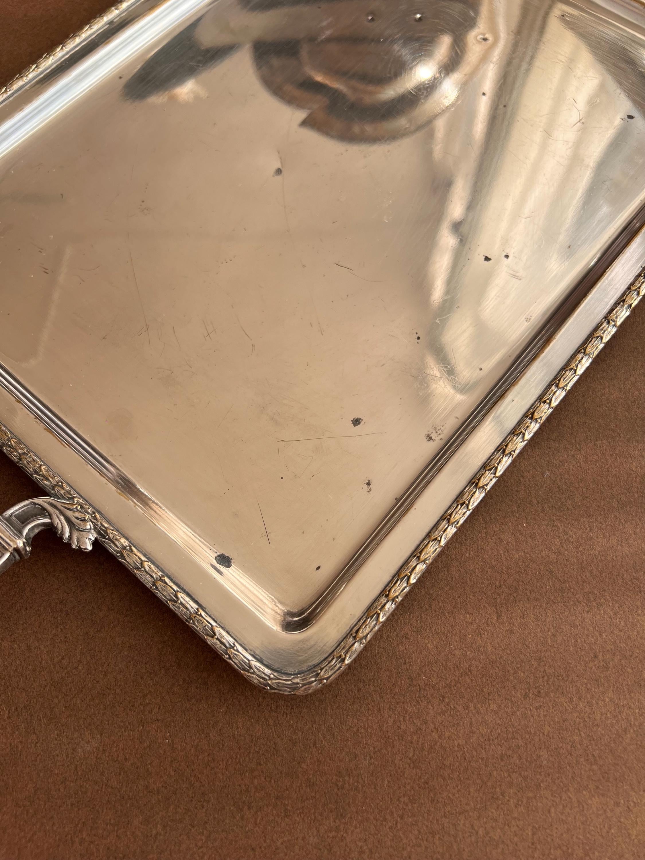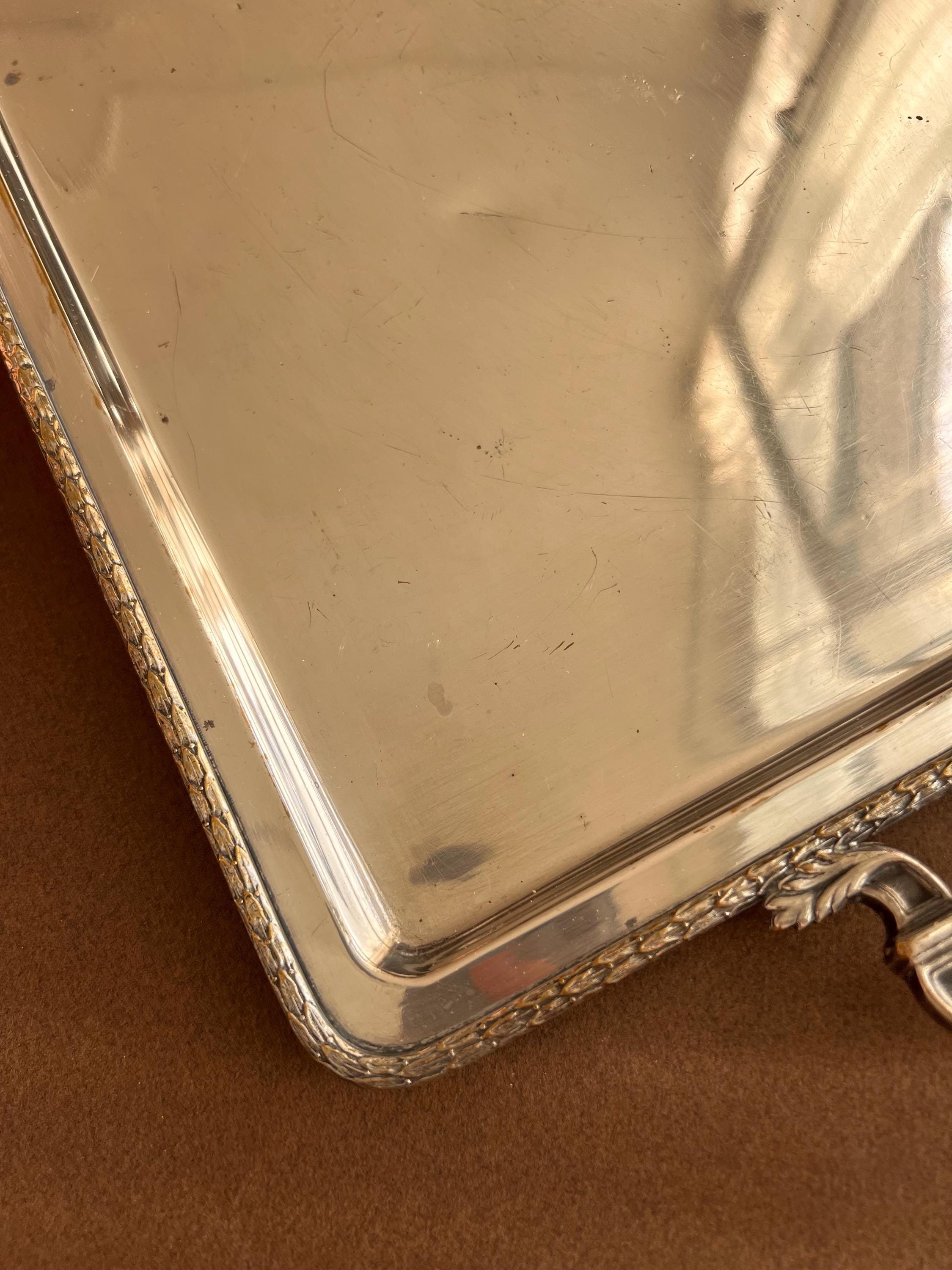The trays show areas of wear, minor dents (on the big tray only), surface scratches, and some tarnishing or silver loss, as is typical for cherished antique pieces. Please review all photos carefully before purchasing.