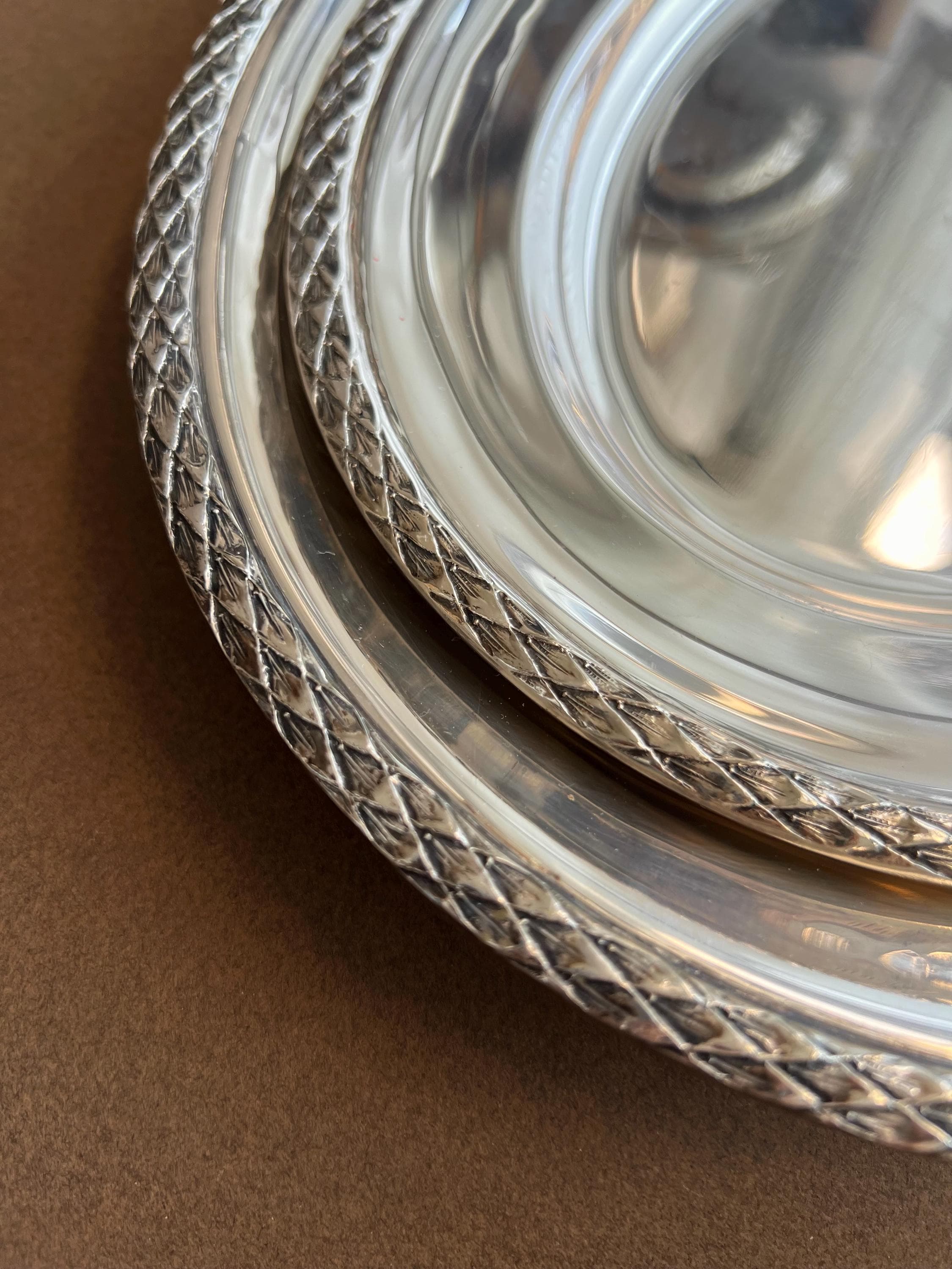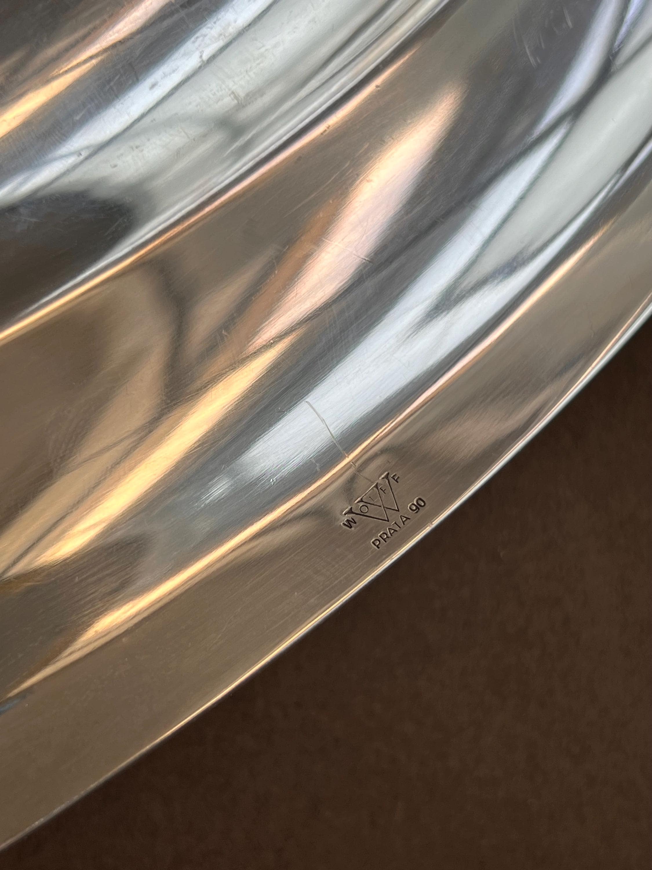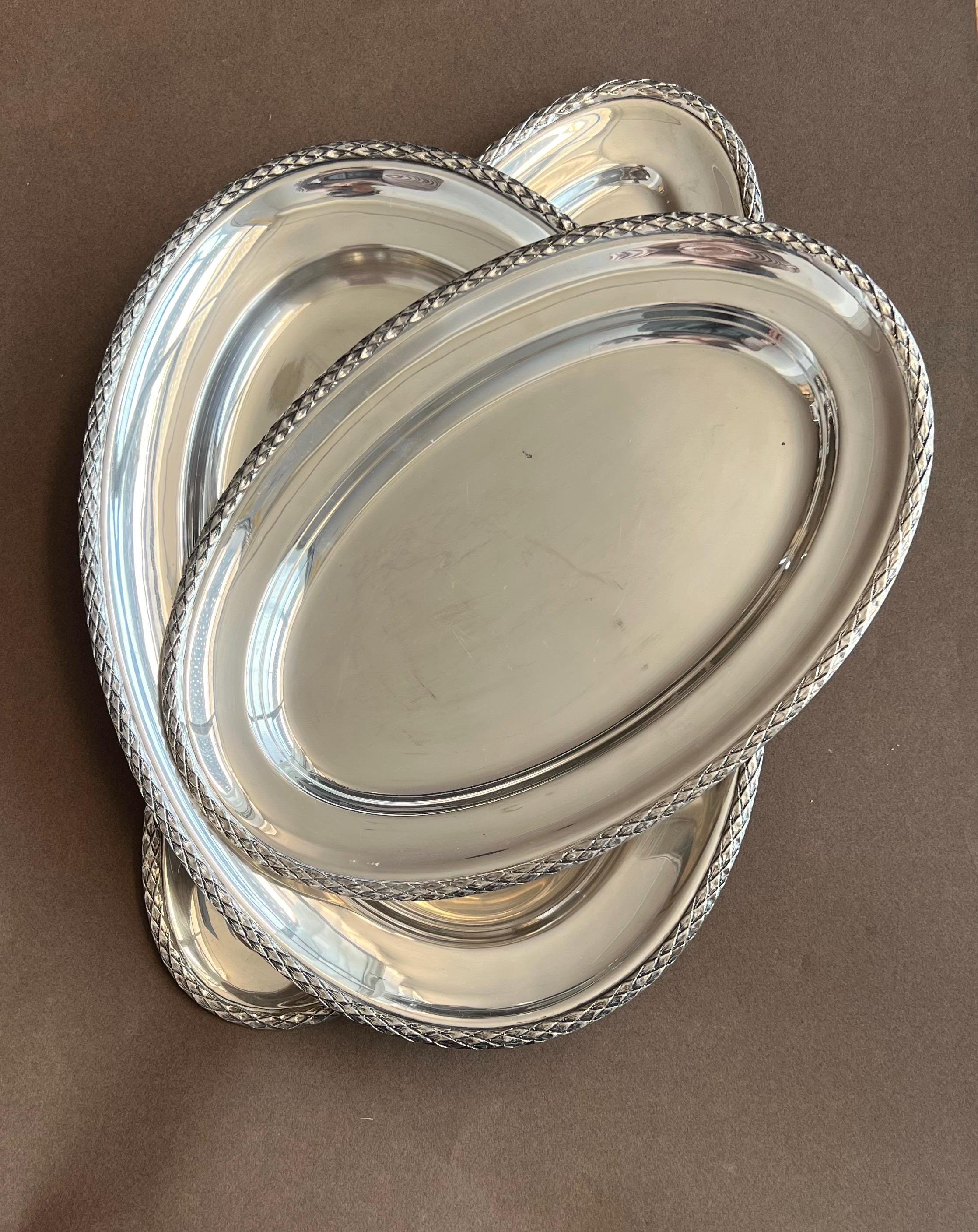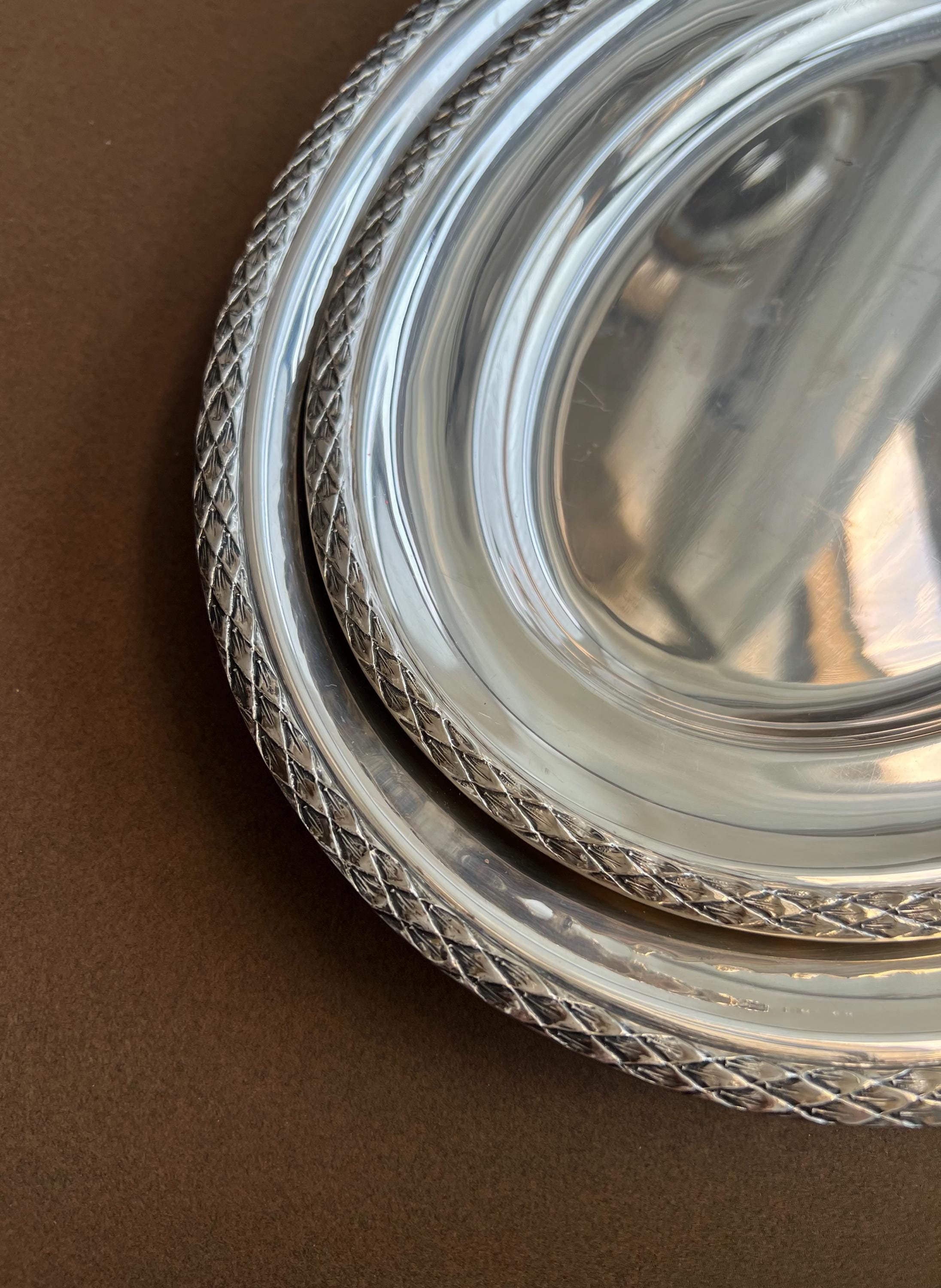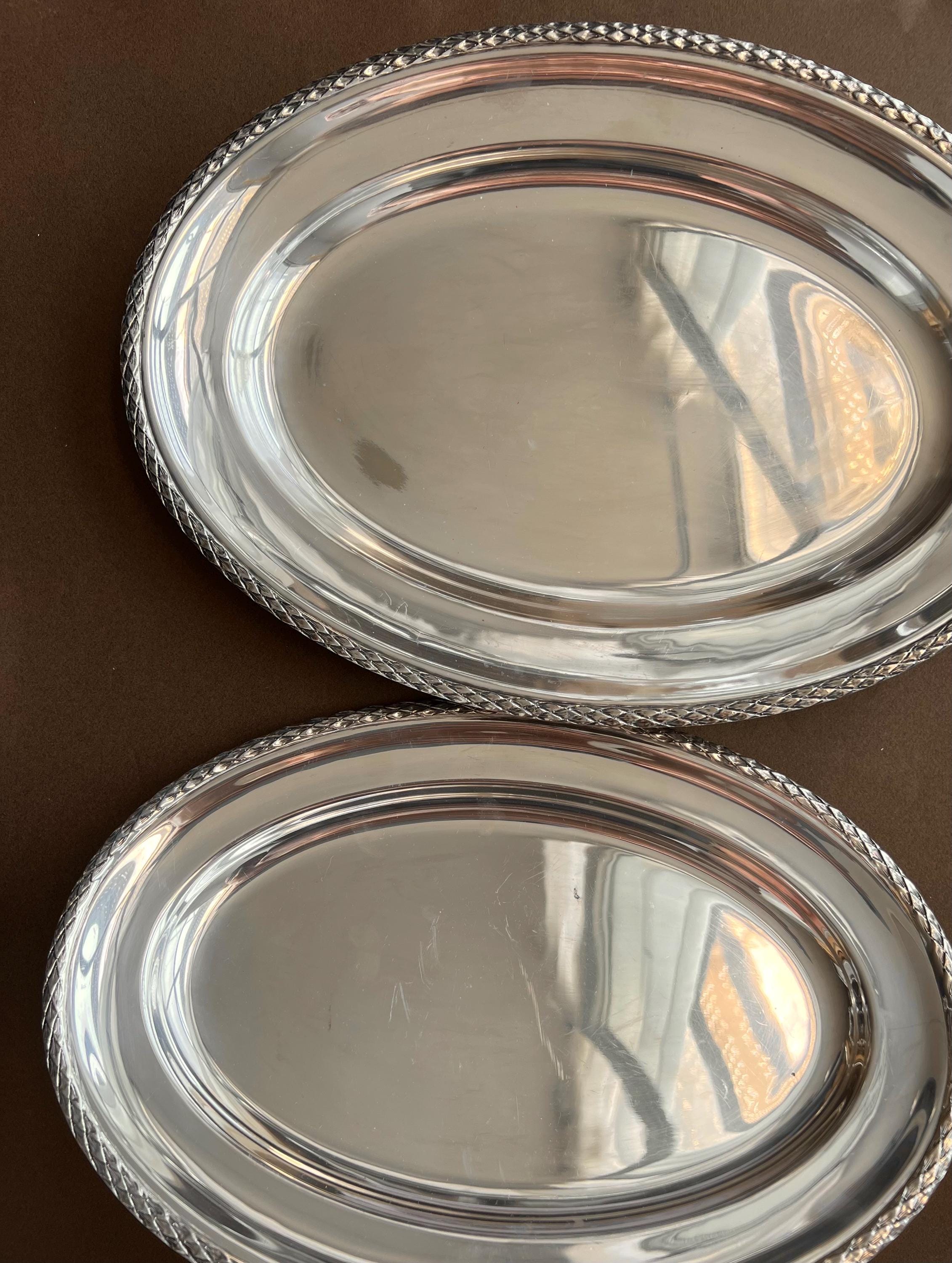 Elegant pair of vintage silver-plated serving trays by Wolff, marked Prata 90, indicating high-quality, heavy silver plating. Produced by Wolff - a respected Brazilian tableware brand founded in 1892 and known for refined, European-influenced designs - these trays combine durability with classic style.