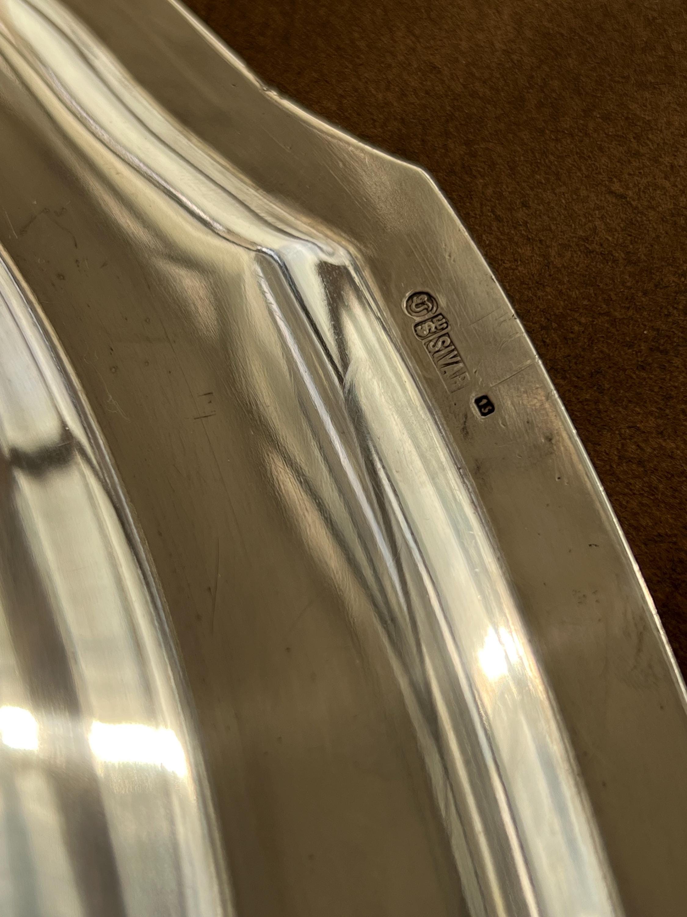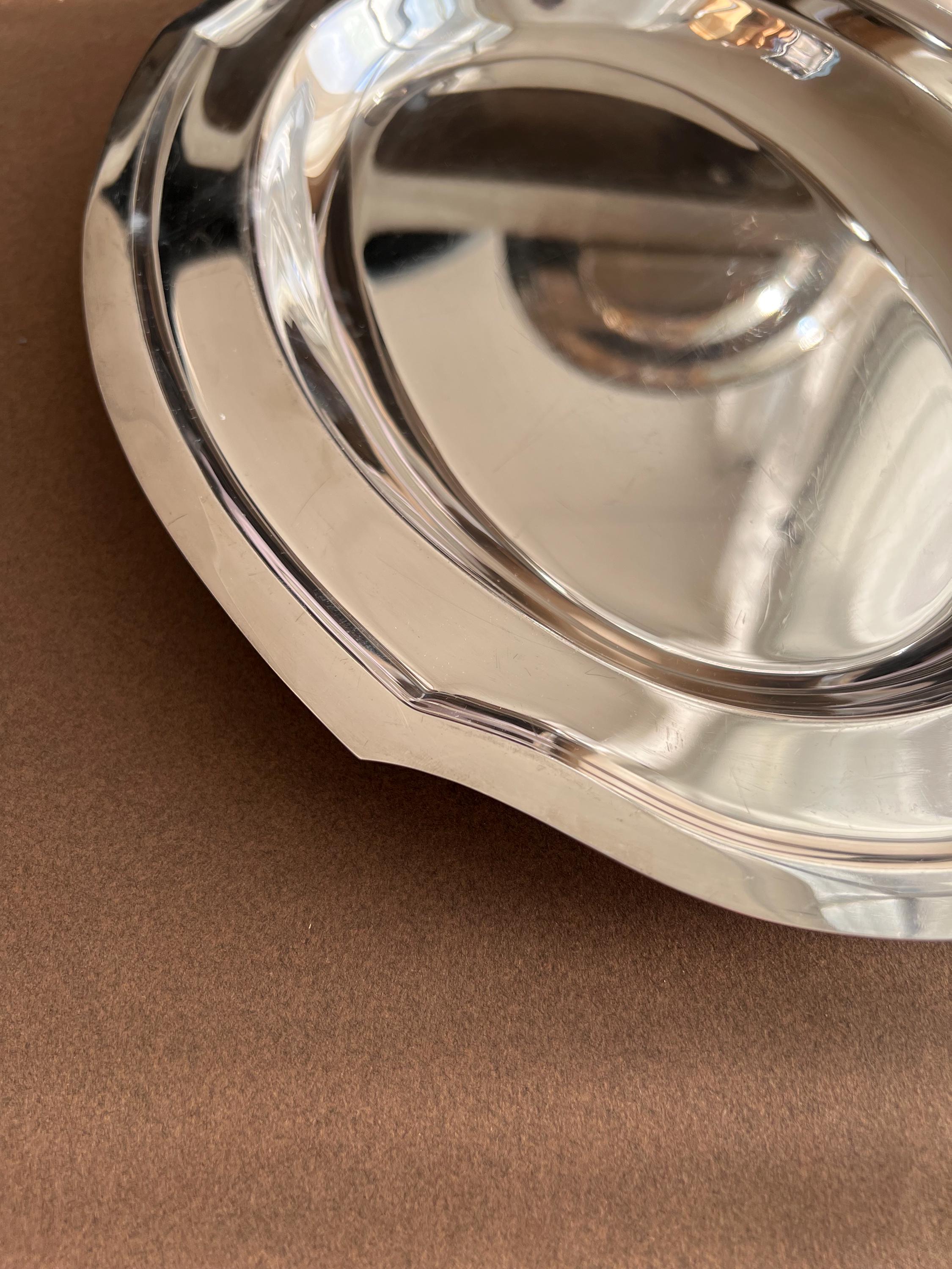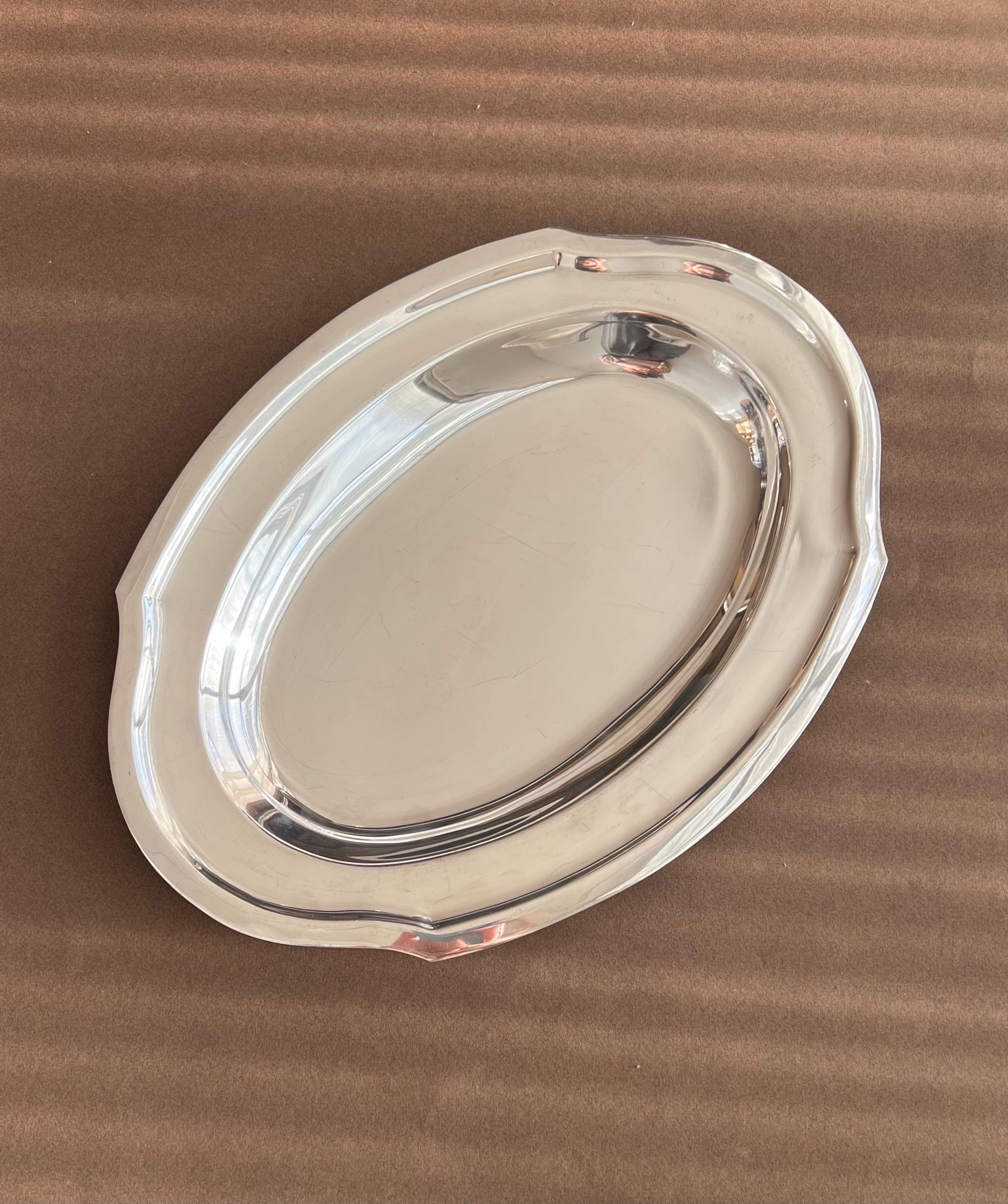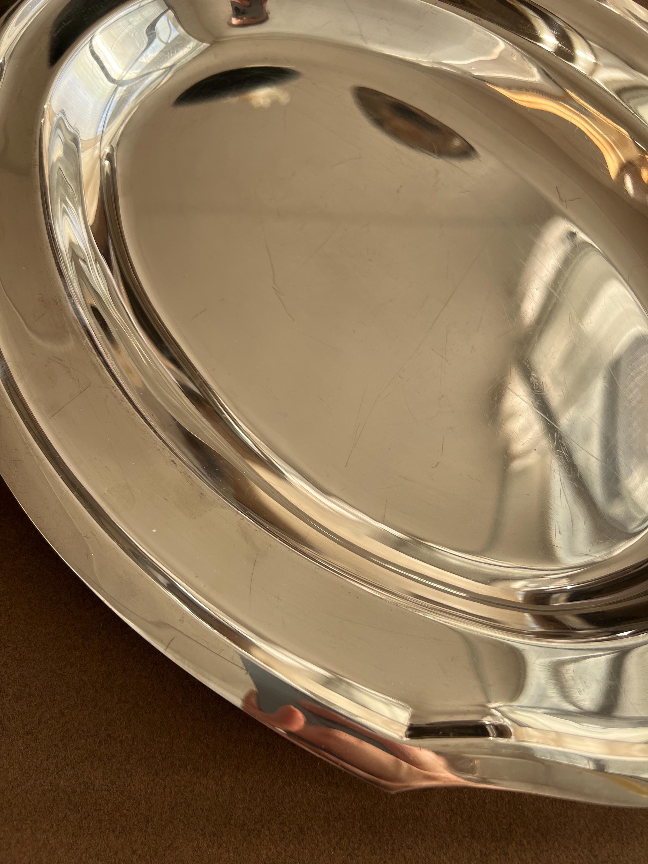 Vintage Spanish Silver Plated Tray by Sivar. Crafted in mid-20th century Spain, this stylish serving tray features classic silverplate finish and timeless design. Ideal for serving hors dโoeuvres, desserts, bread, or as a stylish display piece on a coffee table, bar cart, or buffet.