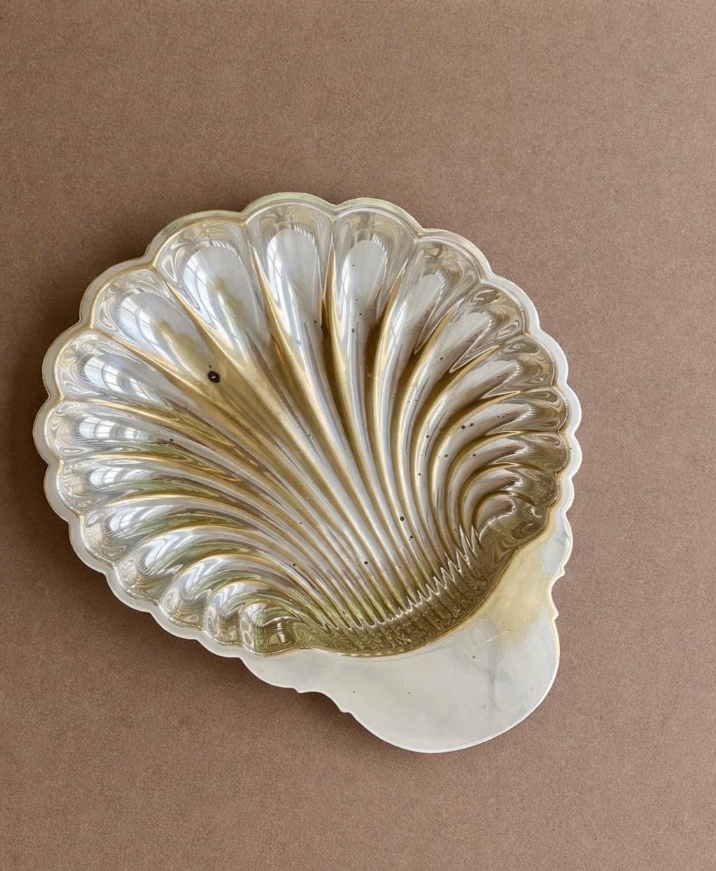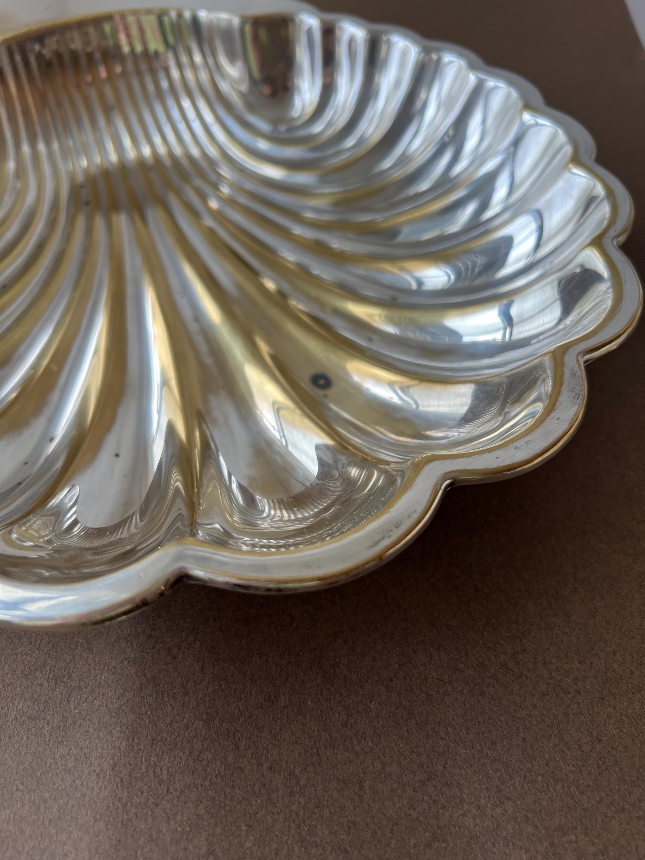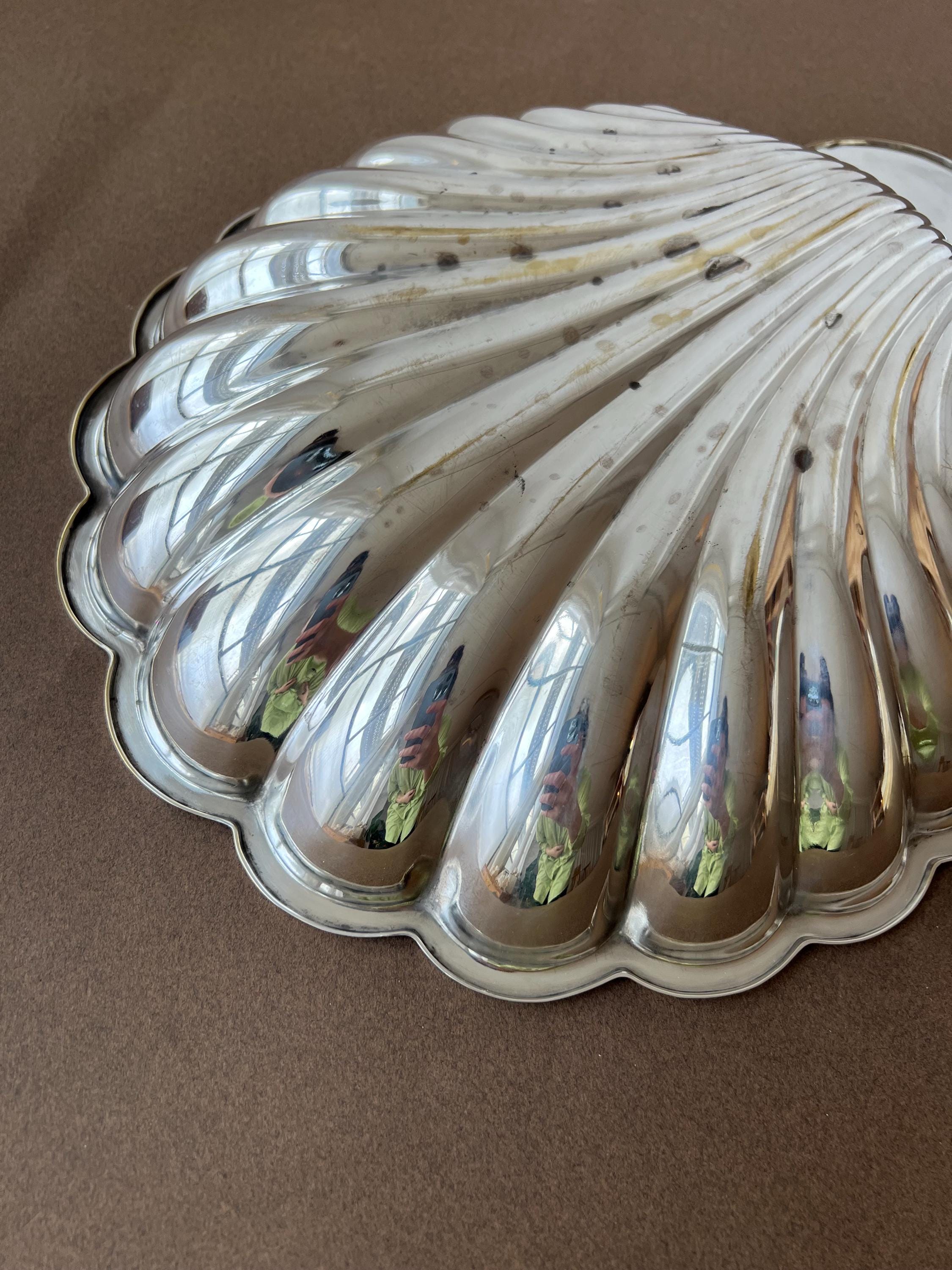 Large vintage alpaca silver shell-shaped tray, perfect for hosting .