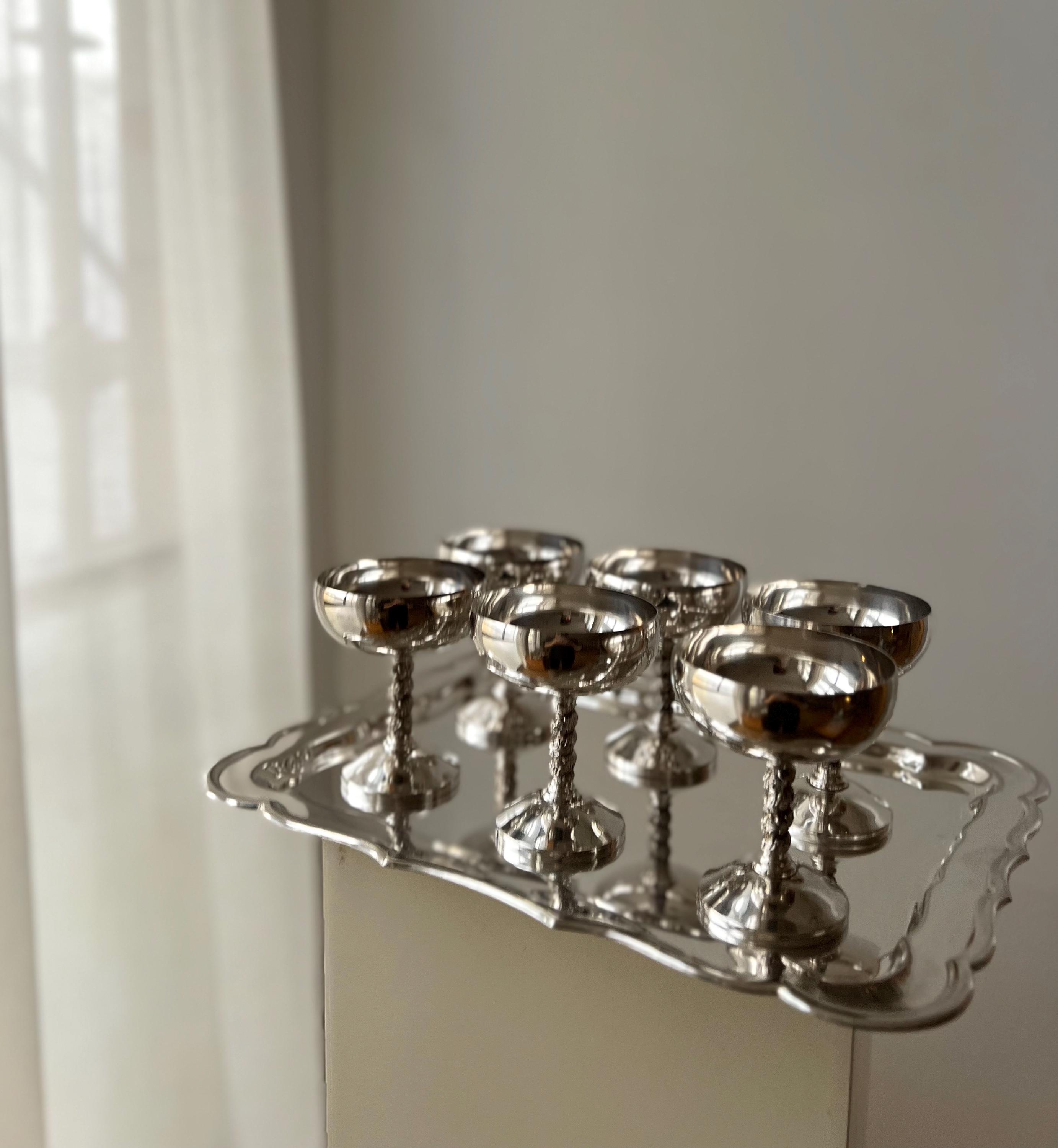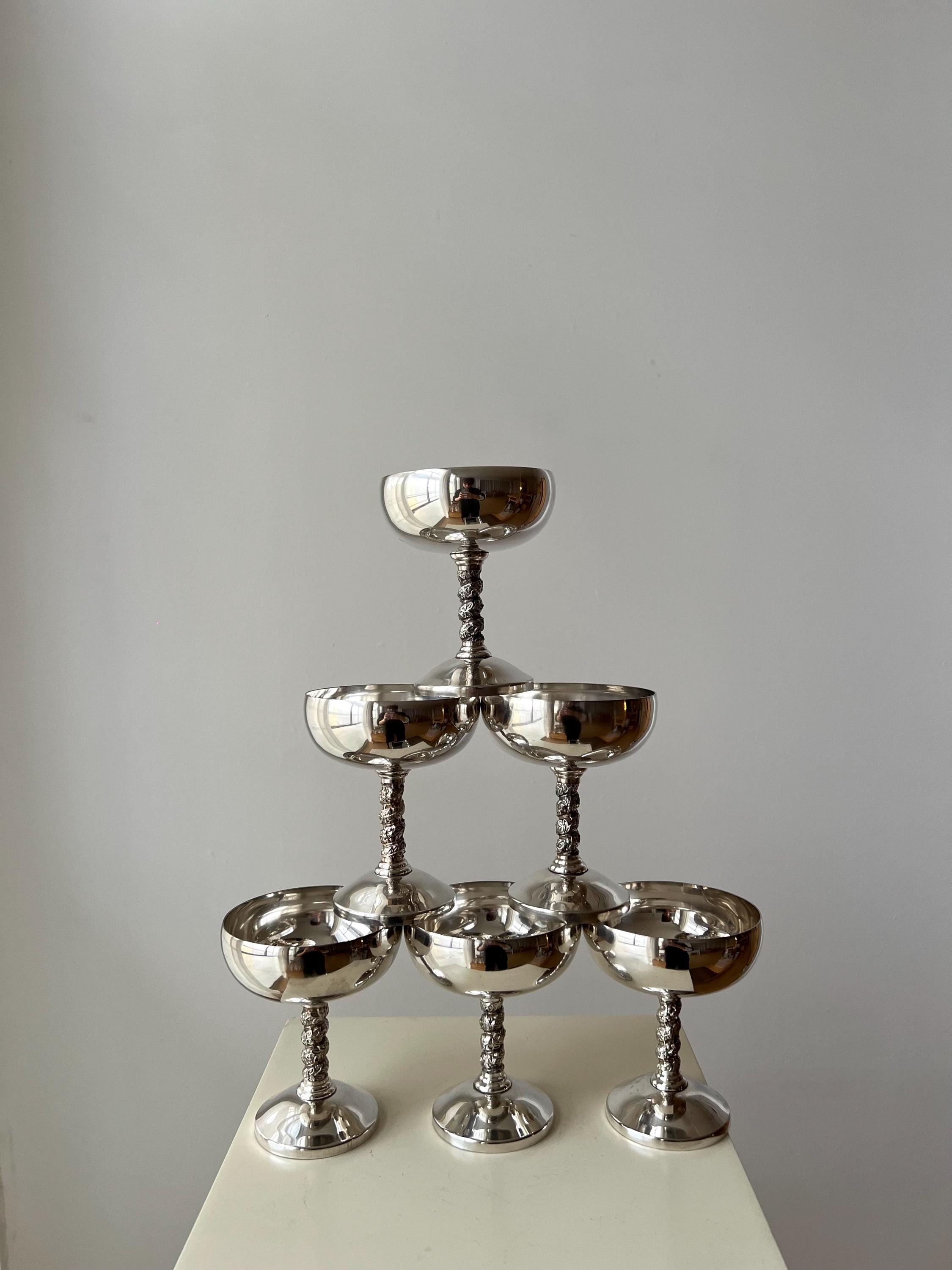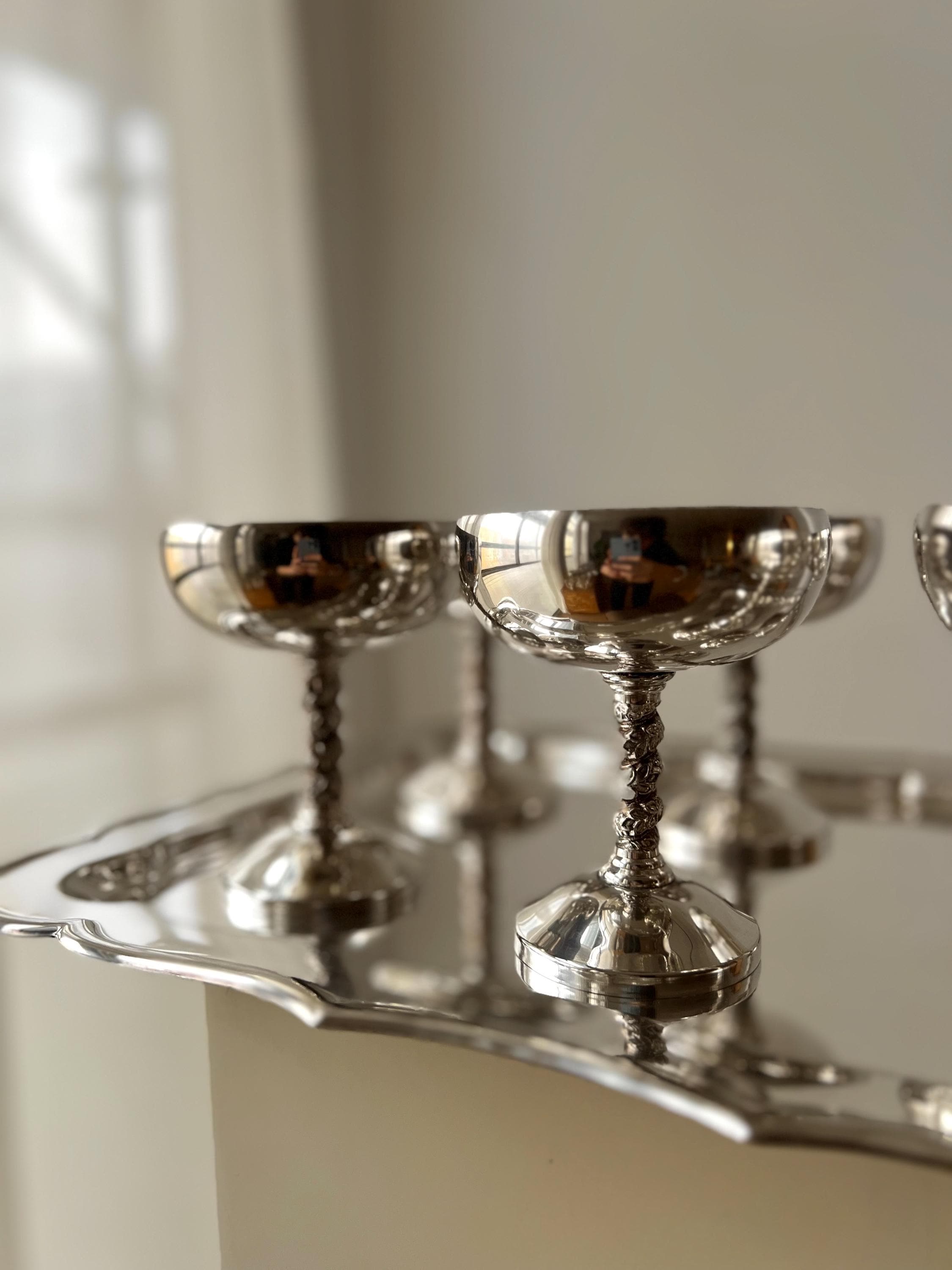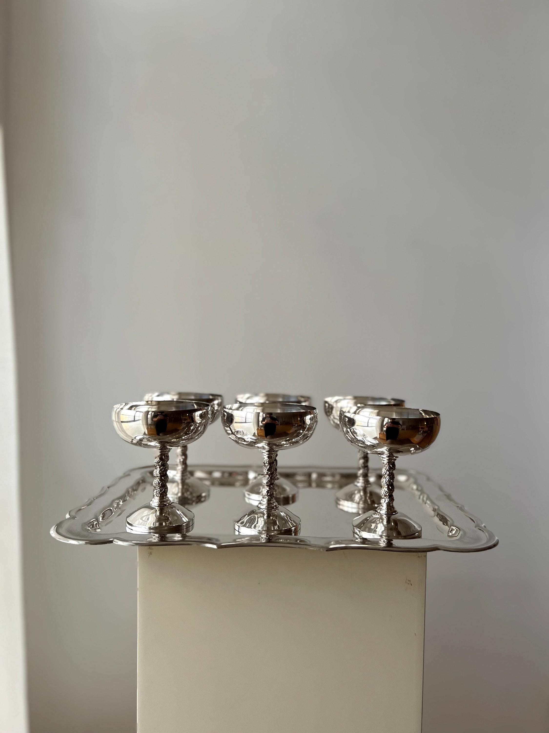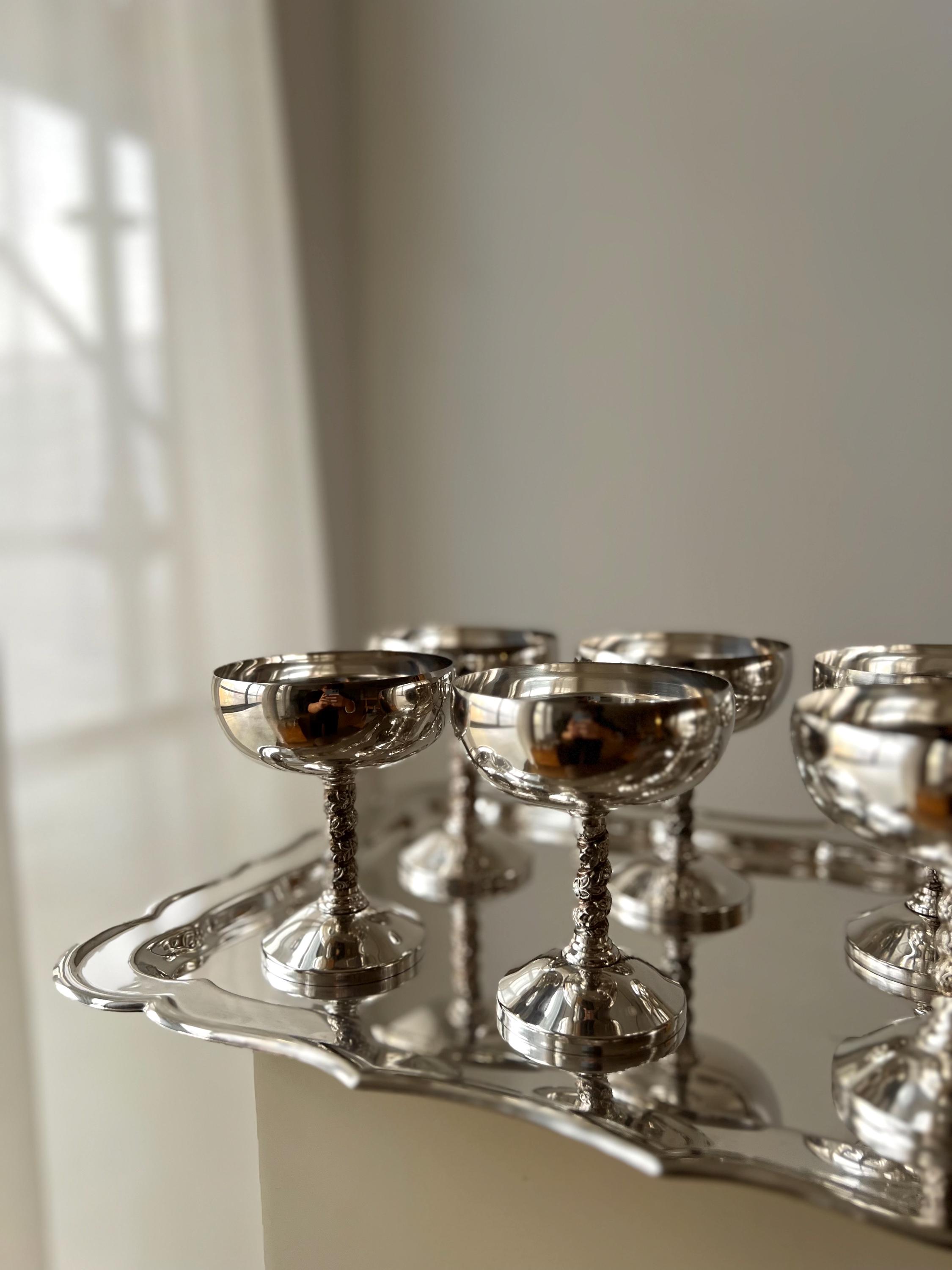 A timeless vintage silver-plated set made in Spain, consisting of six matching goblets.