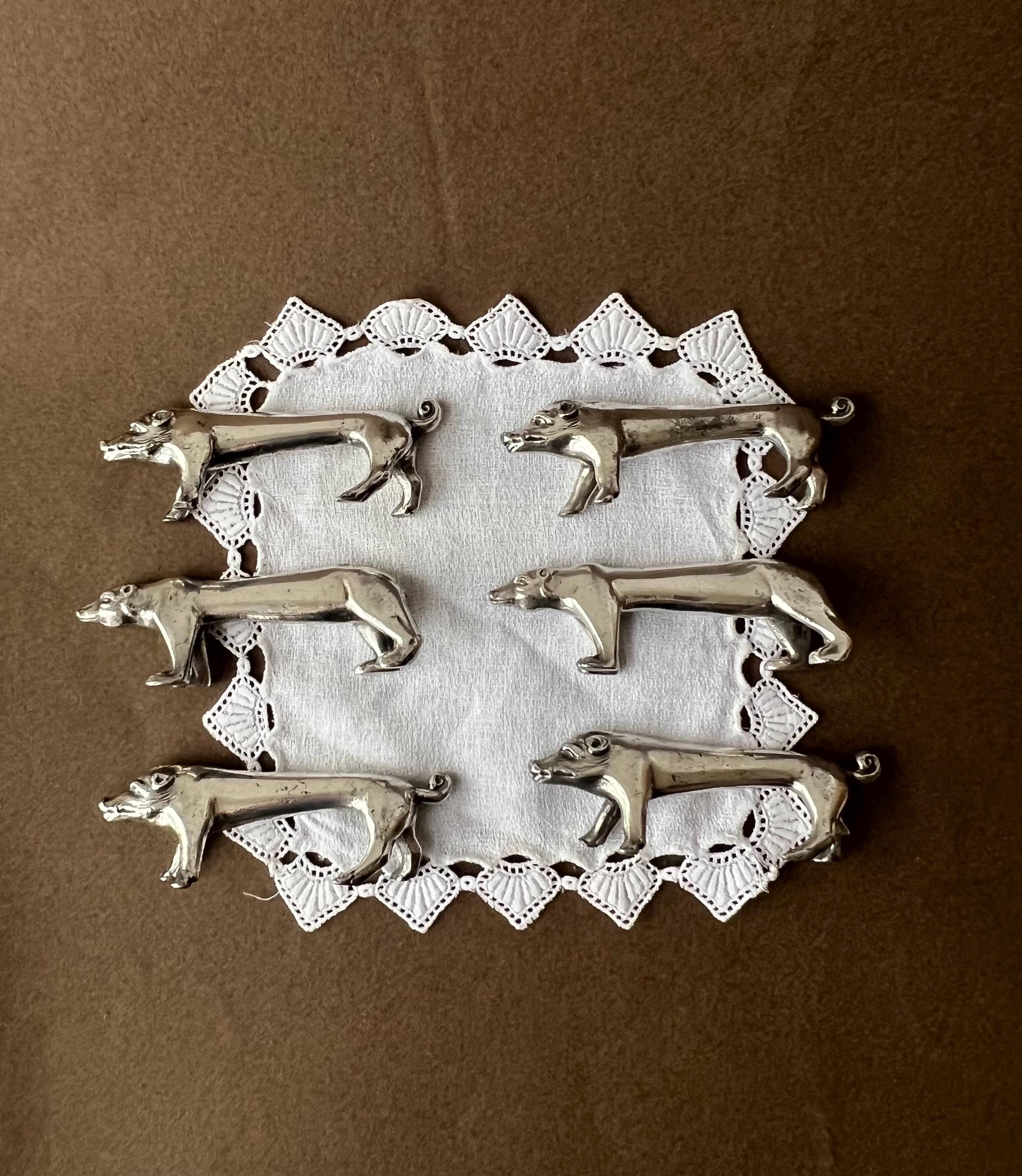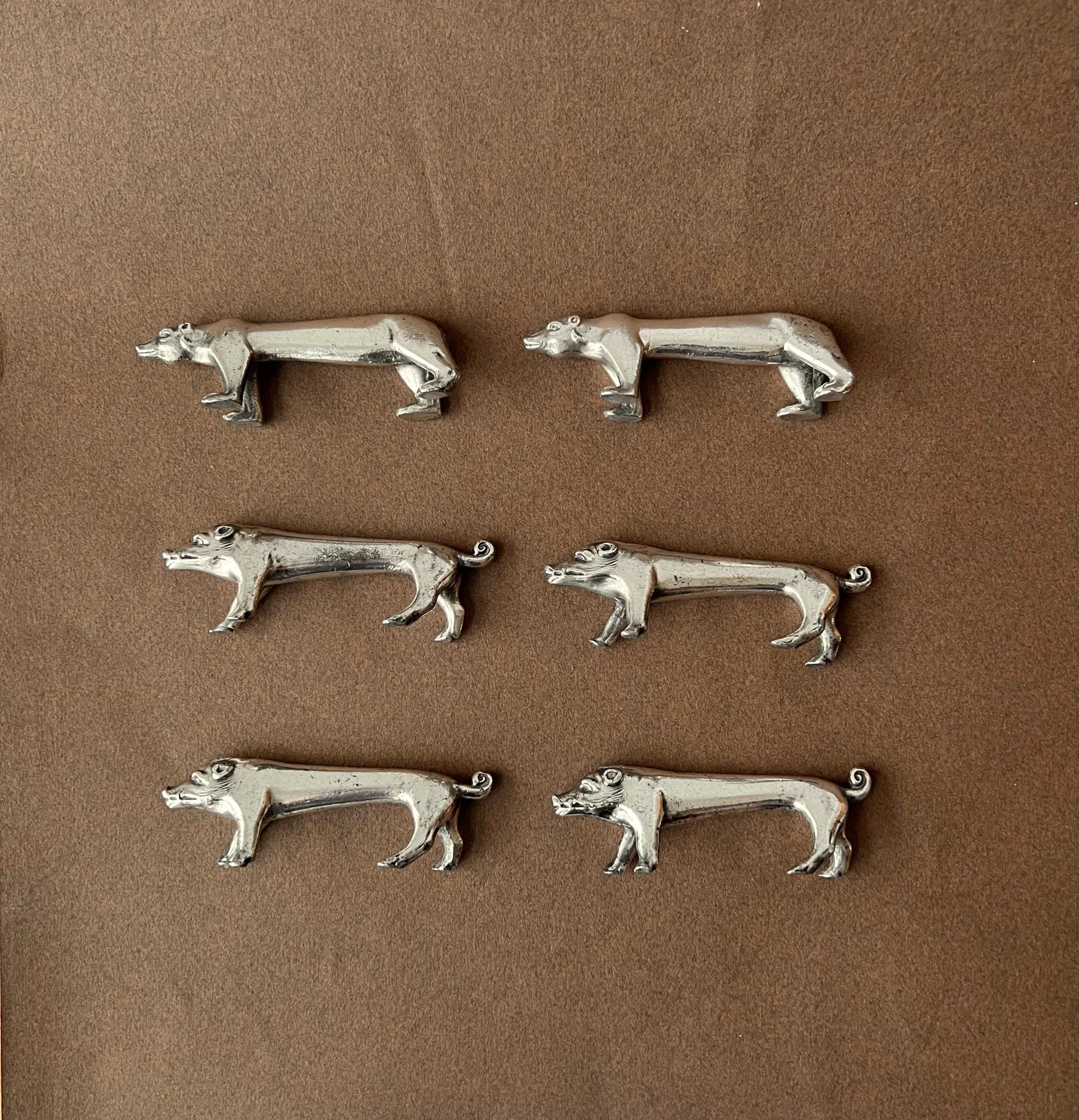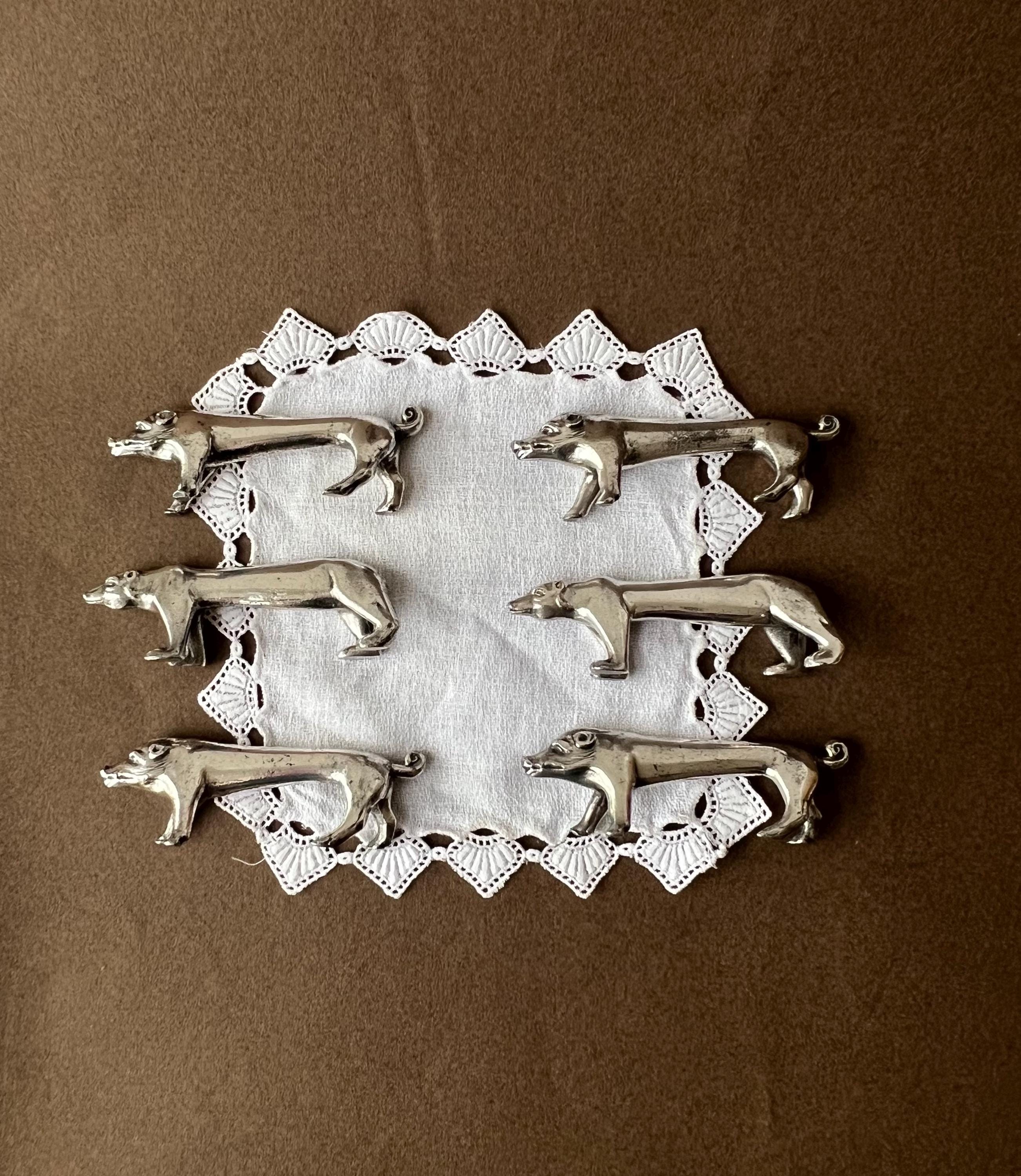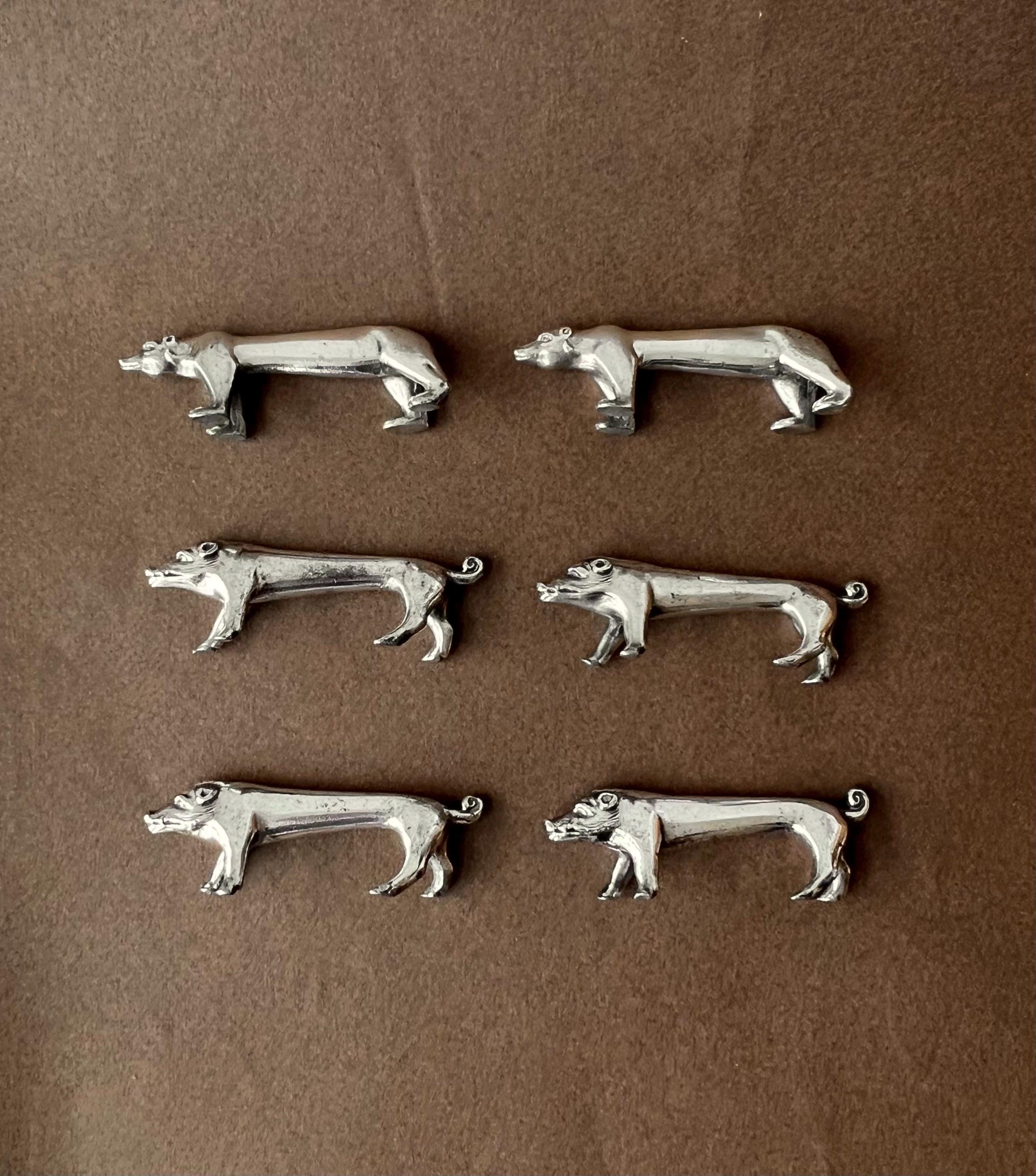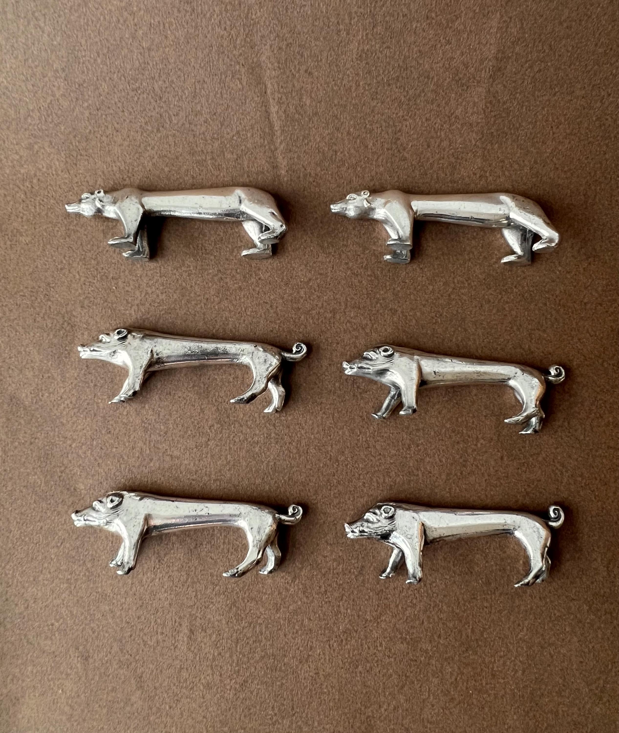 This unique animal-shaped knife rests set brings personality to your table. It contains 2 bear-shaped knife rests and 4 pig-shaped ones. Ideal for hosting dinner parties, weddings, or holiday gatherings, these versatile pieces also make a thoughtful gift for vintage lovers or entertaining enthusiasts. Sourced in Spain.